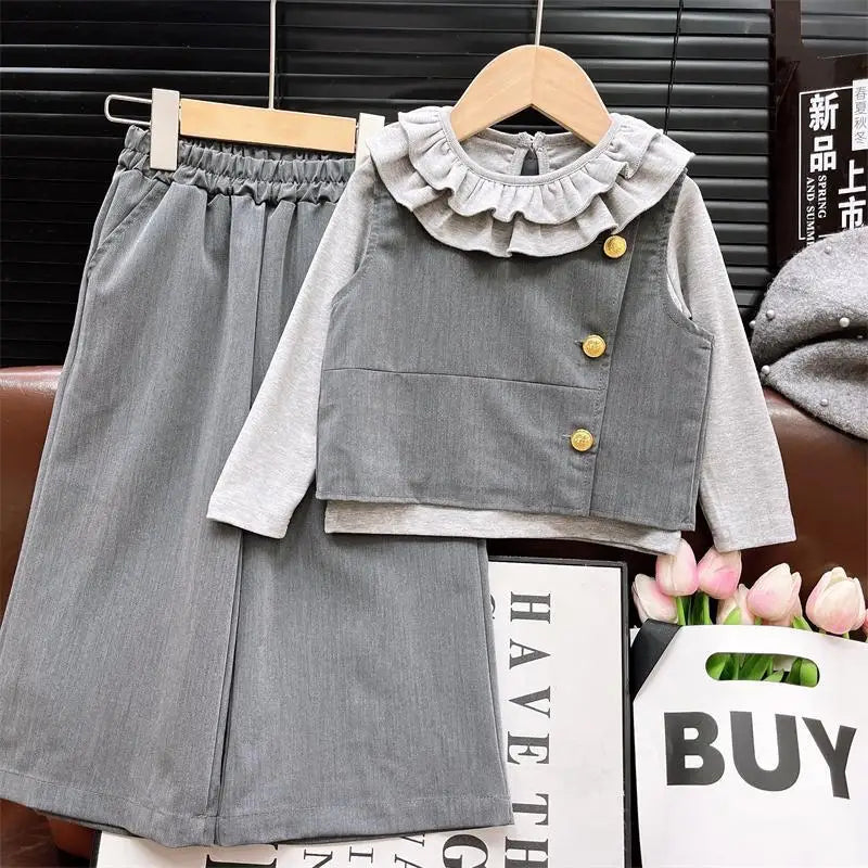 Girls Clothes Sets Spring Autumn 2025 Children Vest Cute T-shirts Pants 3pcs Fashion Suit For Baby School Outfits Kids Tracksuit