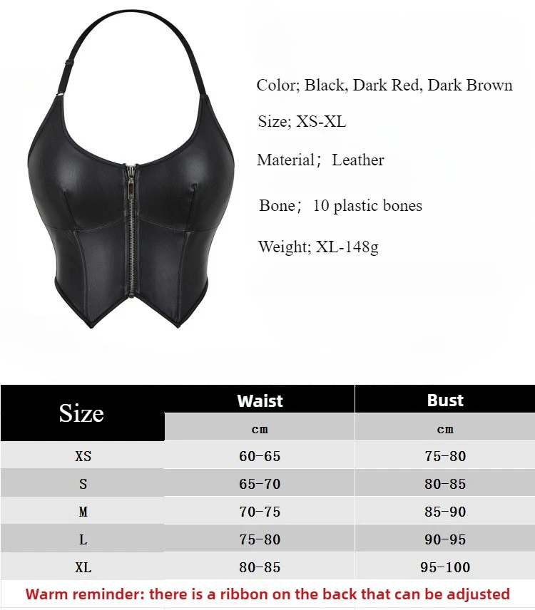 Gothic Leather Halter Sexy Women Corset Retro Overbust Lace Up Zipper Waist Trainer Bustier Lingerie Slimming Body Shaper Bodice