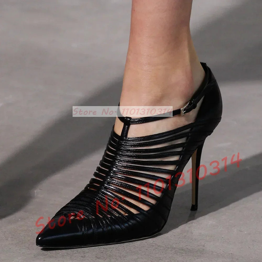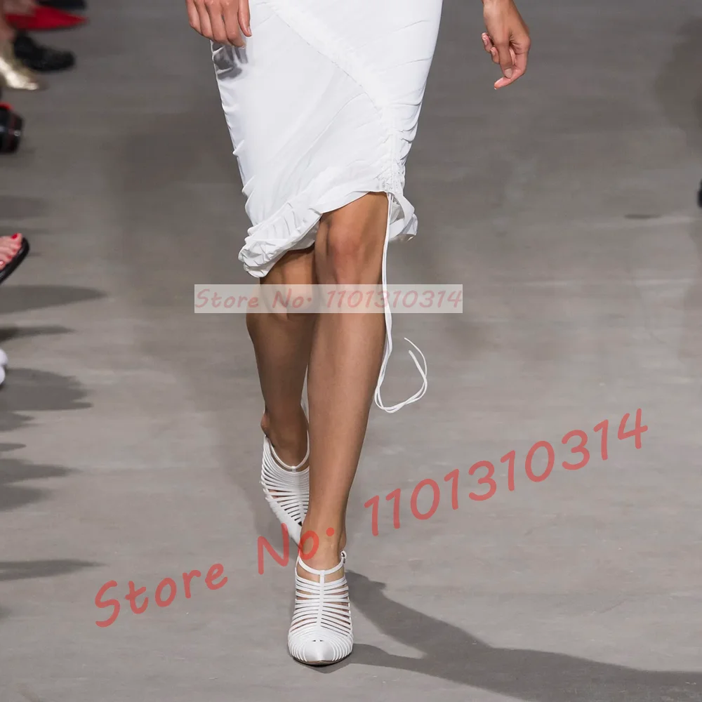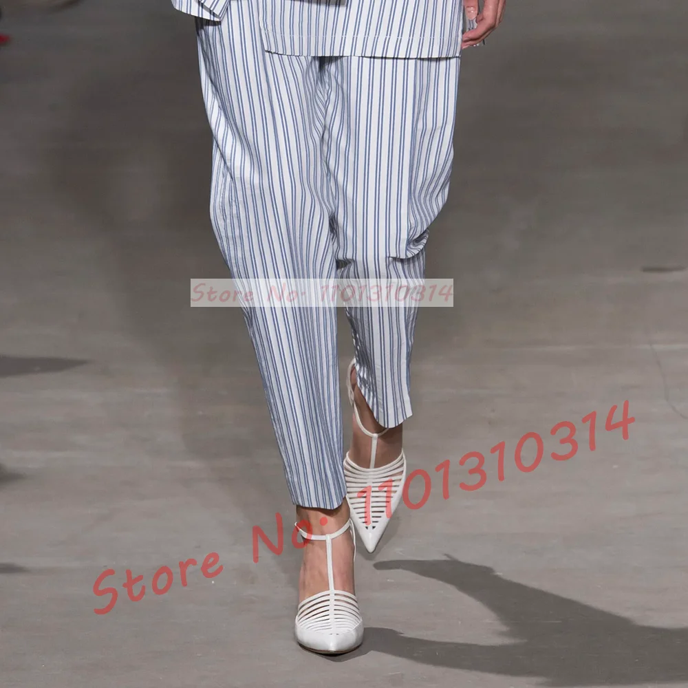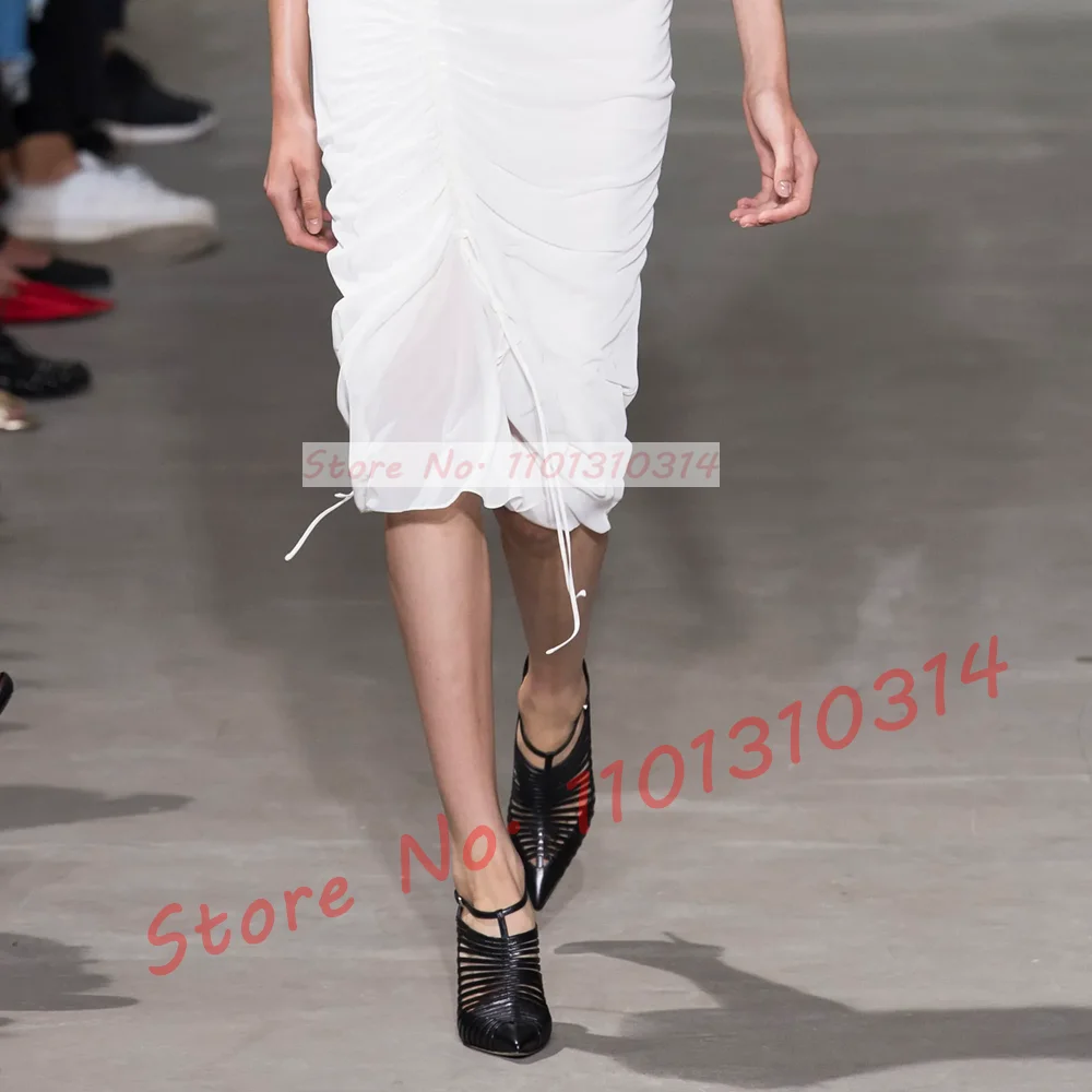Green Vegan Suede Strappy Sandals Ladies Hollow Out Pointed Toe Mixed Color High Heels Shoes Women Party Trendy Chic Sandals