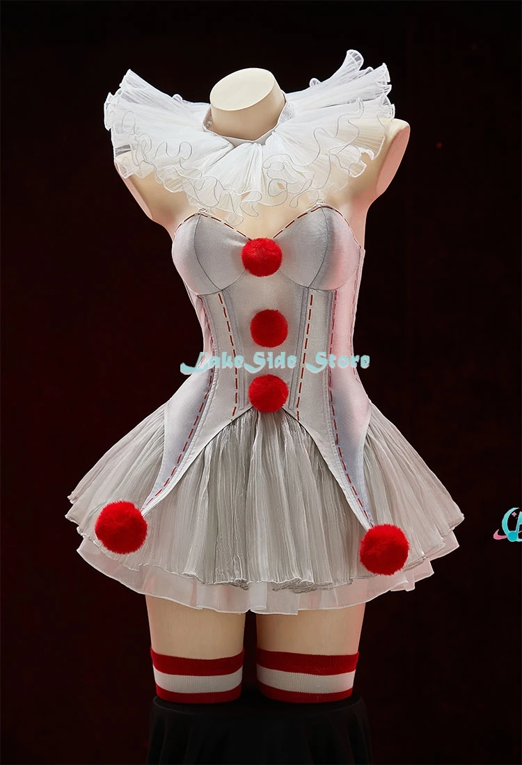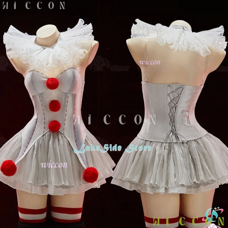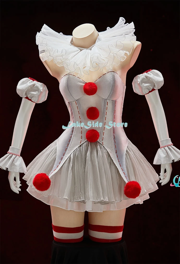 Halloween Movie Clown Pennywise Dress Cosplay Costume Wig Genderswap Horror Scary Sexy Dress Up Women Carnival Party Outfit