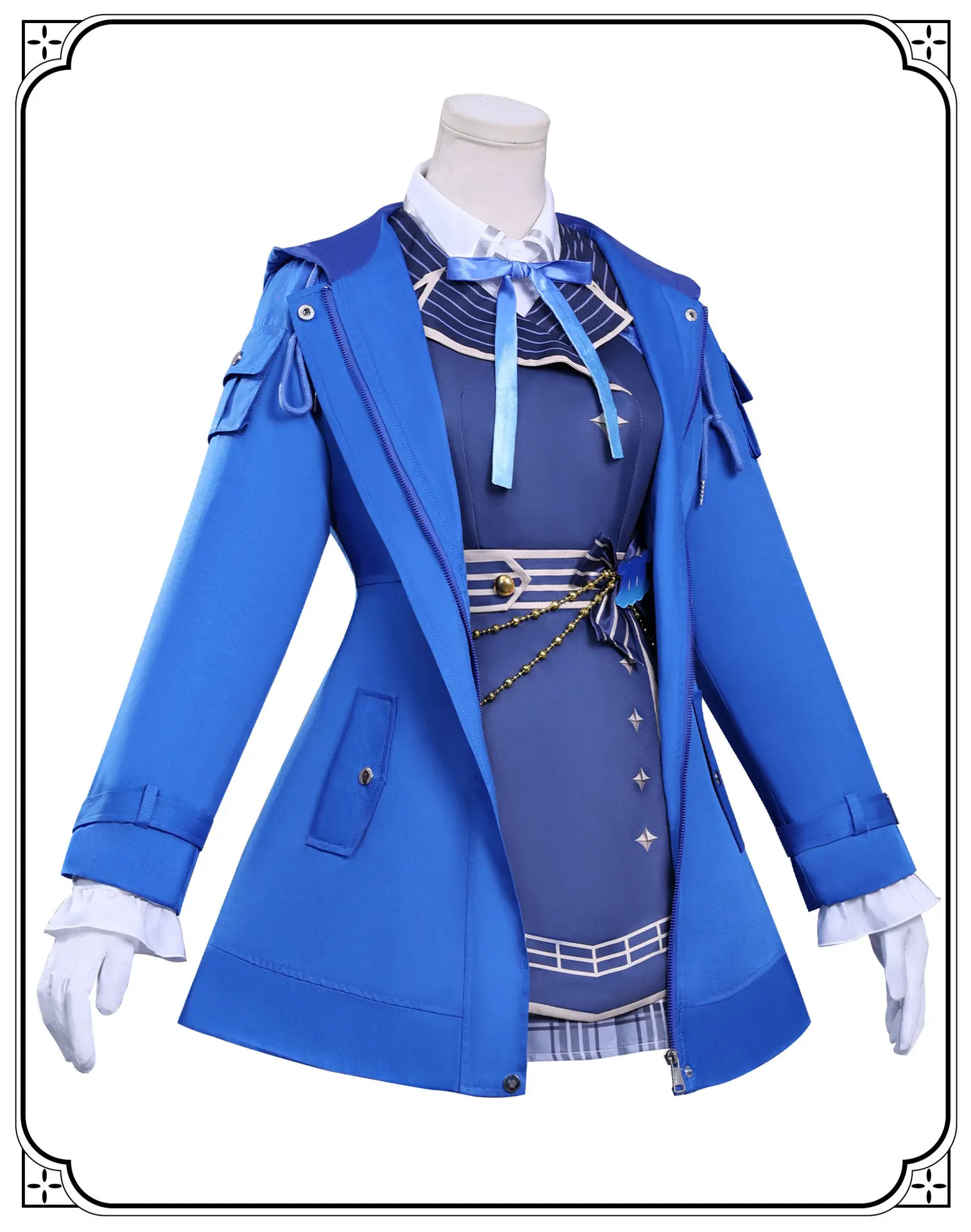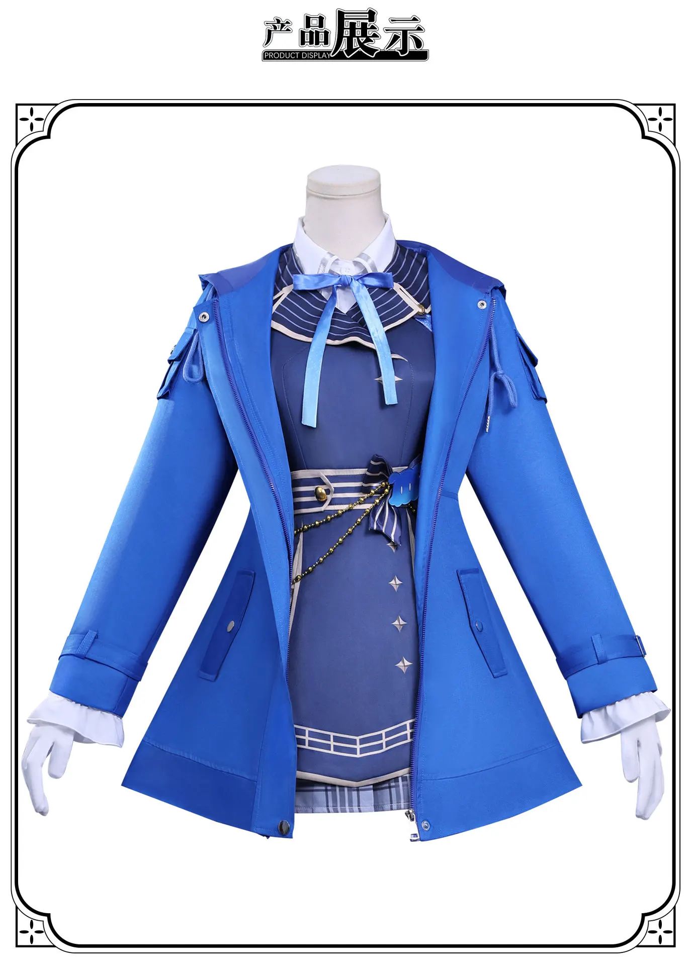 Henshin Sakamata Cosplay Costume Anime Vtuber Sakamata Blue Coat Dress Hololive JP Holo Vtuber HoloX Outfit Wig for Woman Girl