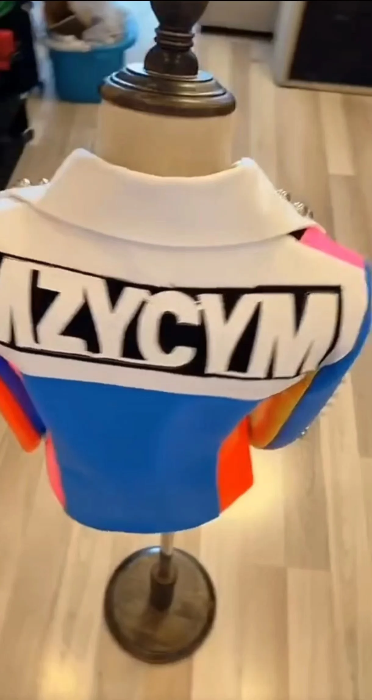 Hiphop Jazz Rivets Leather Jacket Colorful Patchwork Performance Coat Bar Club Party DJ Show DanceWear