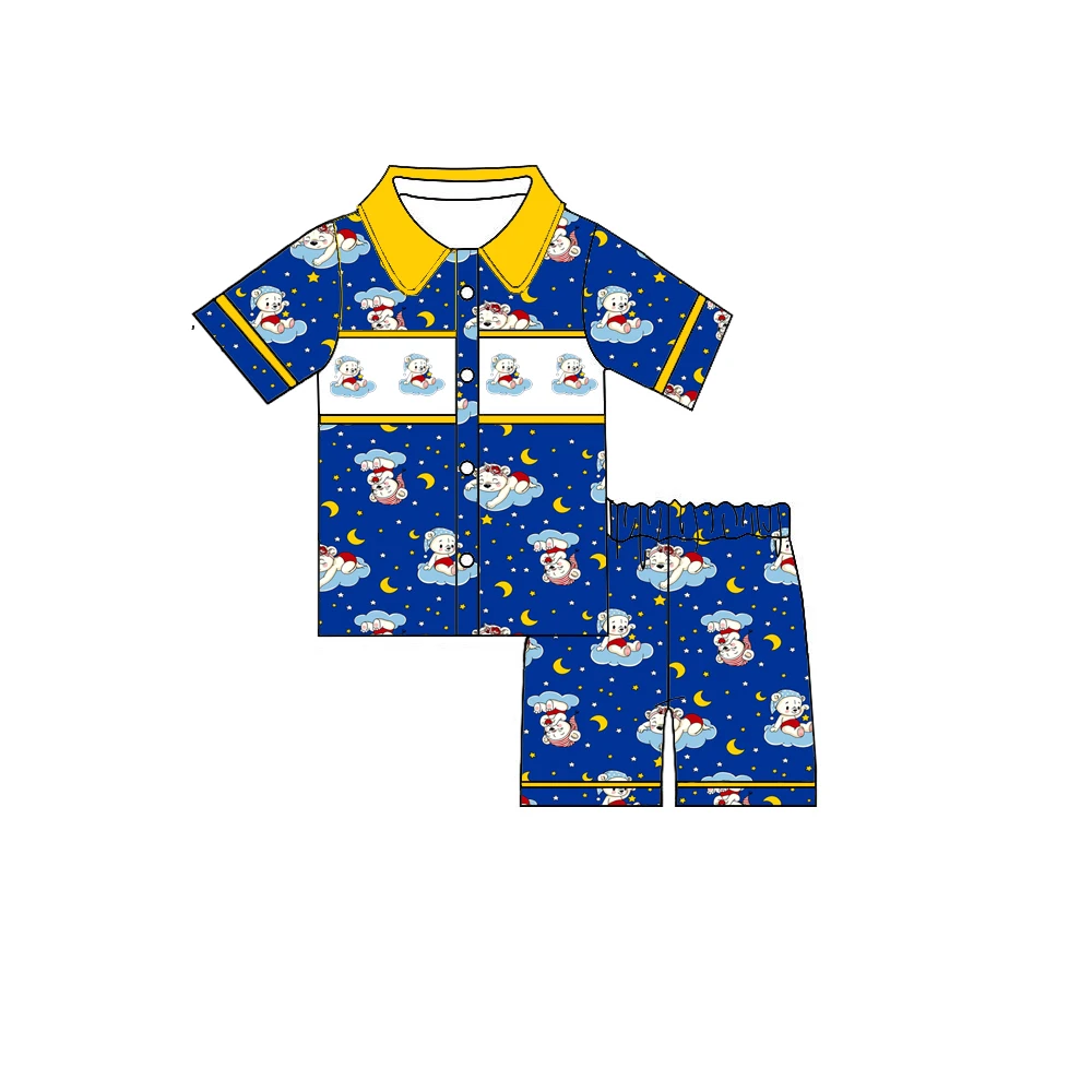 Hot selling boutique baby girl boy clothes blue short sleeve cute bear print shorts pajamas set two piece set