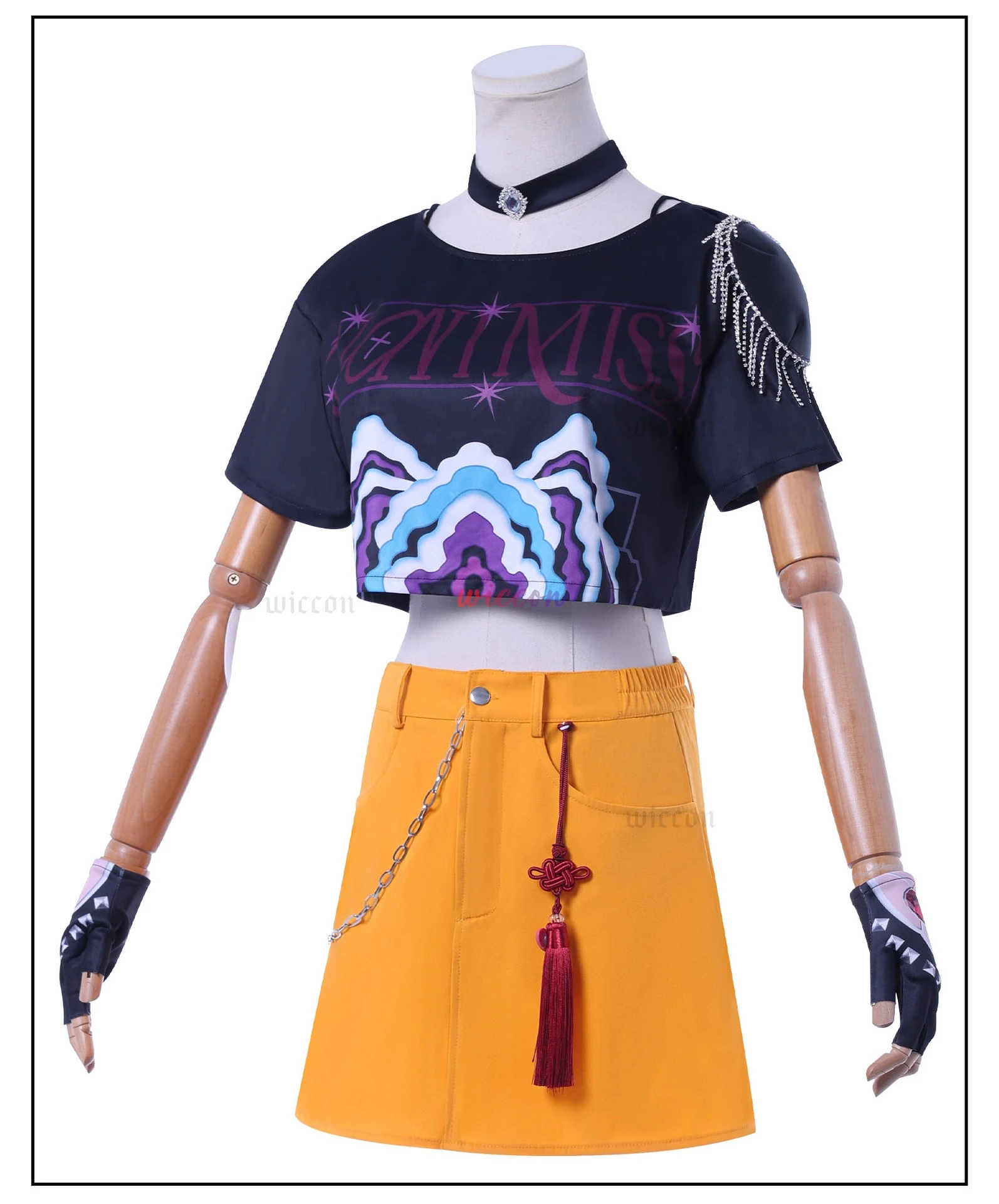 Huntrix Group Rumi Zoey Cosplay Anime Devil Hunters Mira Costume Coat Earrings Accessories Set Halloween Party Outfit for Woman