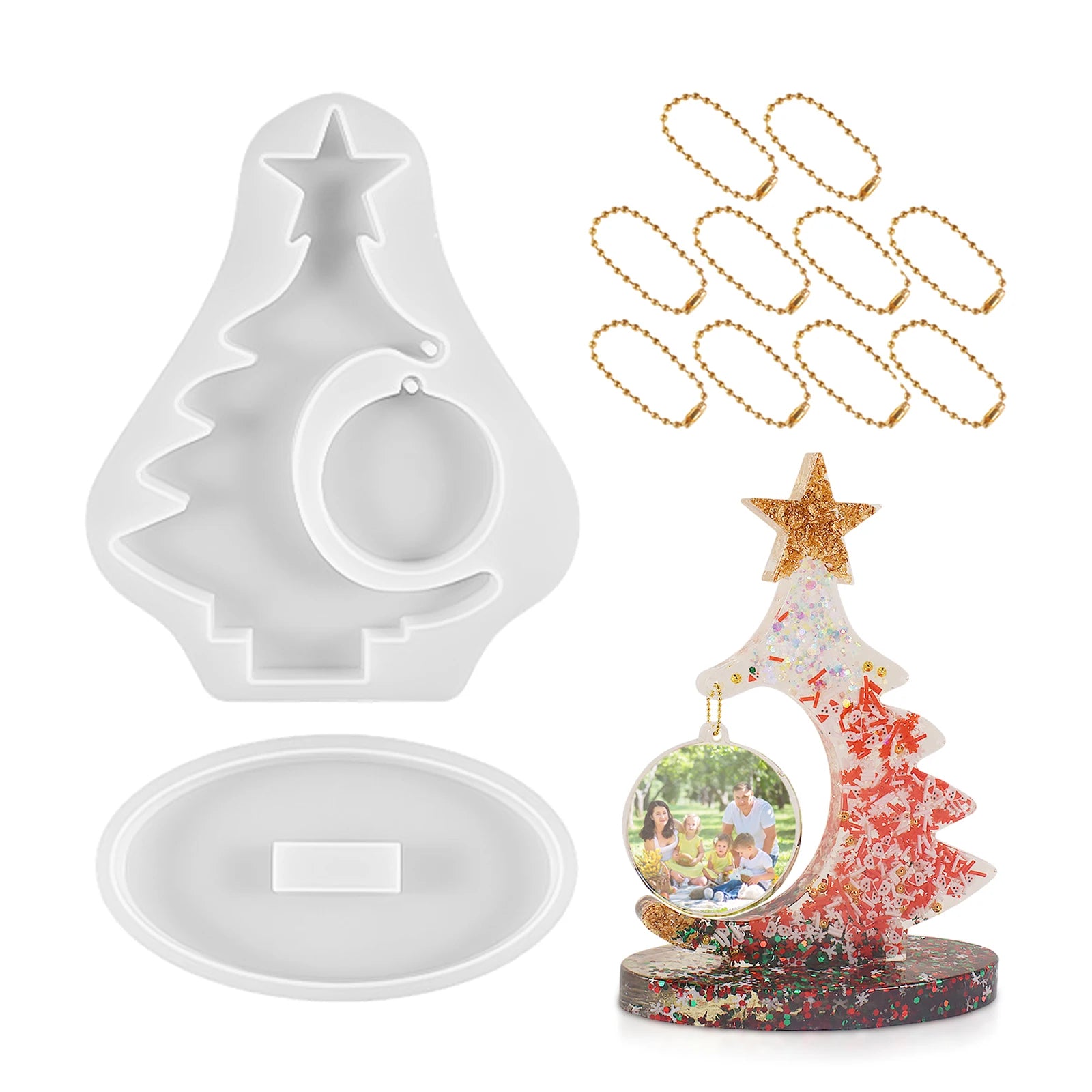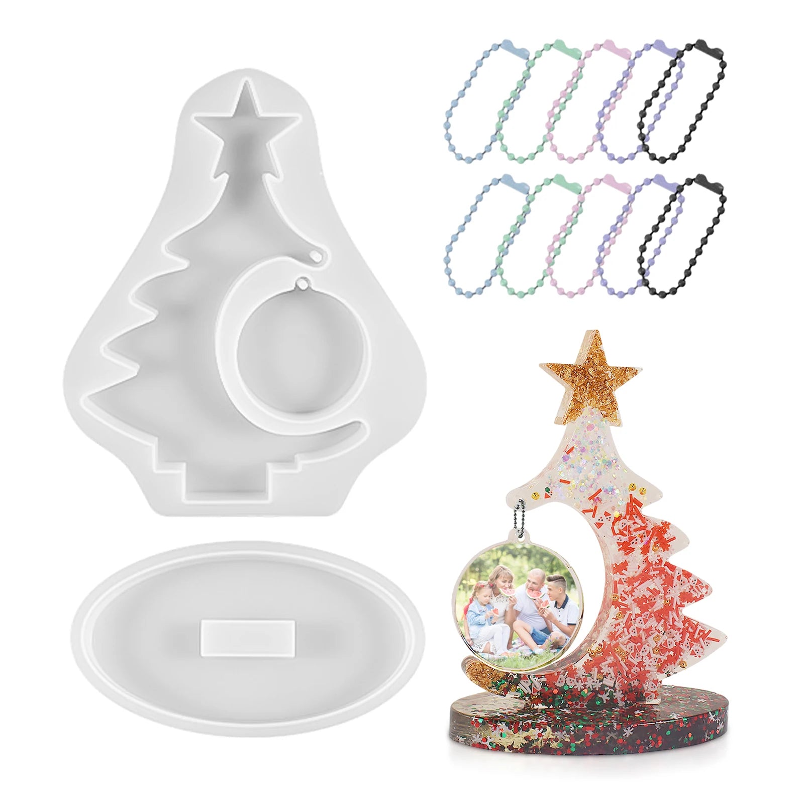 ilicone Mold For Christmas Tree Ornaments Easy To Demould Clear Casting Resin High Detail Durable White Colorful bead chain