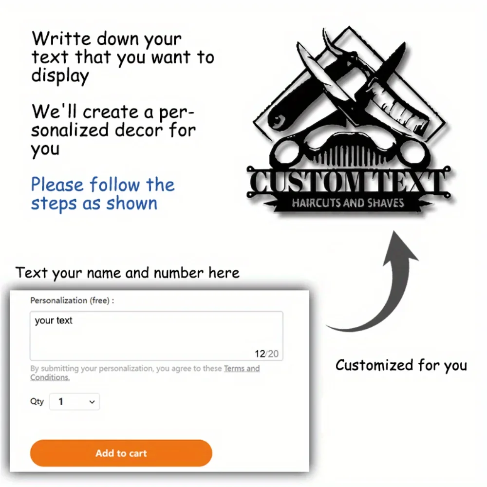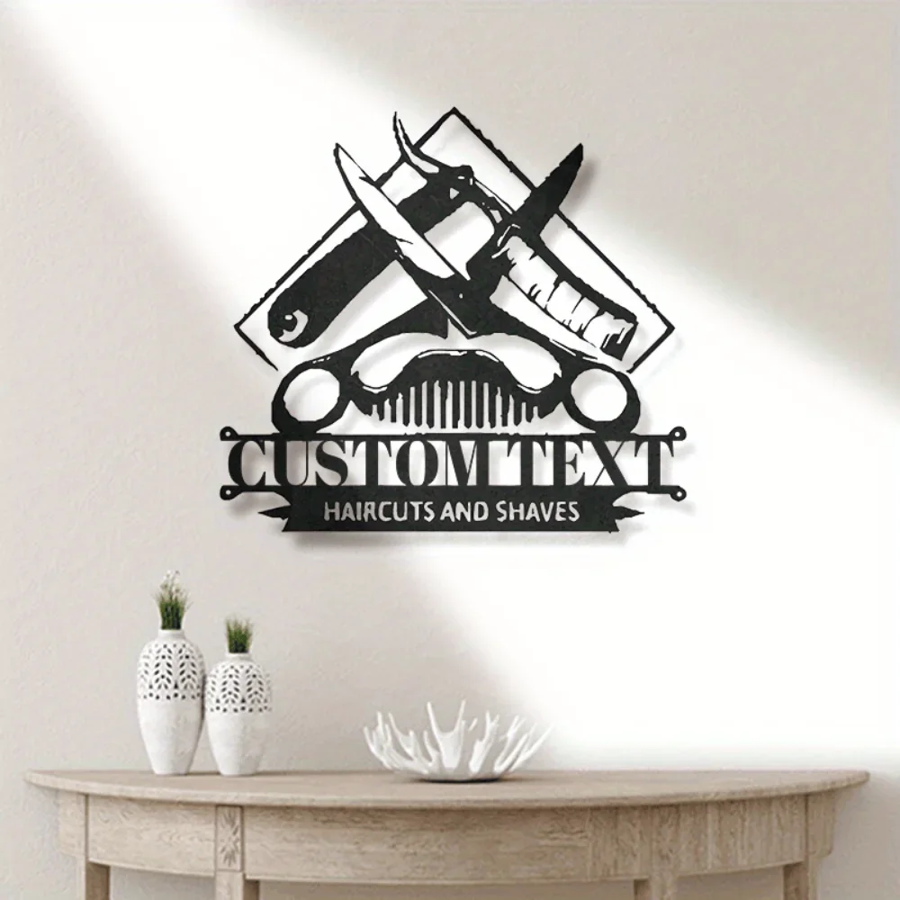 Iron Wall Hanging,Durable Power - Free Metal Custom Sign with Personalized Design for Barber Shops Modern Hanging Decor for Hair