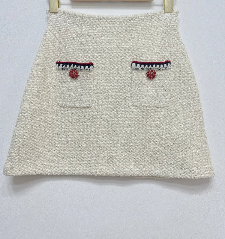 JAMERARY Tweed Two Piece Sets For Women Autumn Winter Woolen Outerwears Crystal Diamonds Jackets Coats + Short Skirts Suits
