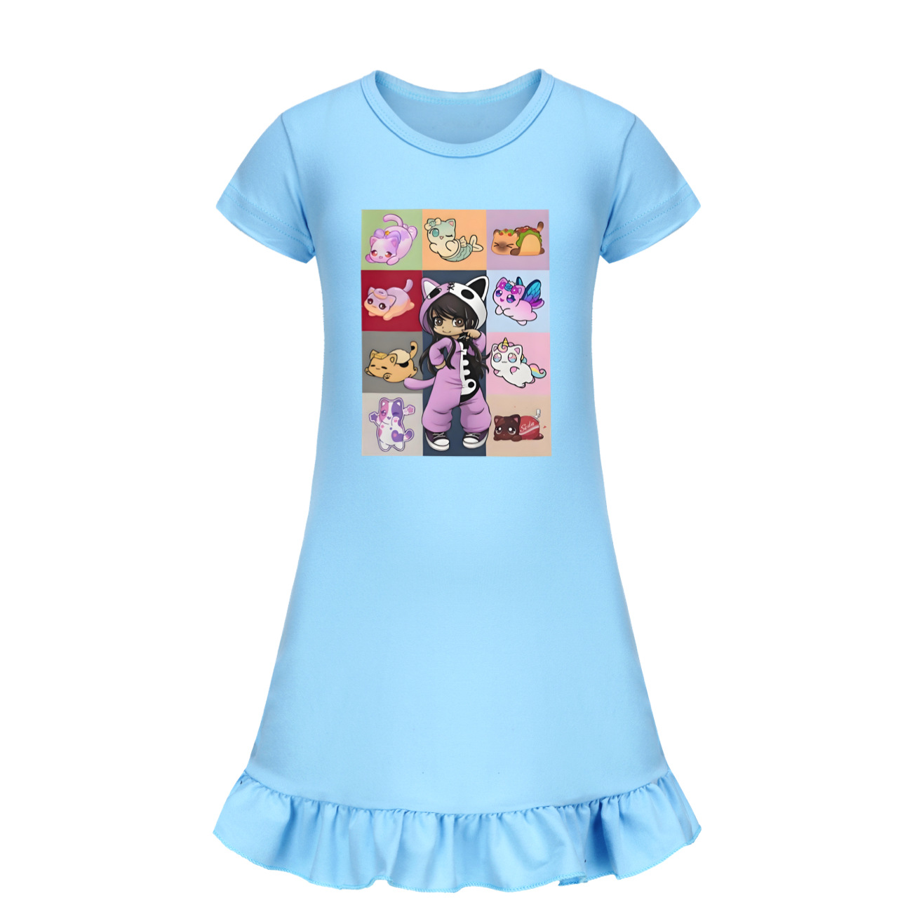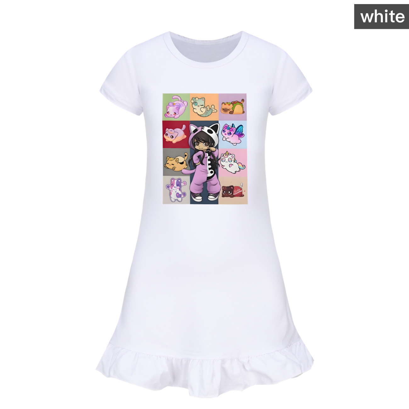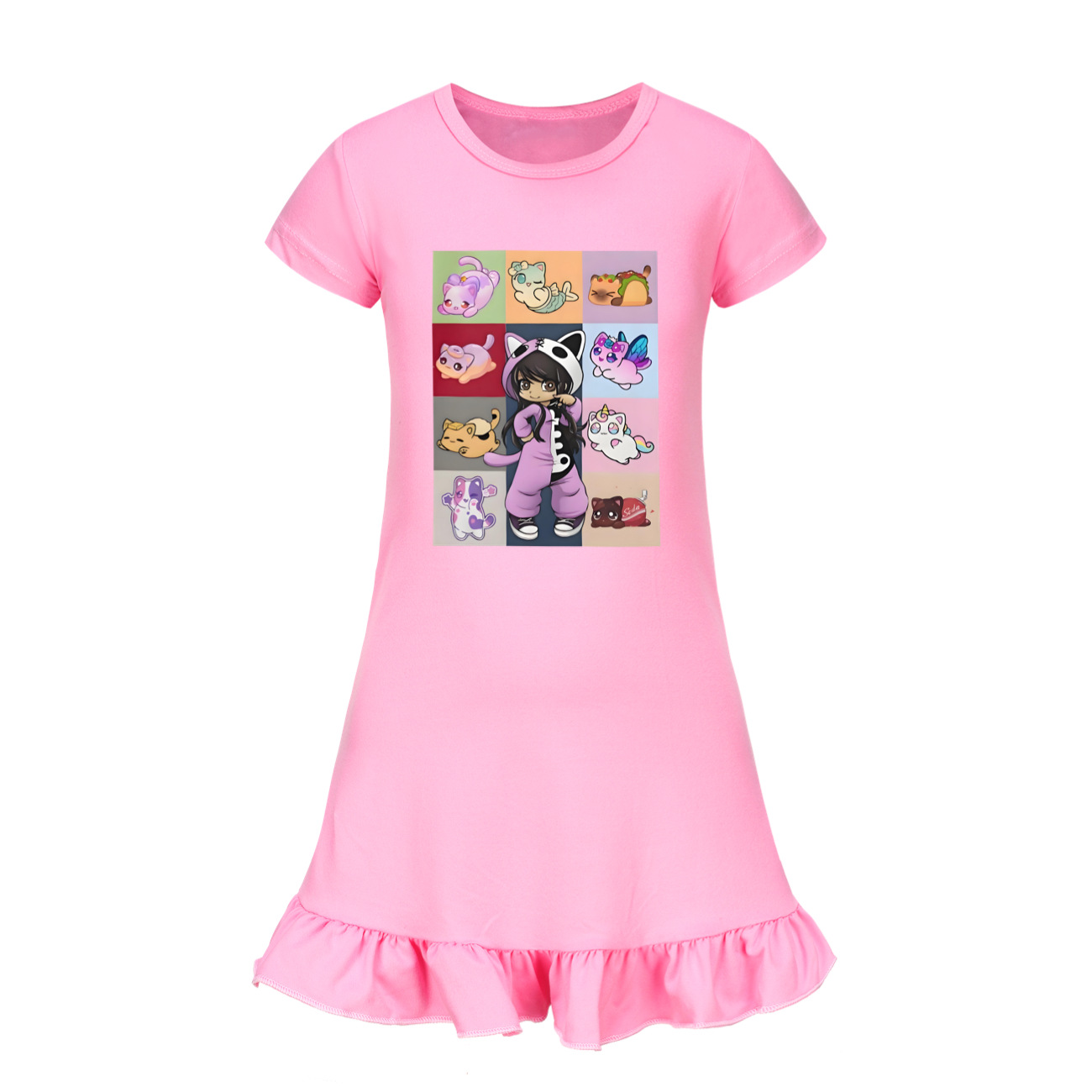 Kids Anime Aphmau Cat Summer Sleepdress Short Sleeve Baby Girls Casual Cartoon Nightgown Daily Wear Clothes for Children