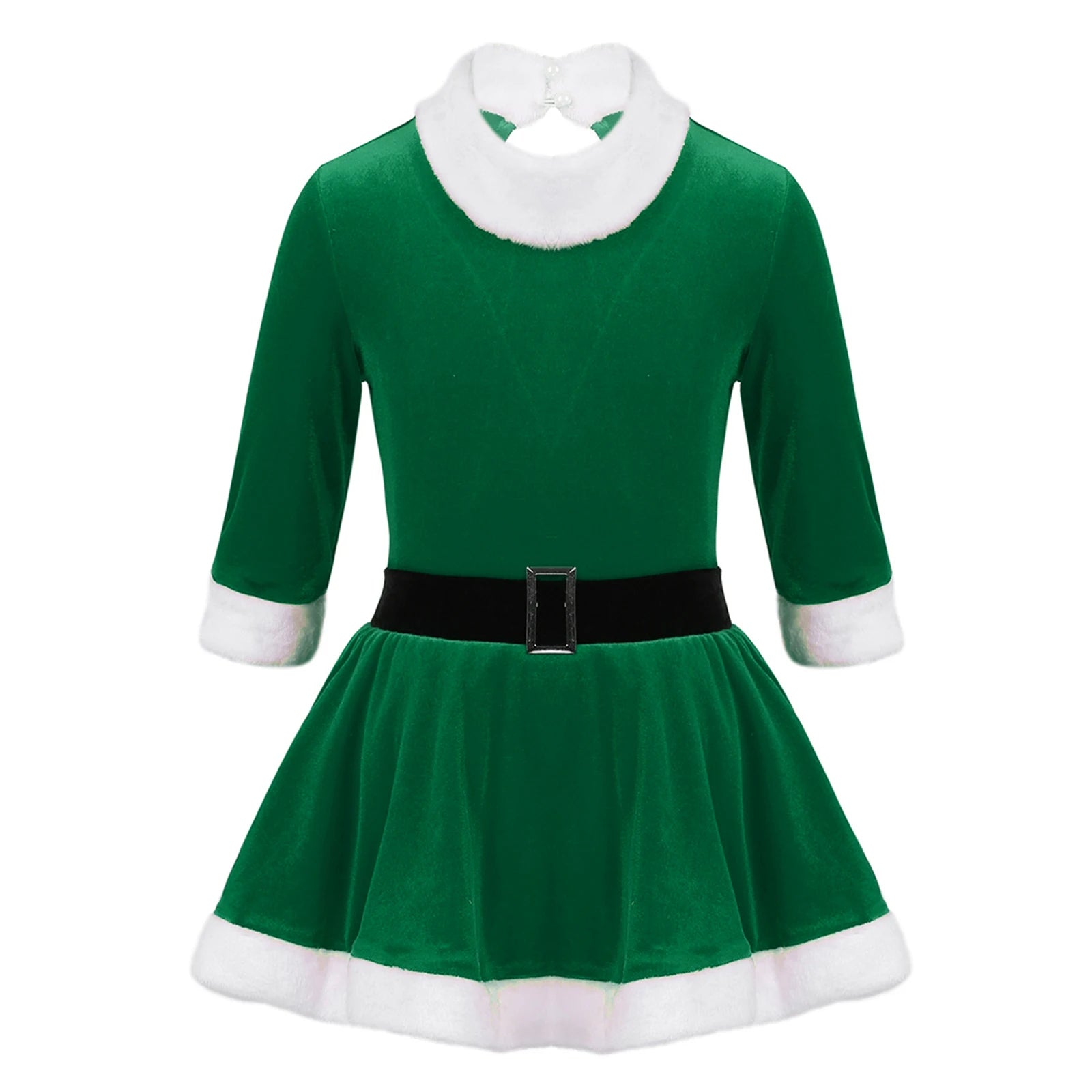 Kids Girls Christmas Santa Dance Costume Carnival Dresses Figure Ice Skating Roller Skating Ballet Dance Velvet Leotard Dress