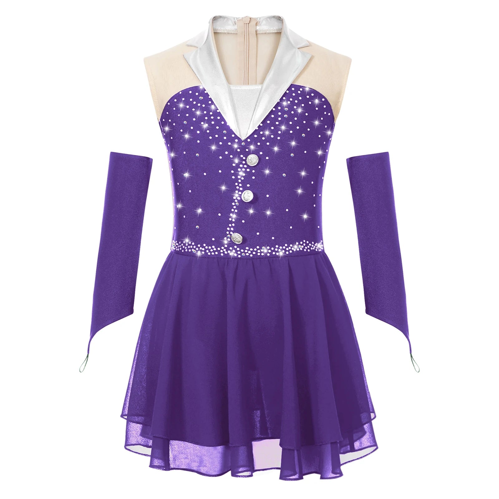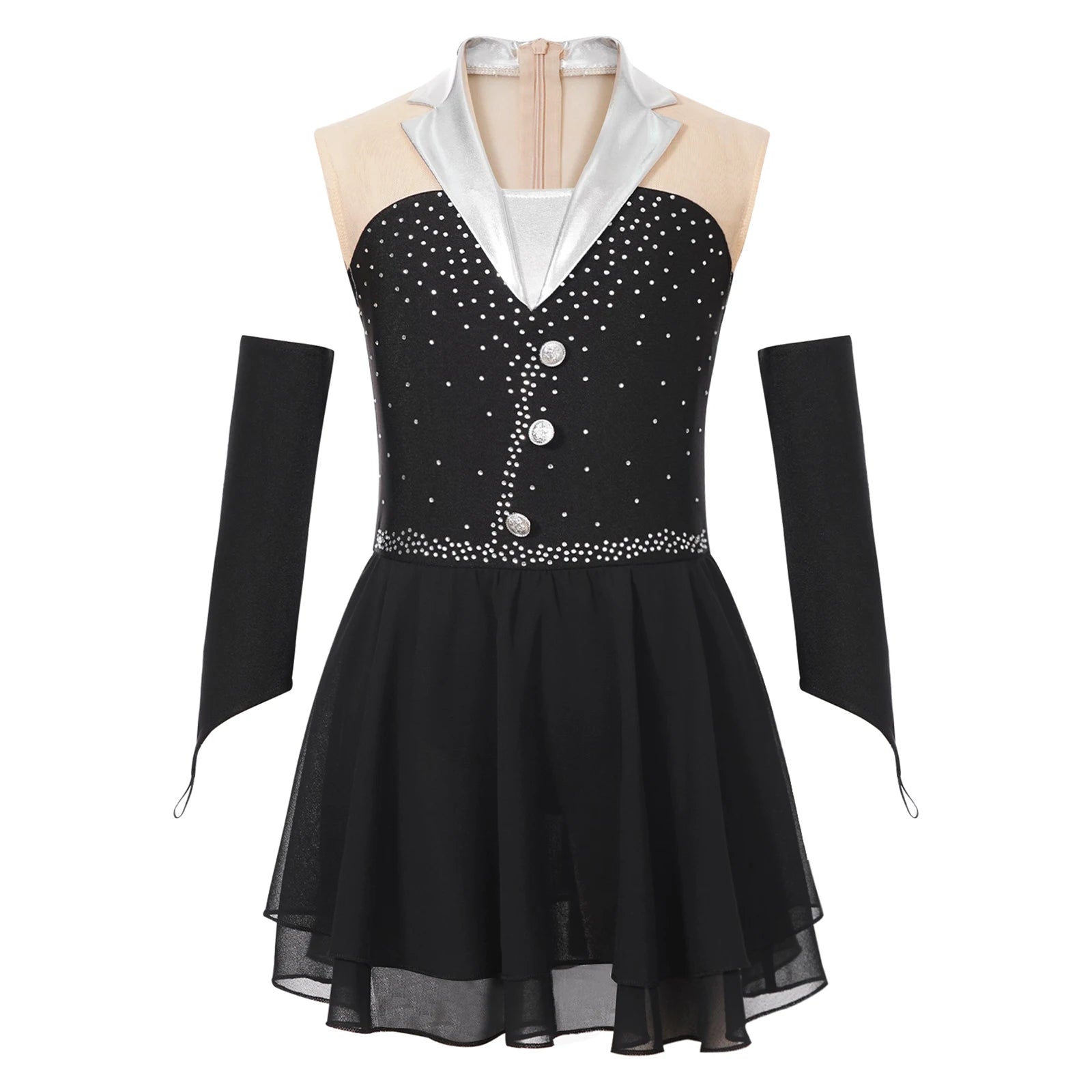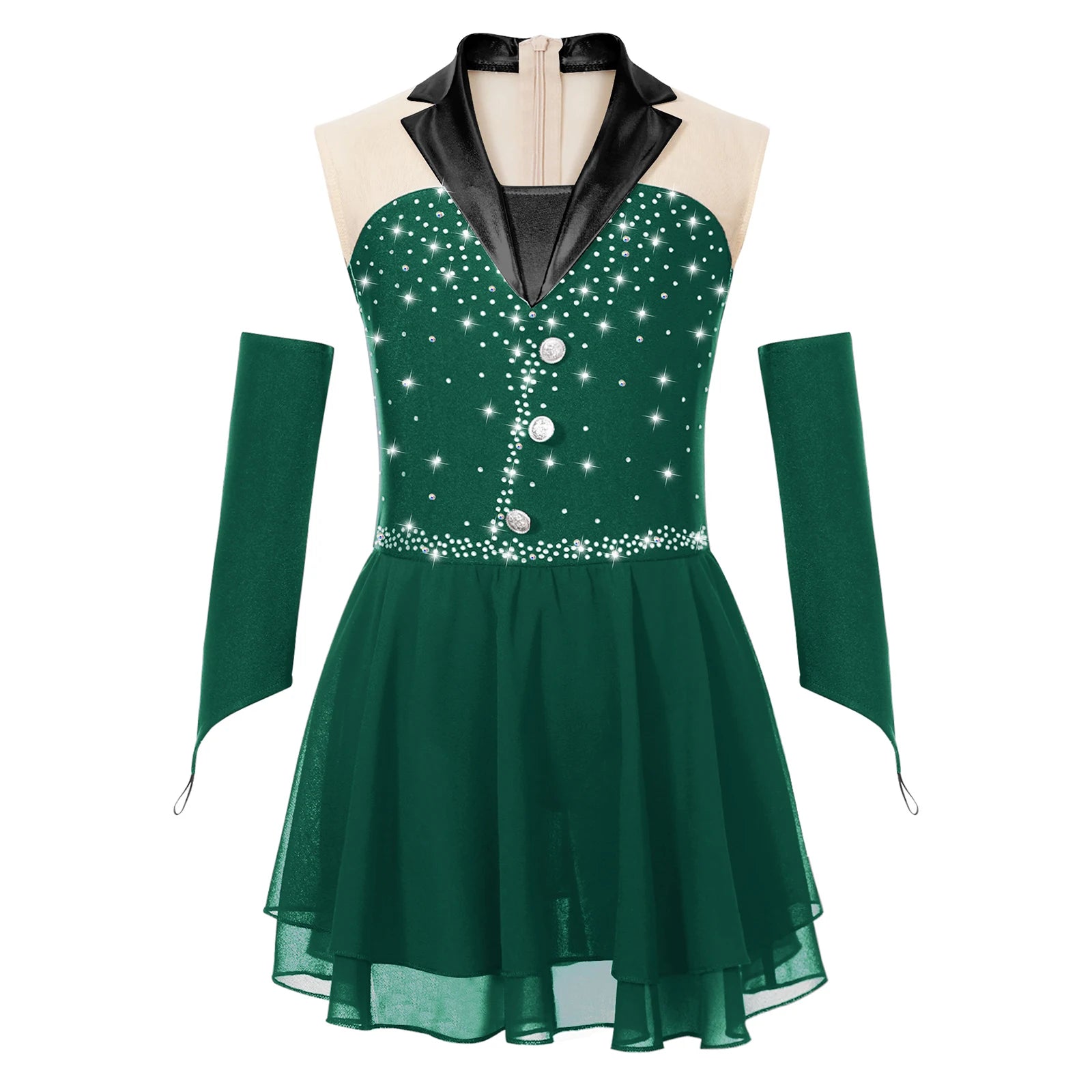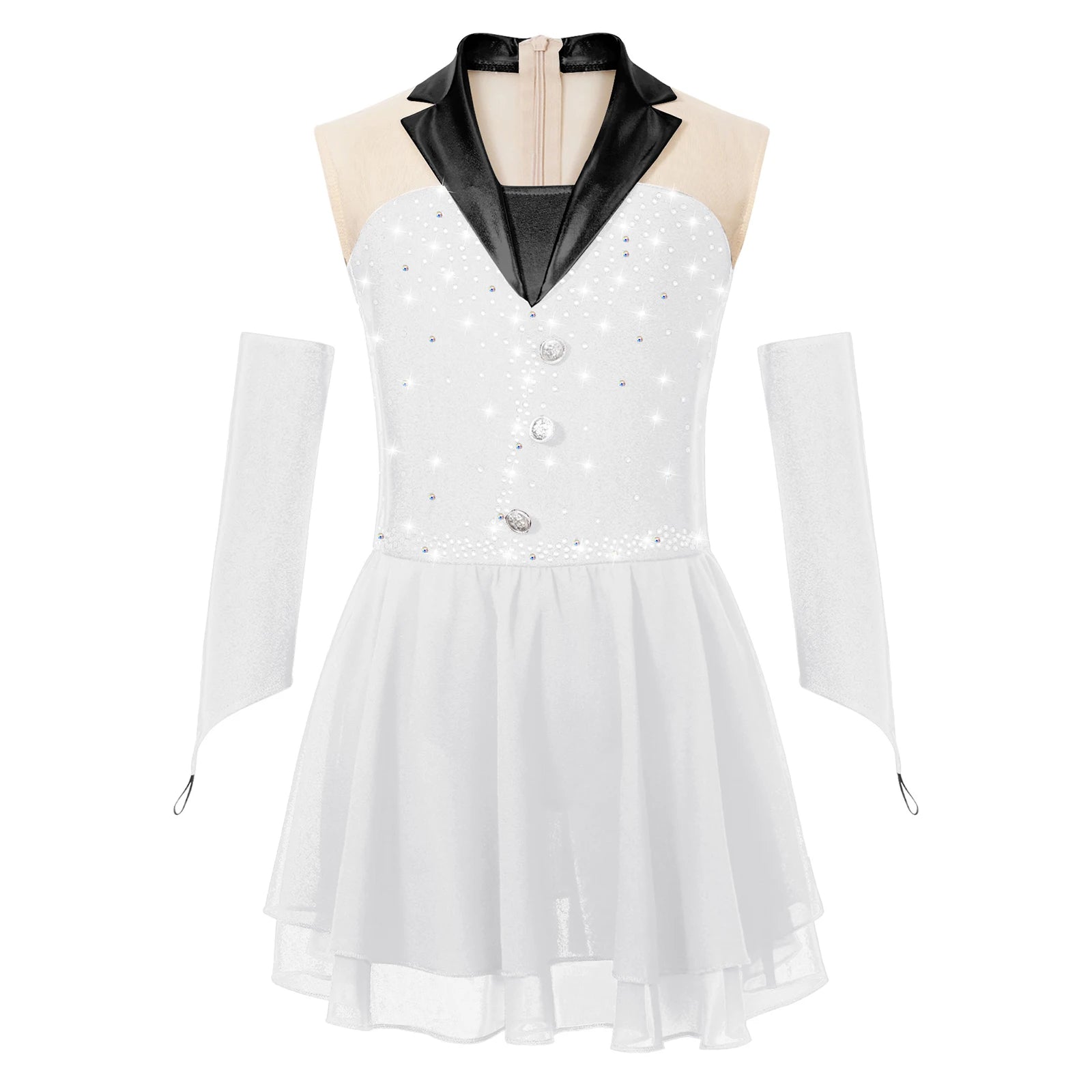 Comes with a pair of fingerless gloves. Suitable for stage performance, ballet, figure skating, latin, cha-cha and so on.