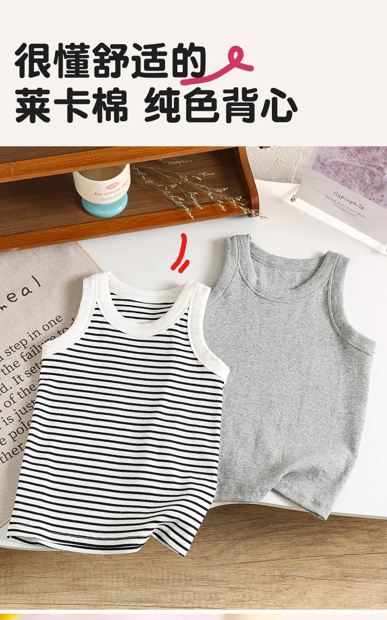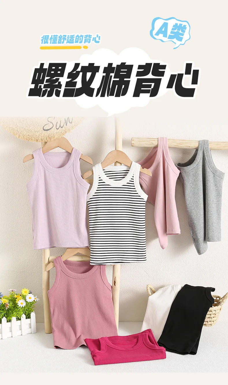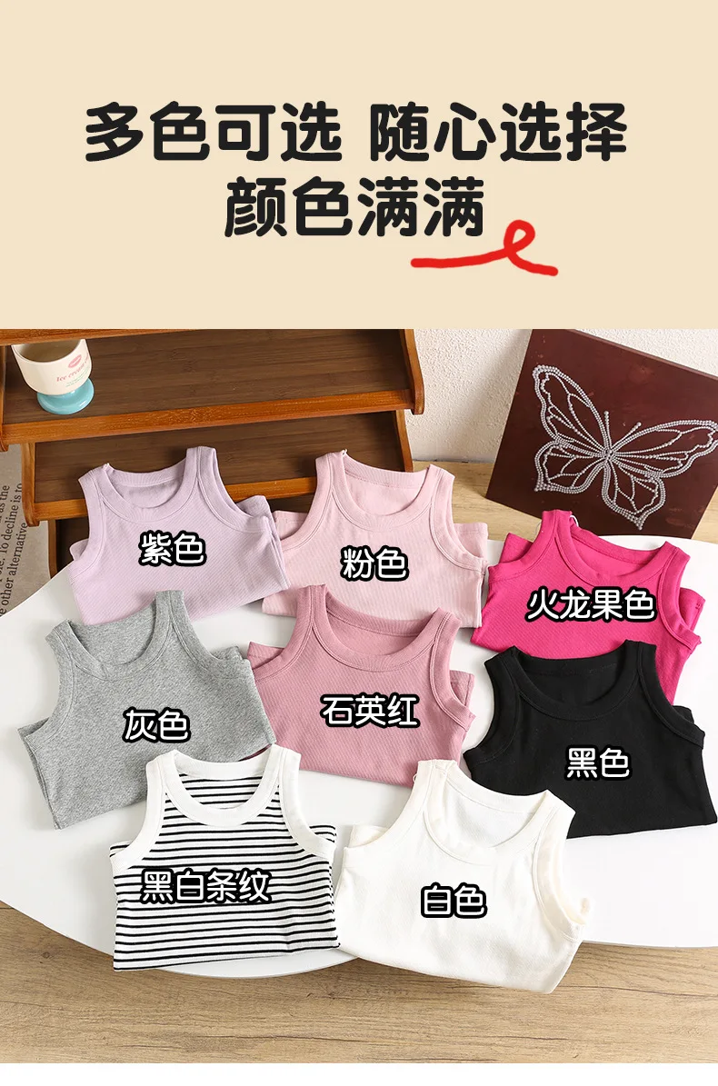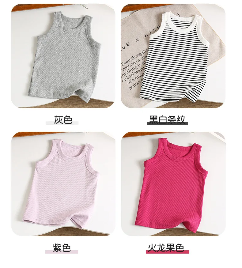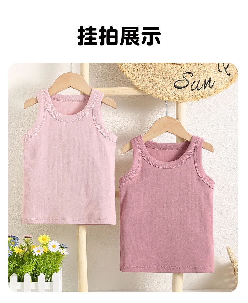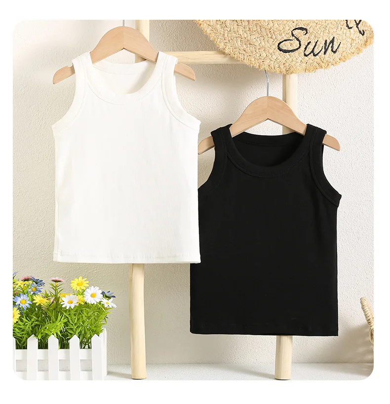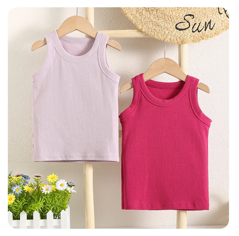 Kids Sleeveless T-shirts Candy Color Summer Tank Tops for Boys Girls Cotton Children Vest Toddler Bottom Baby Sports Clothes