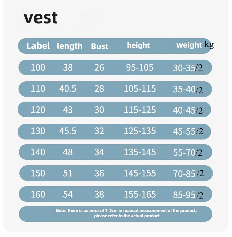 size chart(unit:cm)