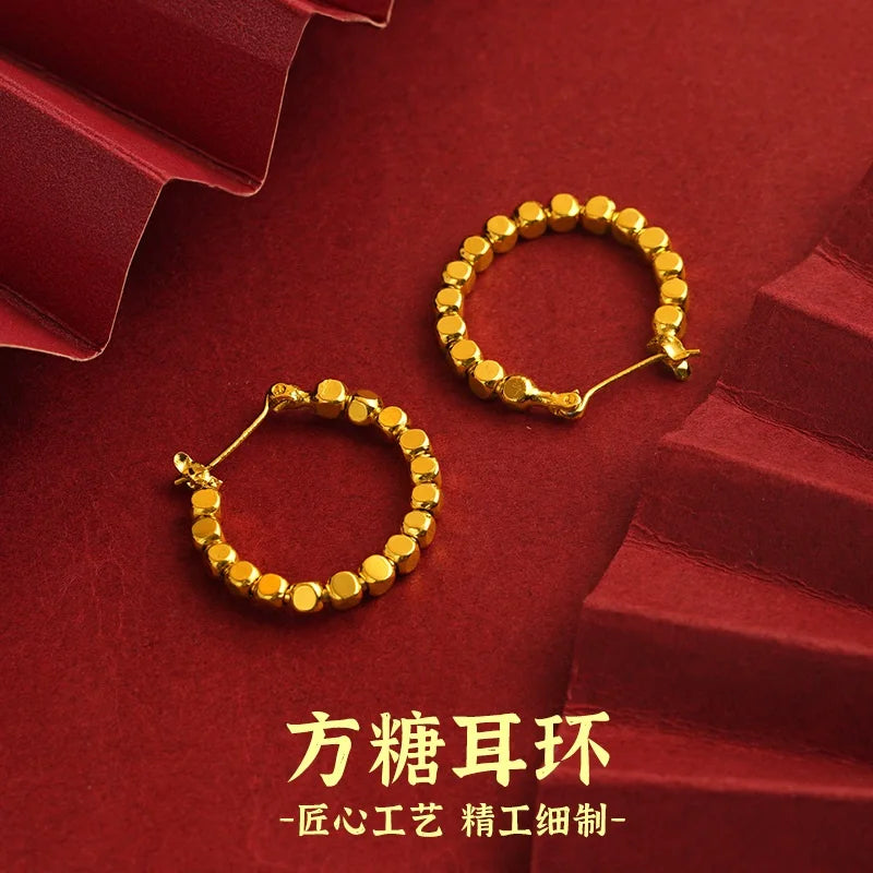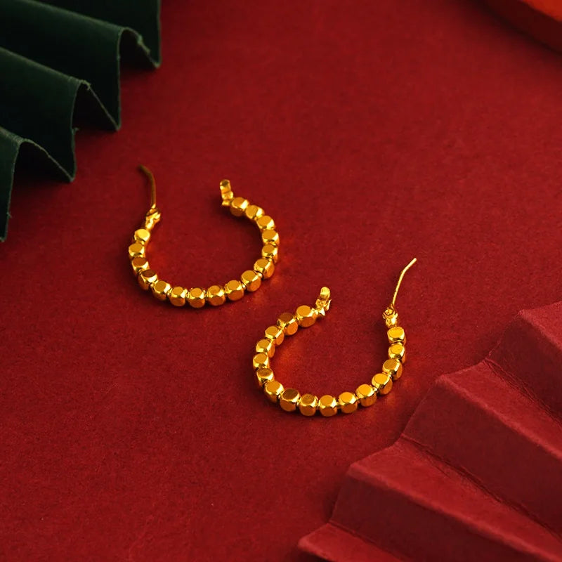 KISS&FLOWER Gold Beads Hoop Earrings For Women Female Party Birthday Wedding Christmas Bride Mother Girlfriend Ladies Gift ER434