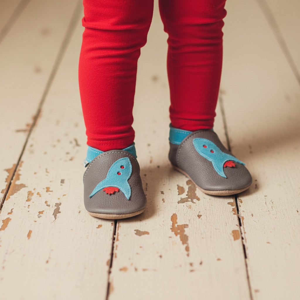 Leather Baby Shoes - Rocket Grey - Inch Blue