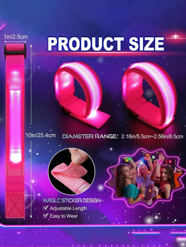 LED Light Up Bracelets Glow in The Dark Party Prop Outdoor Sports Belt Arm Leg Warning Wristband Reflective Safety Bicycle Light