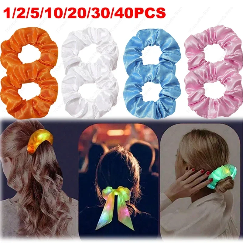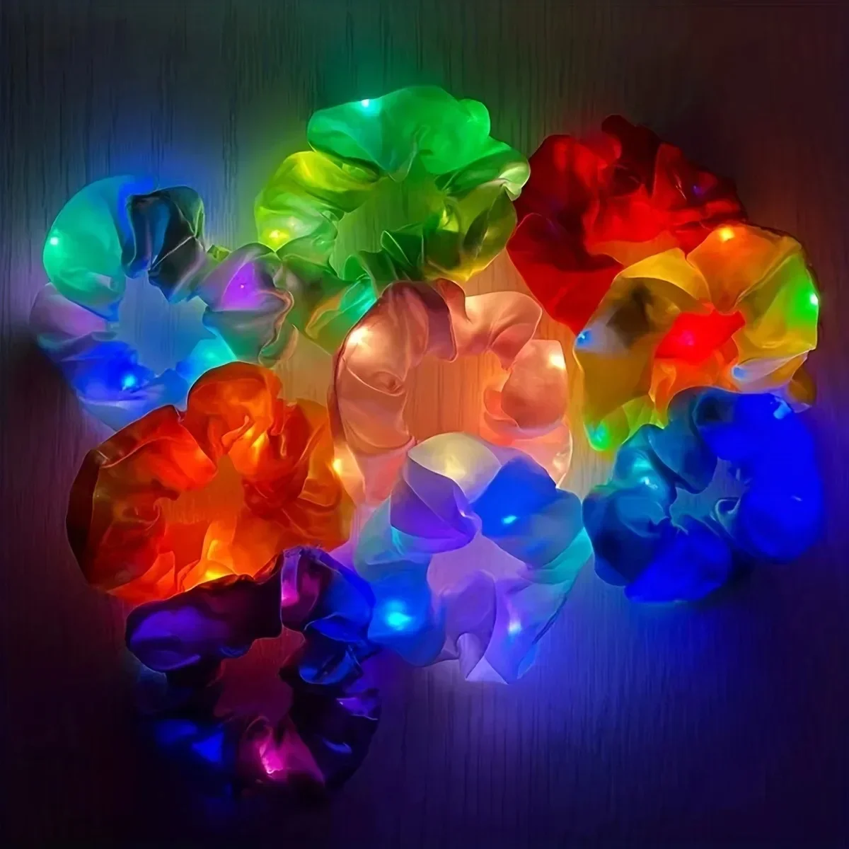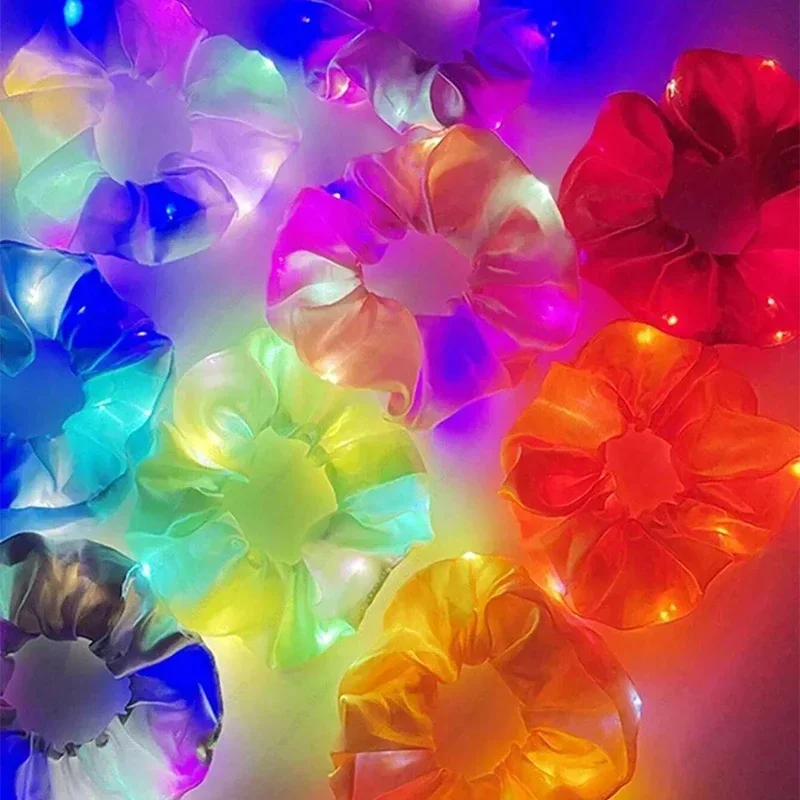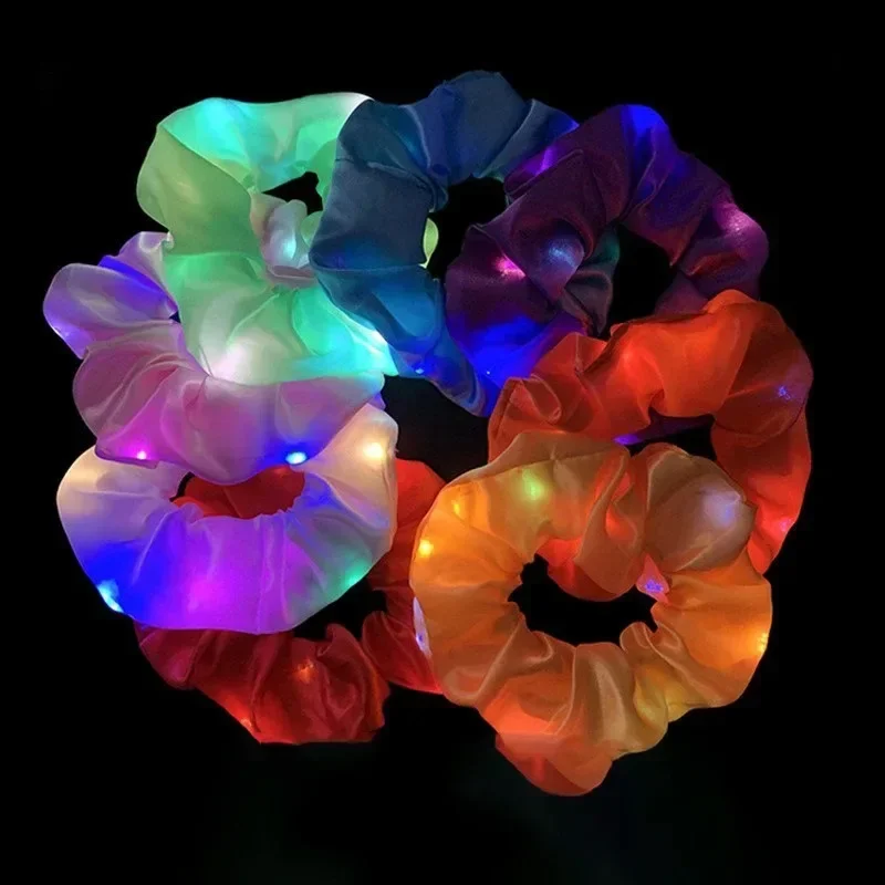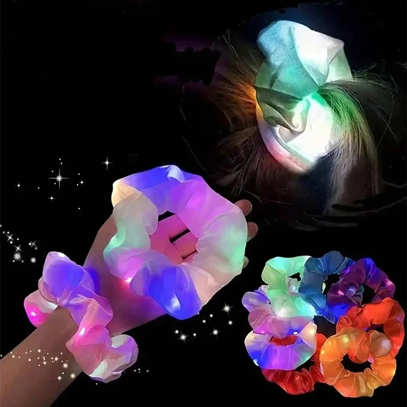 LED Luminous Scrunchies Hairband Glowing Elastic Hair Tie Rope for Women Girls Glow in the Dark Party Hair Accessory