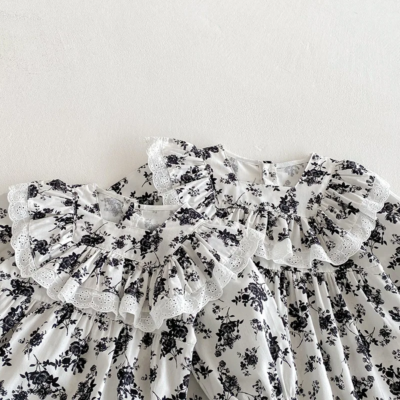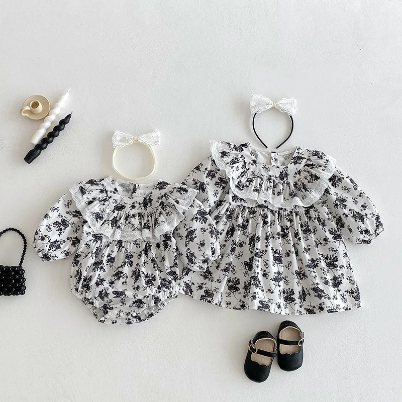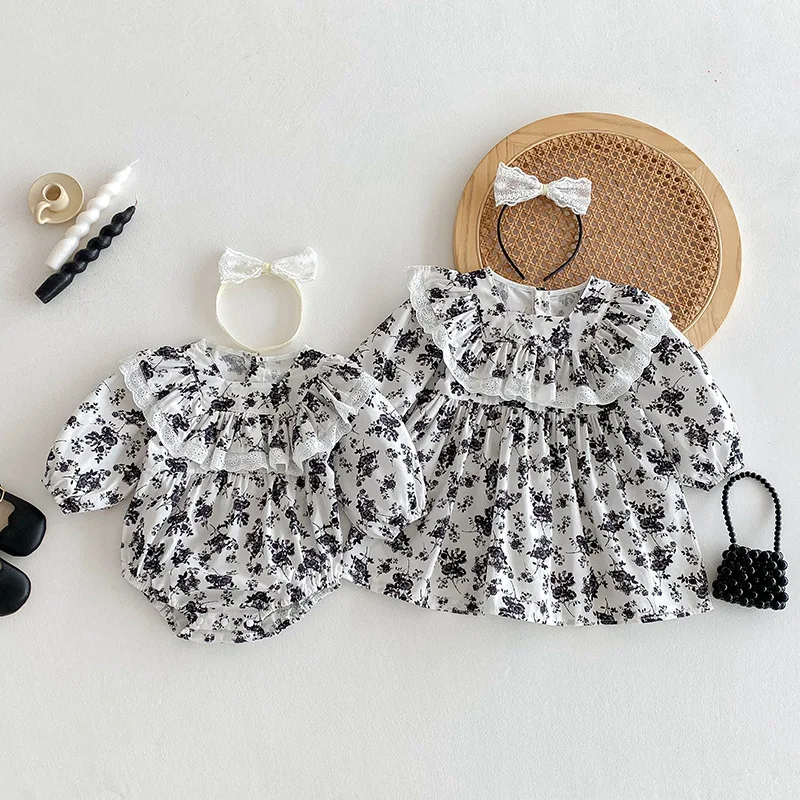 Little Sister Big Sister Matching Floral Print Outfit Cotton Twins Baby Cute Clothes Infant Flower Bodysuit Kids Girls Dresses
