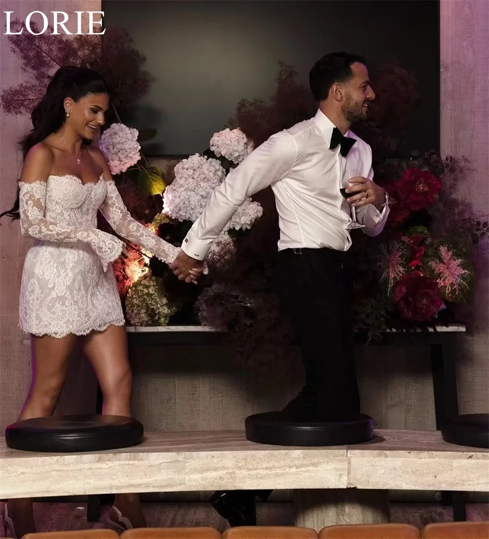 LORIE Sexy Short Lace Wedding Dresses Strapless Mermaid Full Sleeves Mini Bride Prom Gown 2025 Romantic Bridal Gowns Customized