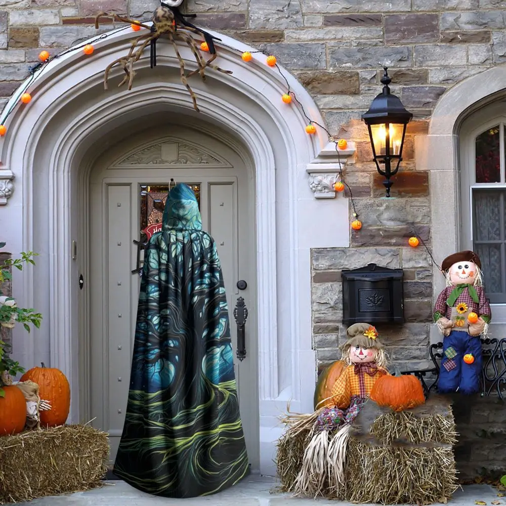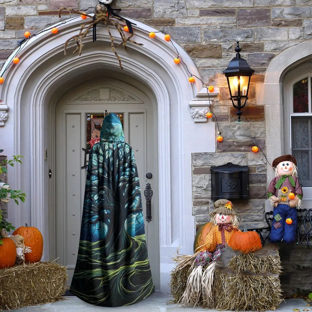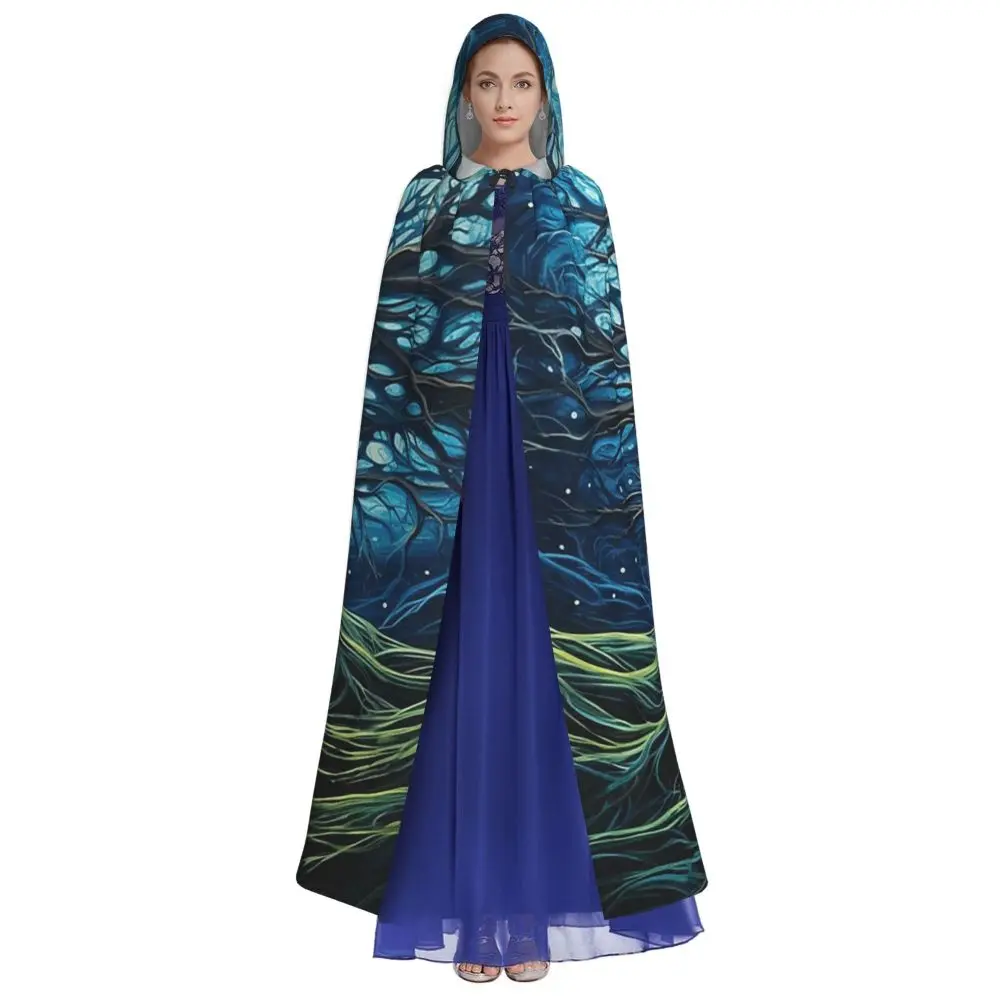 Magic Green Tree Long Hooded Cloak Witch Medieval Costume Cosplay Cape HalloweenParty Adult Unisex