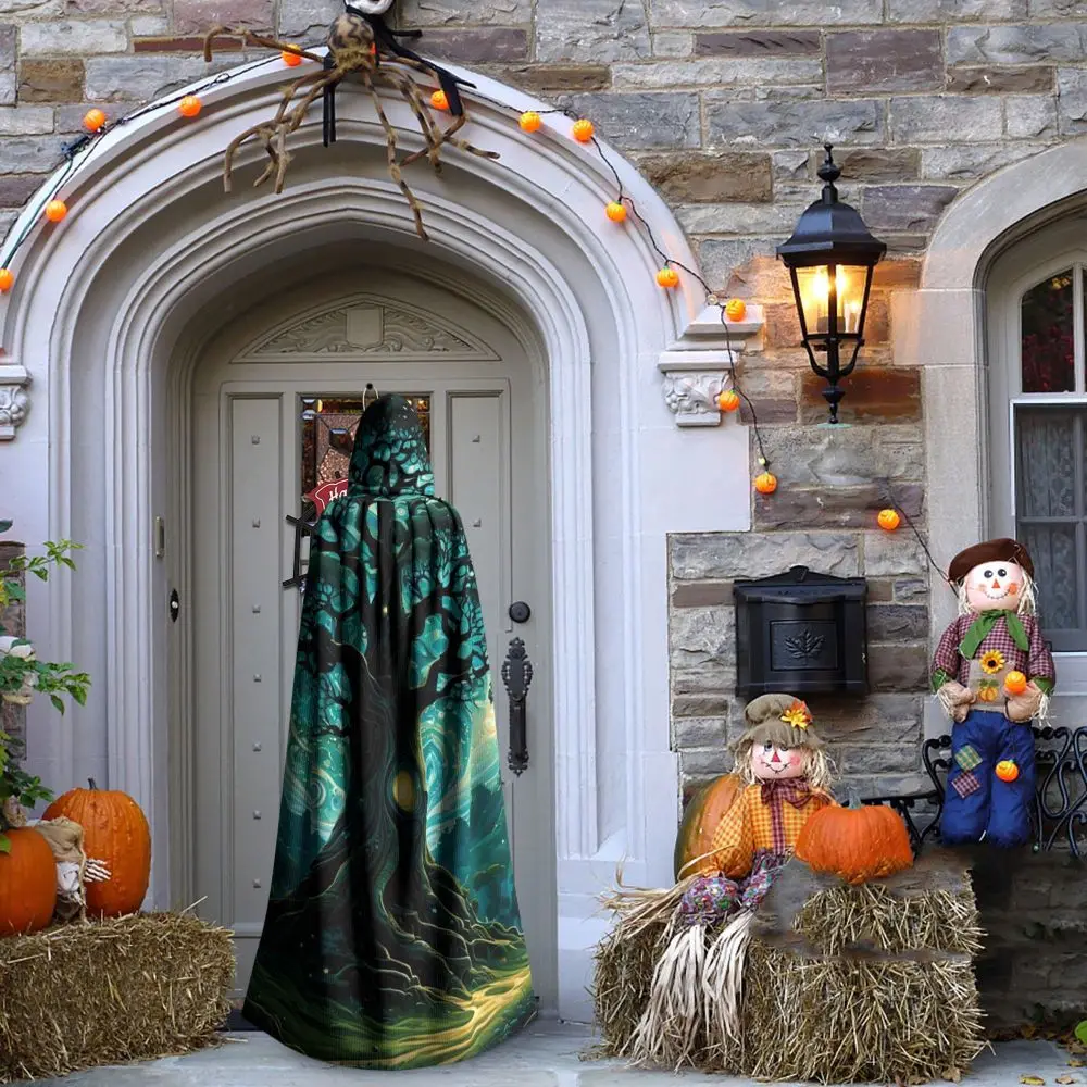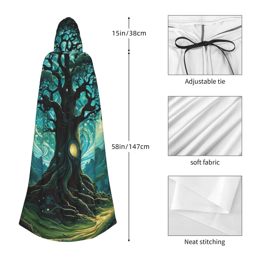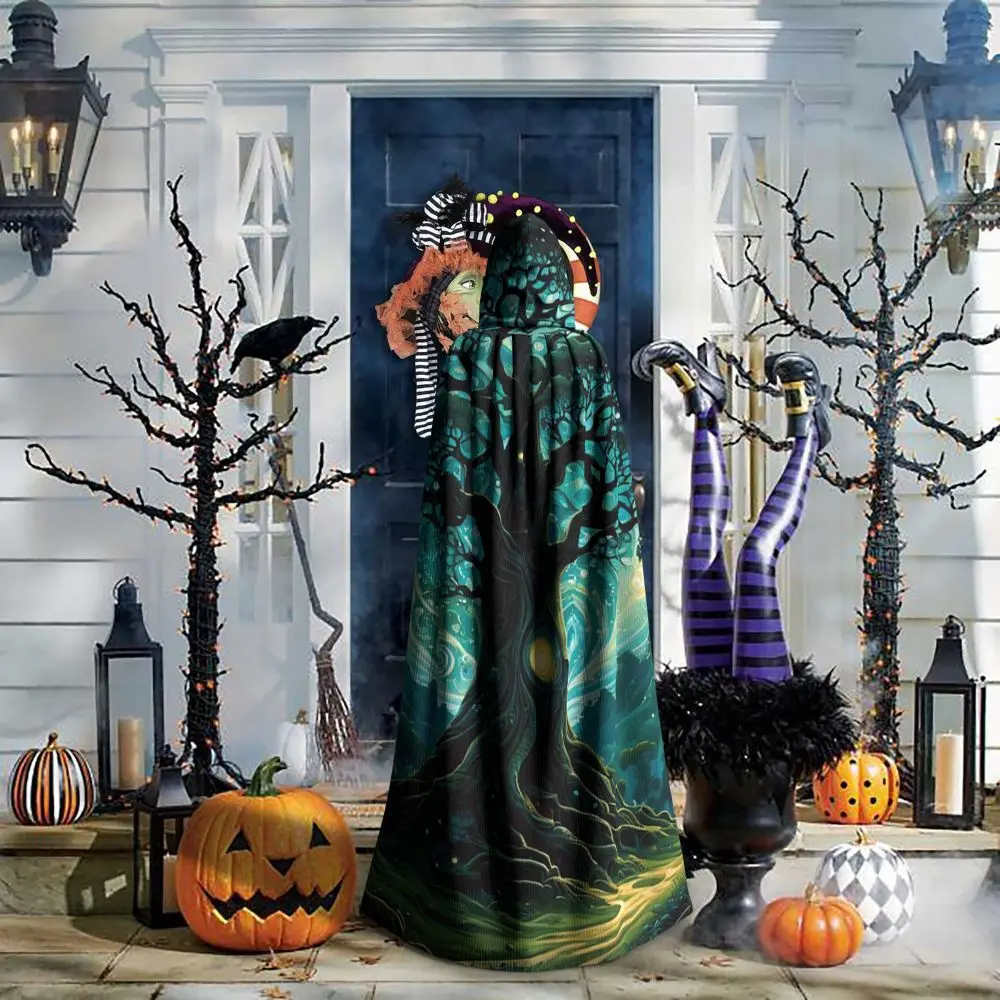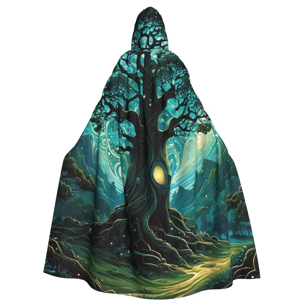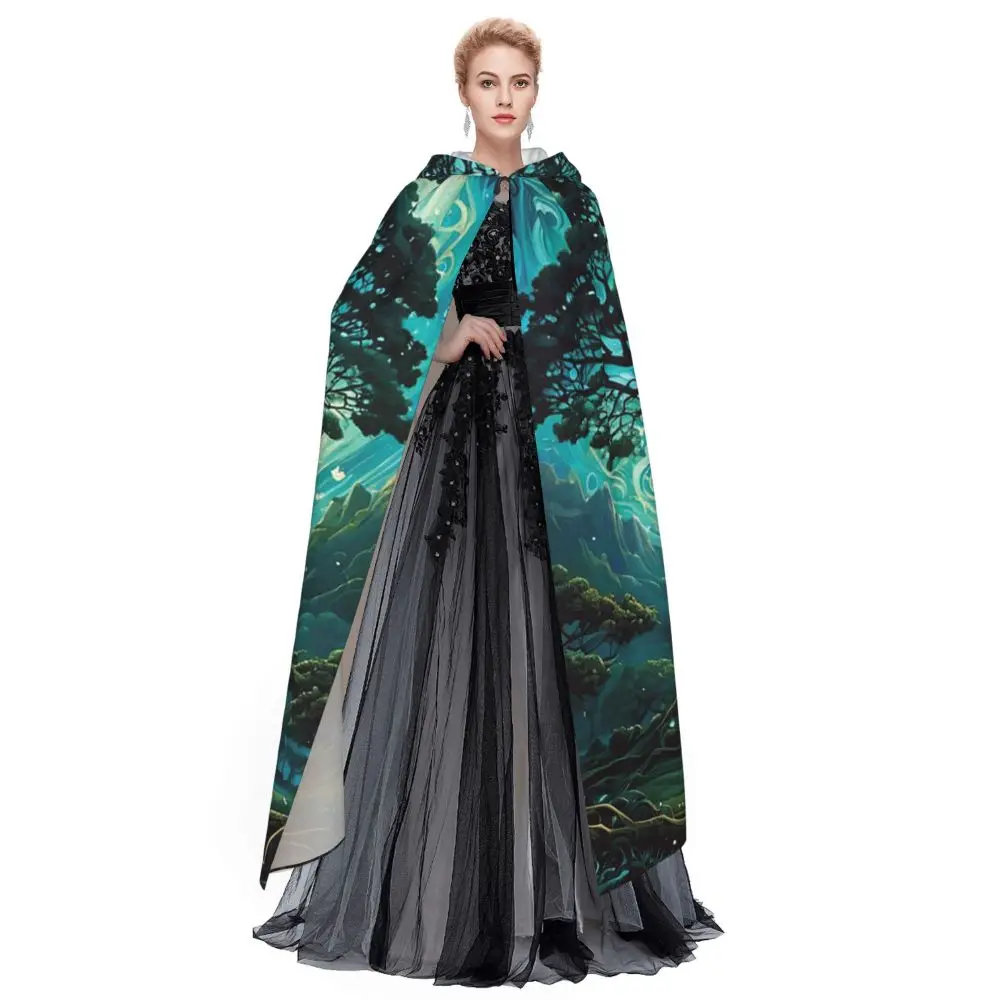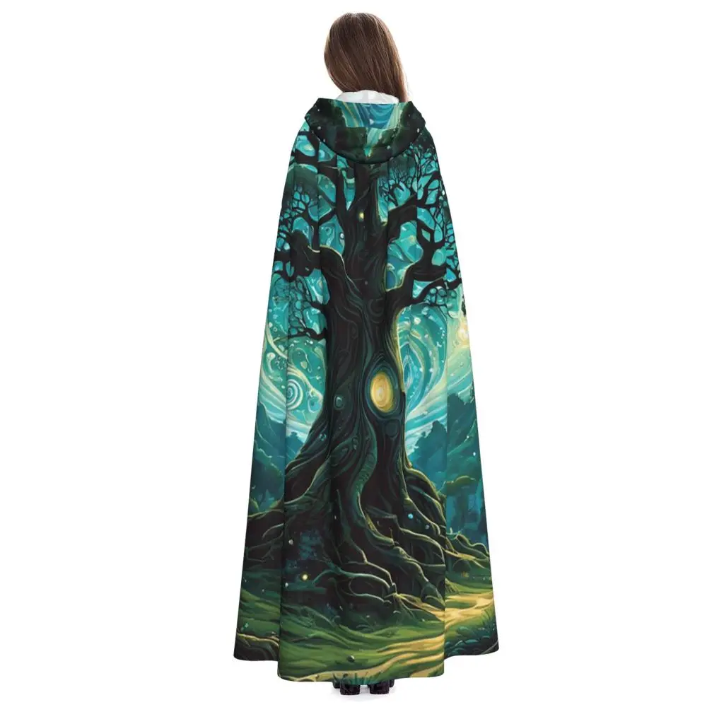 Magic Green Tree Long Hooded Cloak Witch Medieval Costume Cosplay Cape HalloweenVampire Adult Unisex