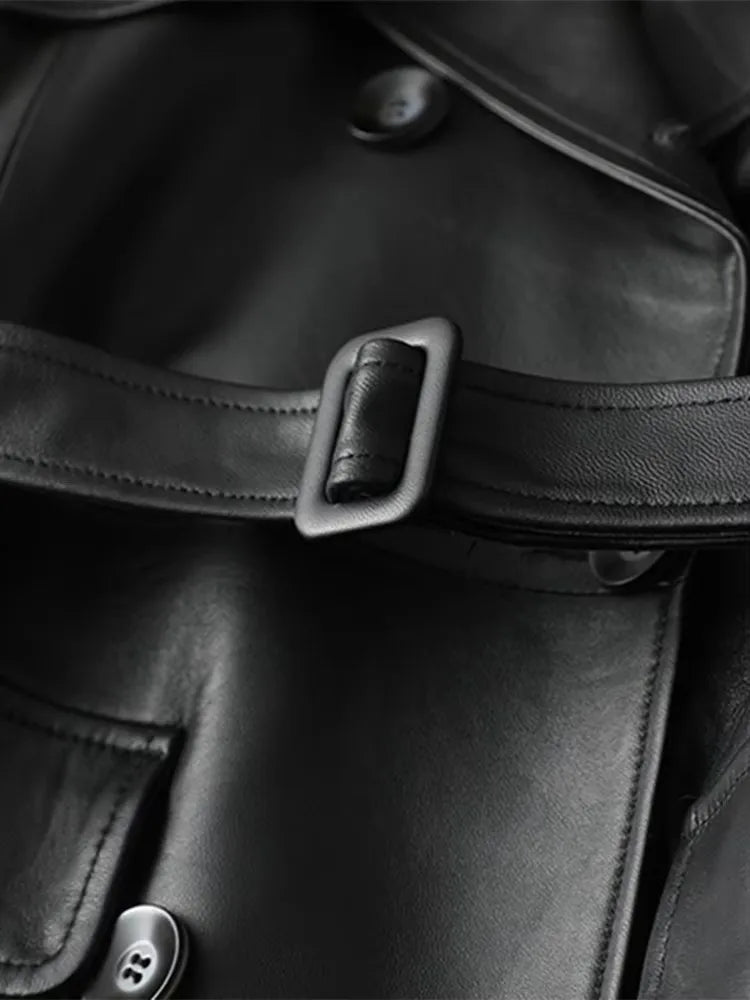 Mauroicardi Spring Autumn Black Pu Leather Blazer Jacket Women Three-dimensional Pockets Double Breasted Luxury Clothes 2025