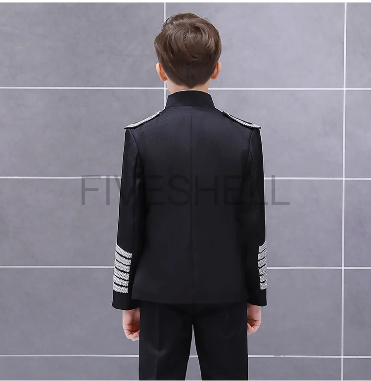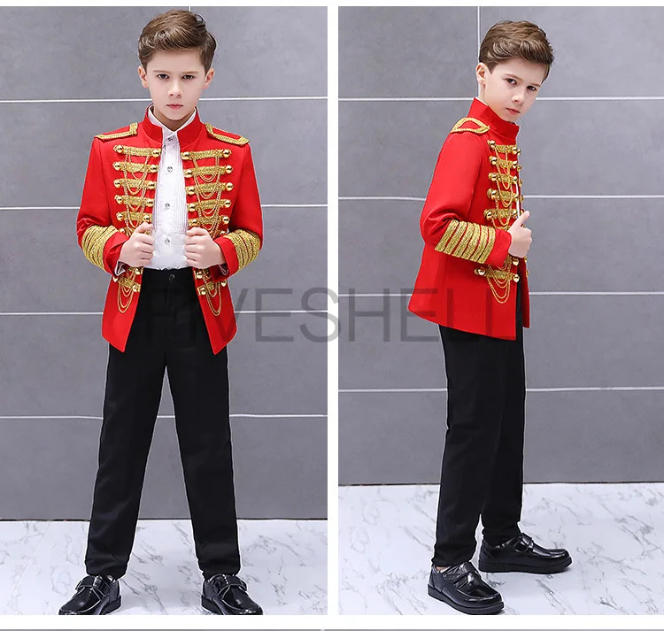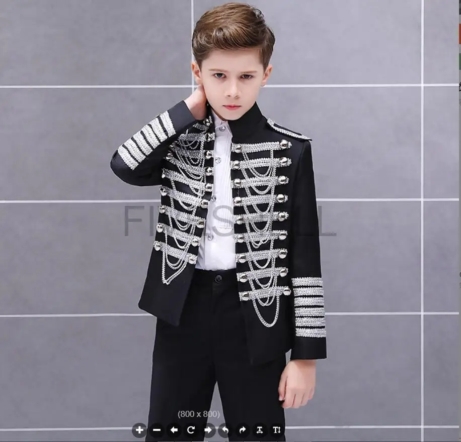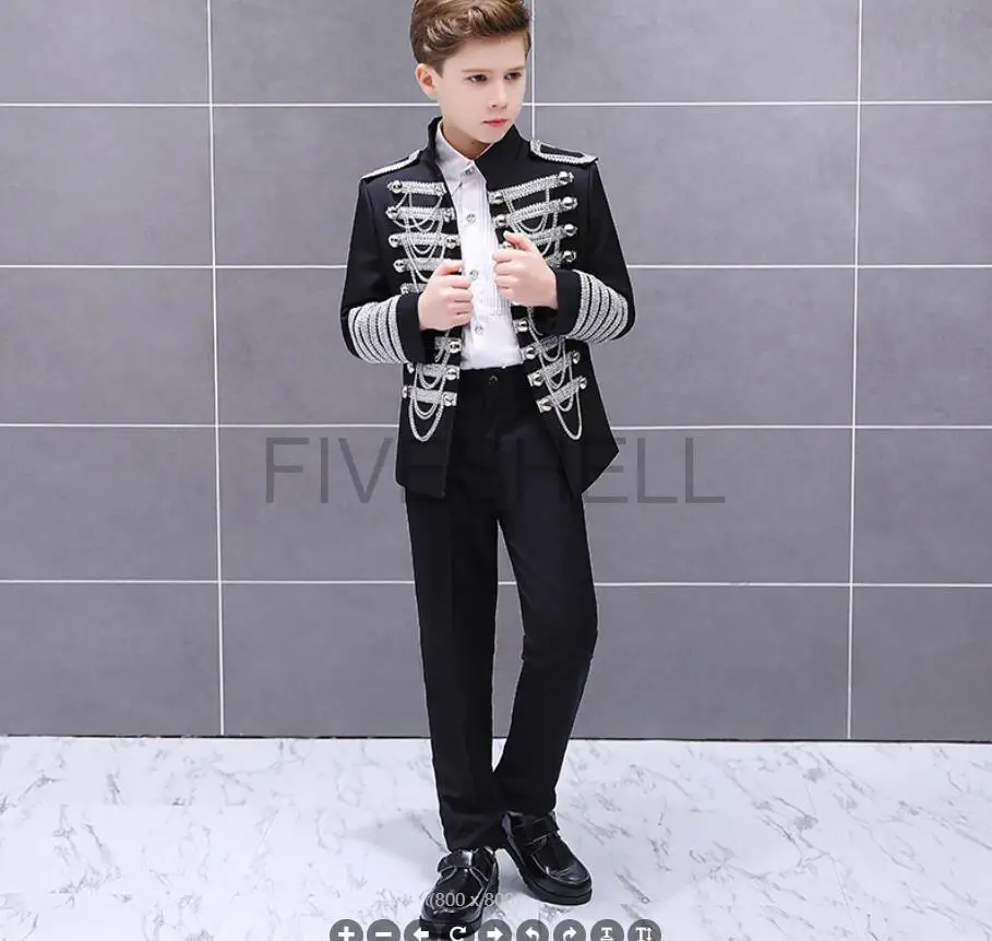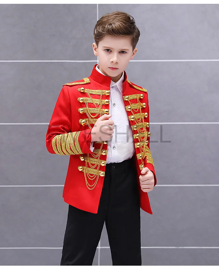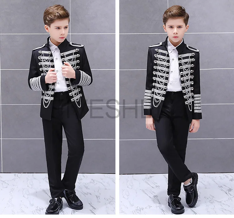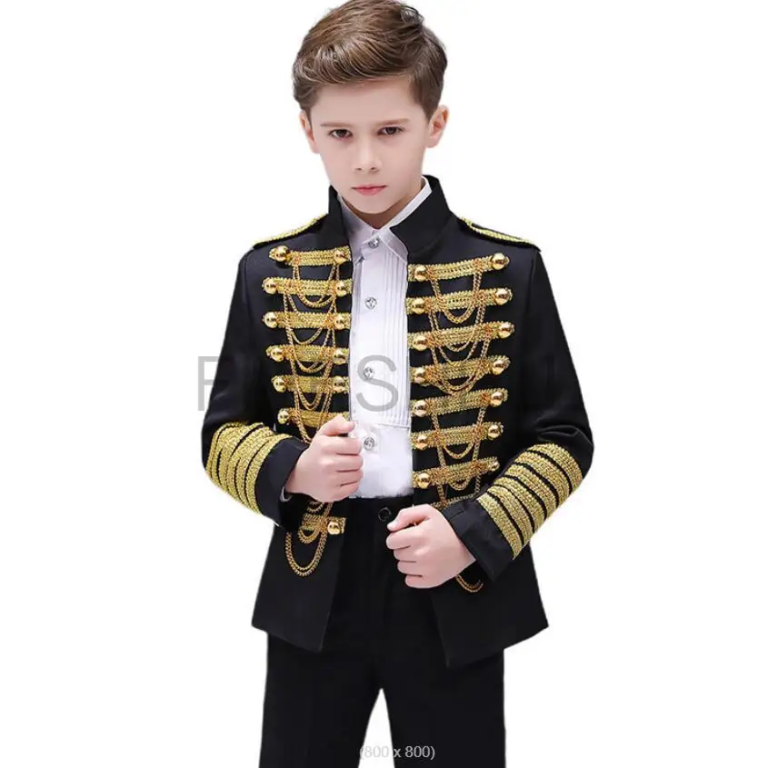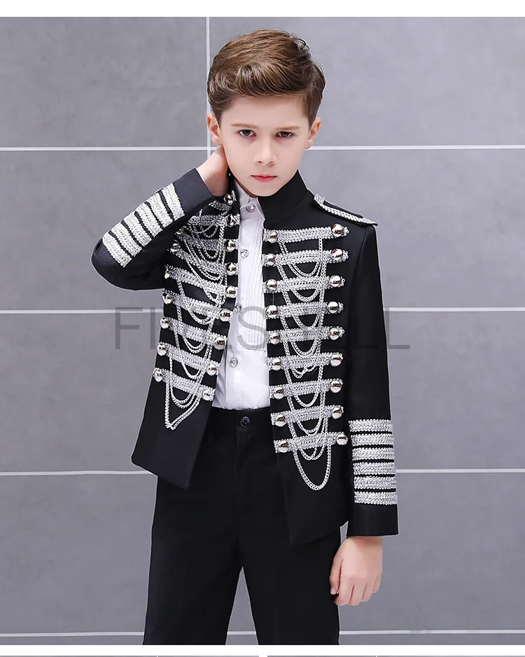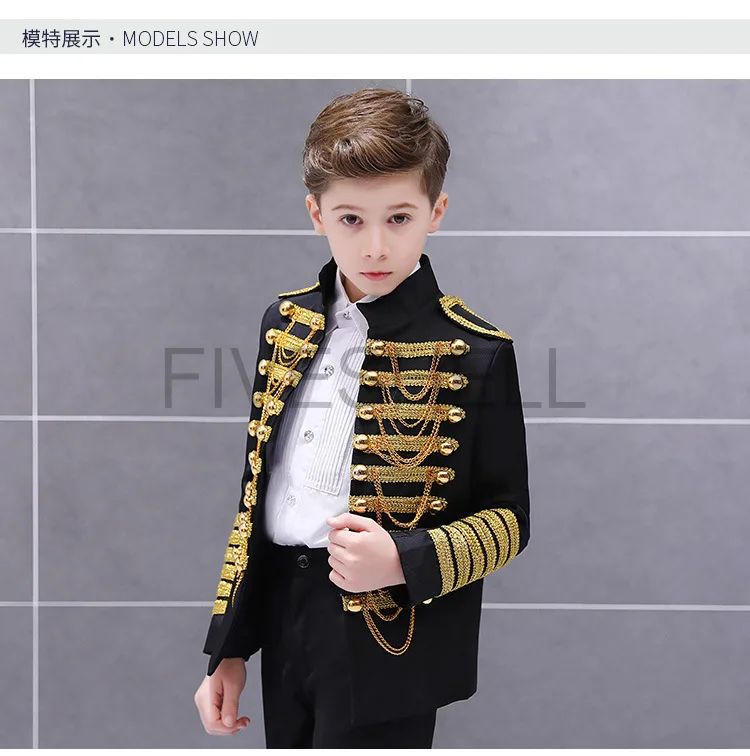 Medieval Steampunk Prince Blazer Costume Military Tassel Chains Cosplay Jacket Shoulder Pad Coat Pop Stage Dacing Tops for Kids