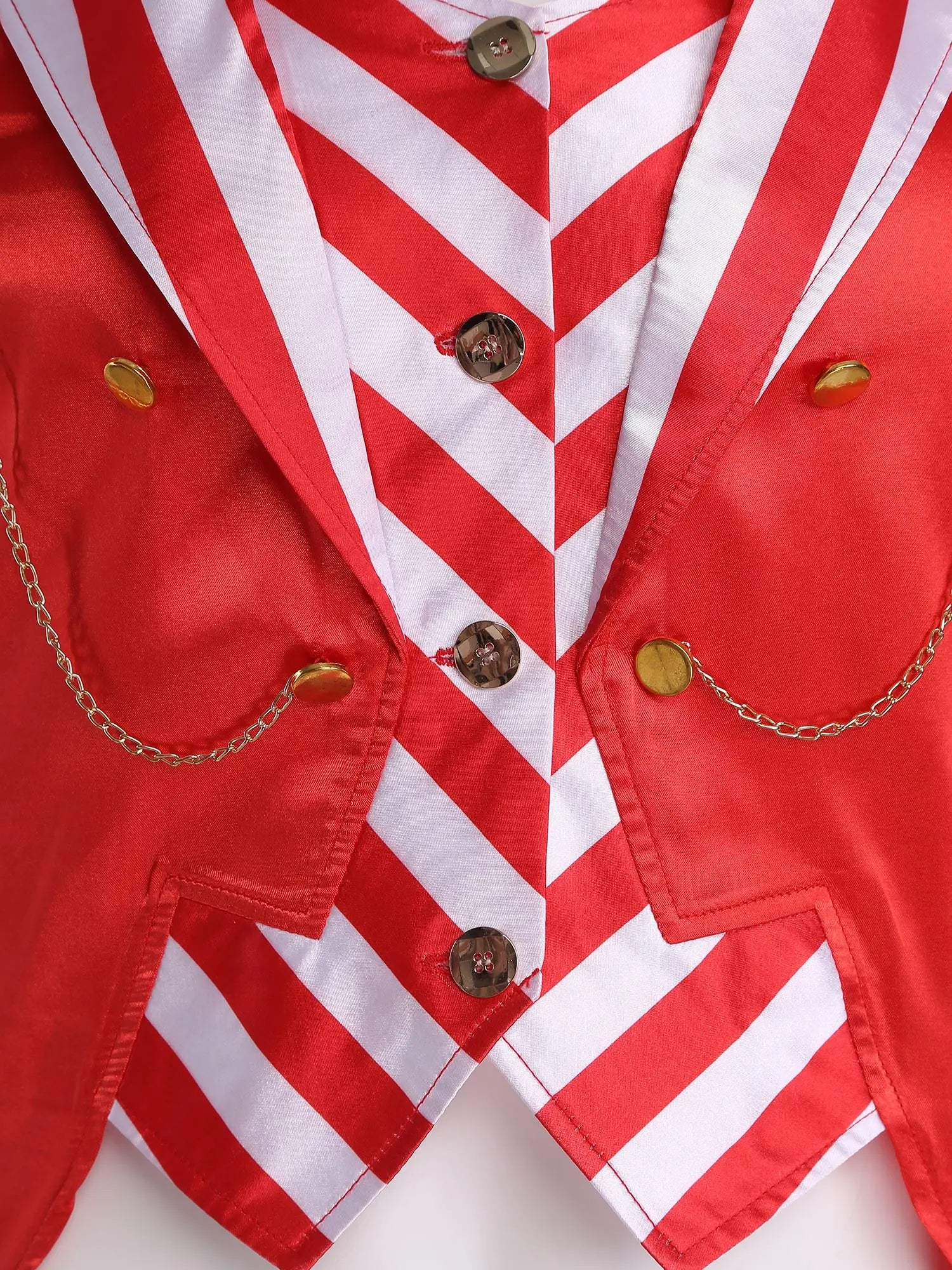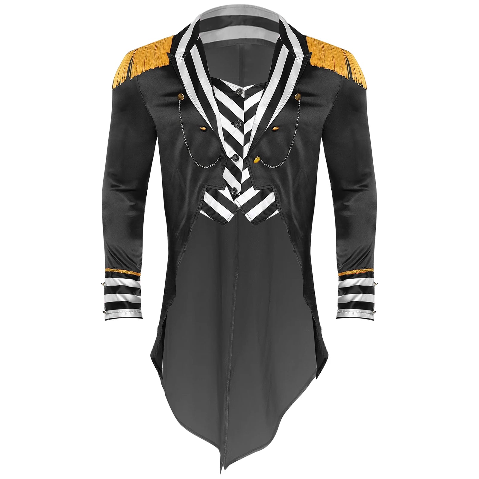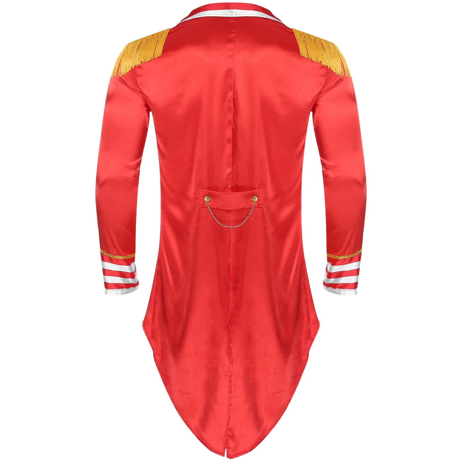 Men Circus Ringmaster Costume Halloween Lion Tamer Tailcoat Lapel Collar Long Sleeves Tassel Epaulets Satin Jacket Tail Coats