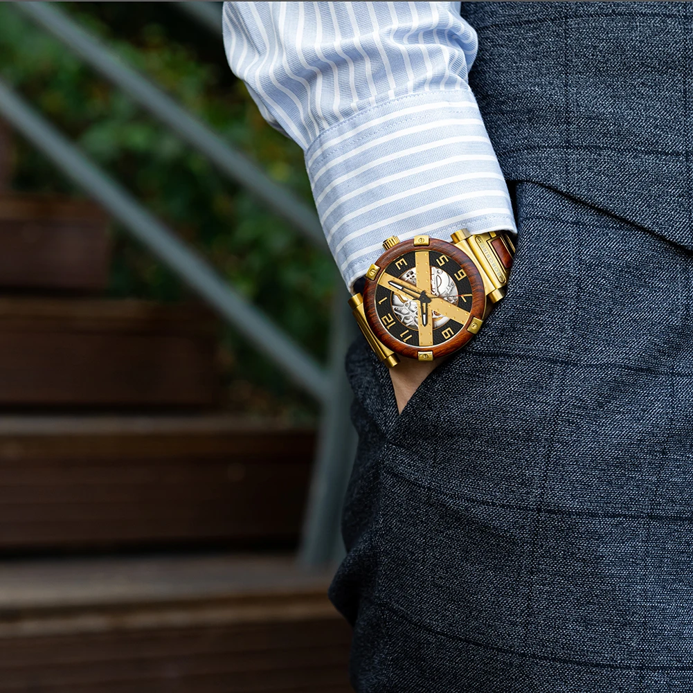 2022 New Fashion Men Automatic mechanical Watch Wood Wristwatch