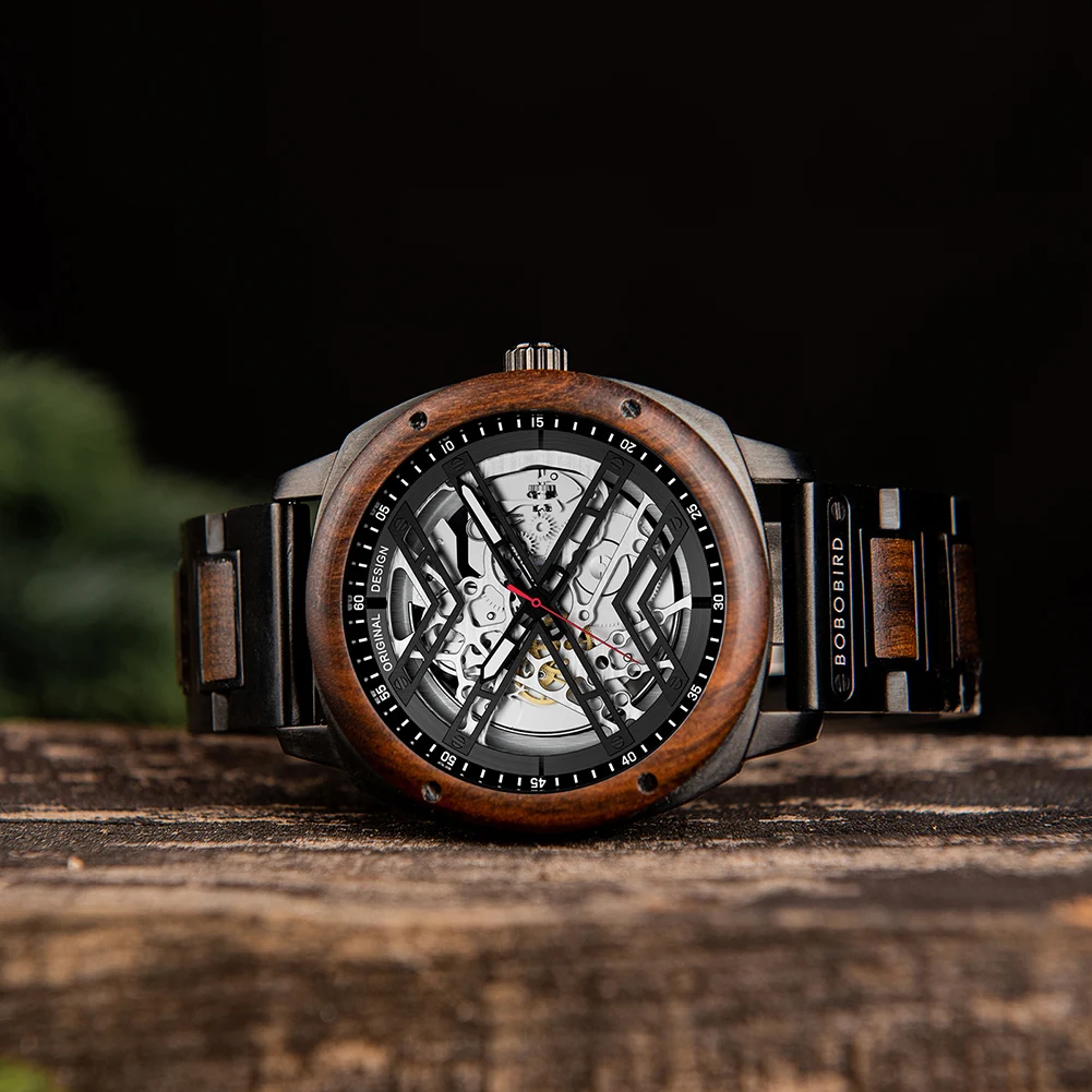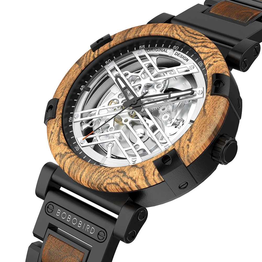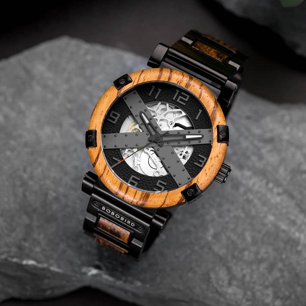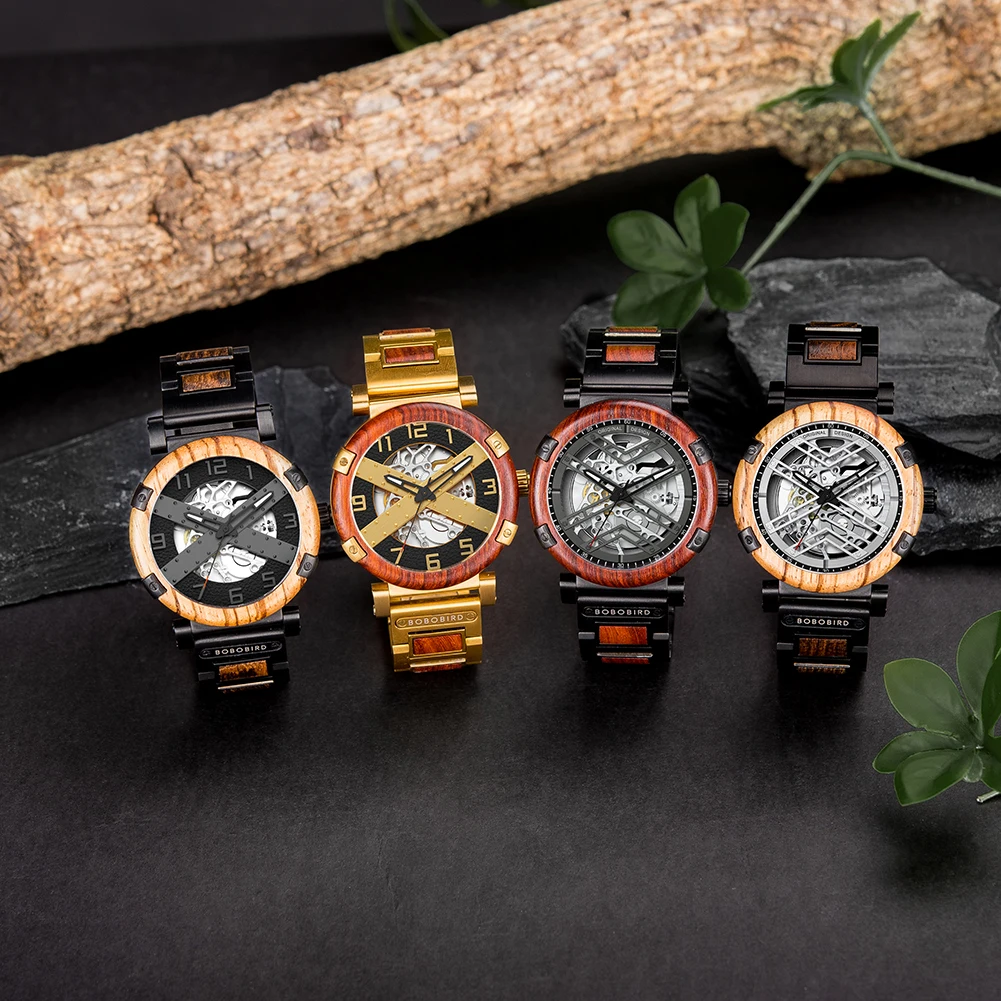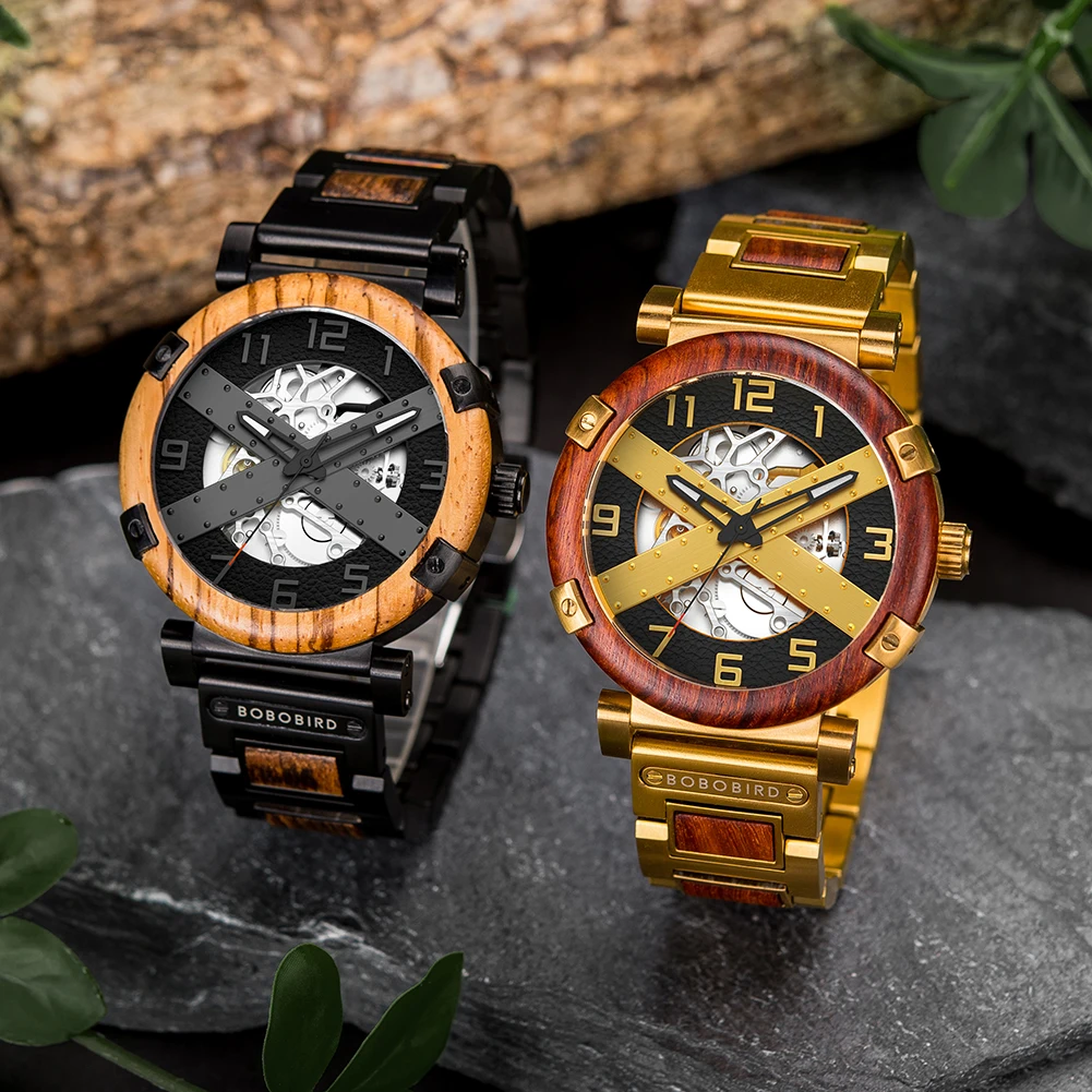 Men Watch BOBO BIRD Wooden Automatic Mechanical Watch Metal Wristwatch Top Fashion Business Clock Custom Gift Box reloj hombre