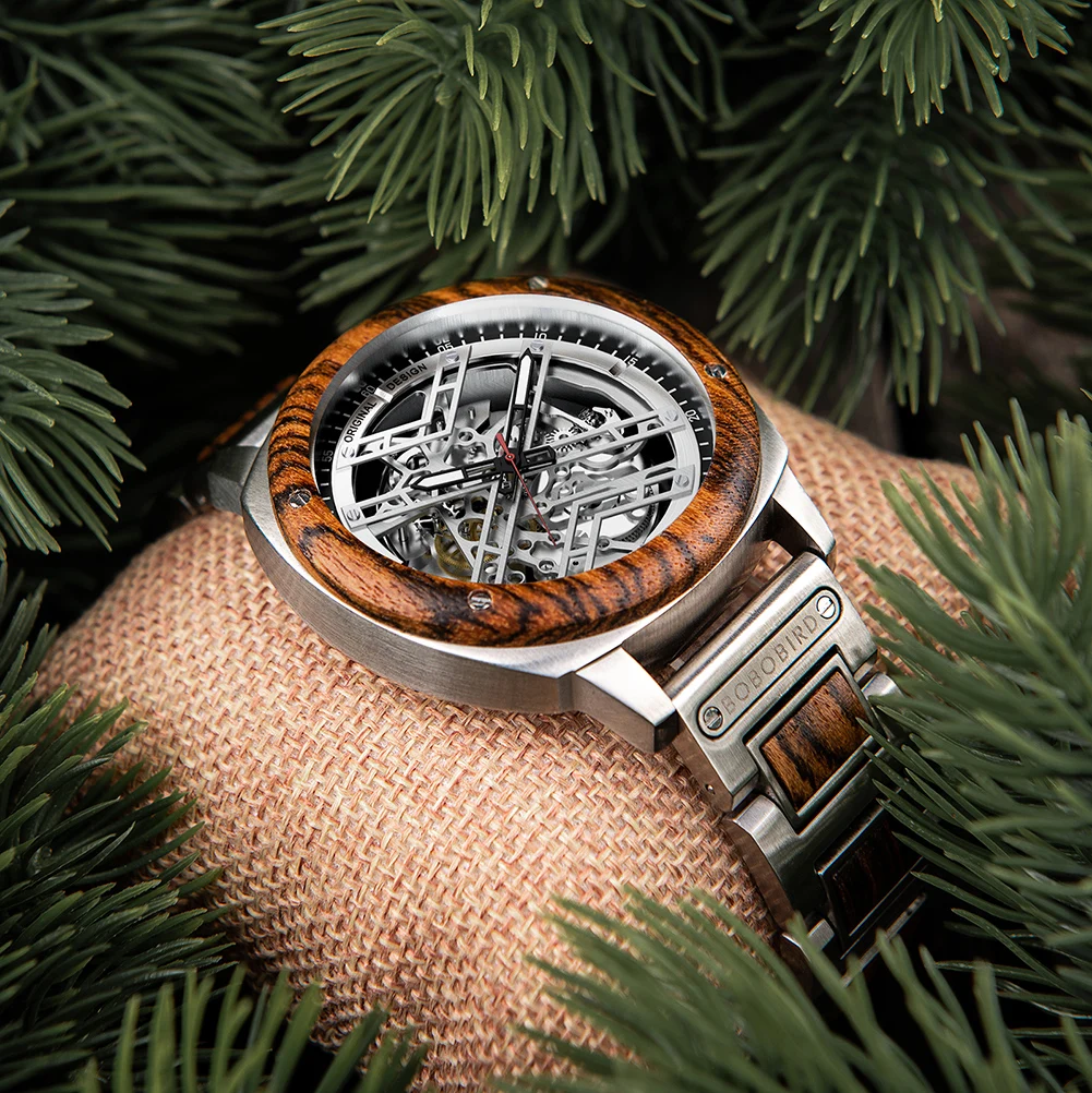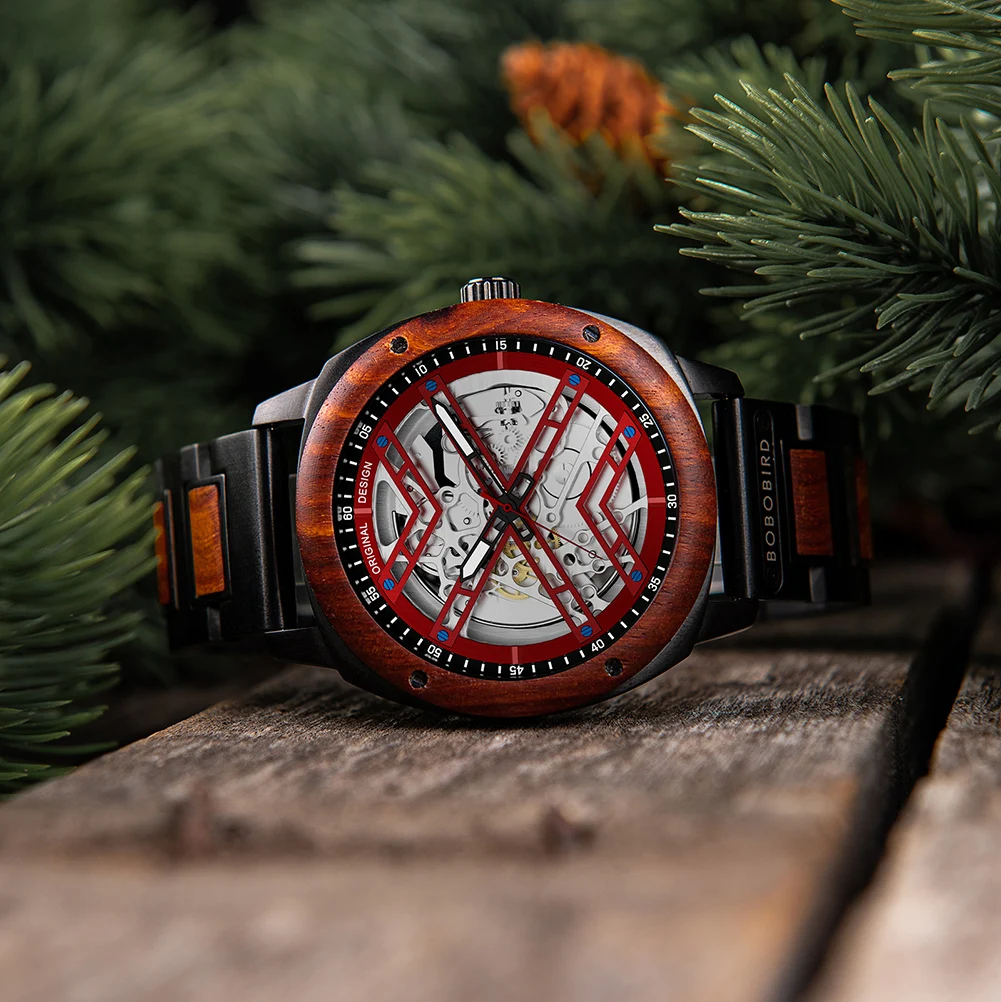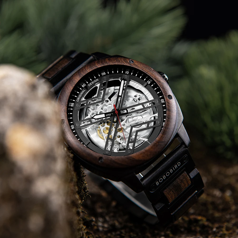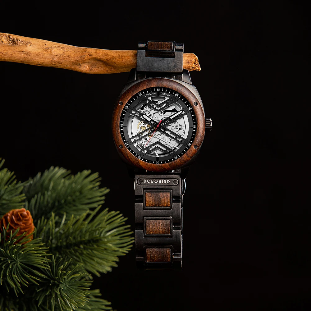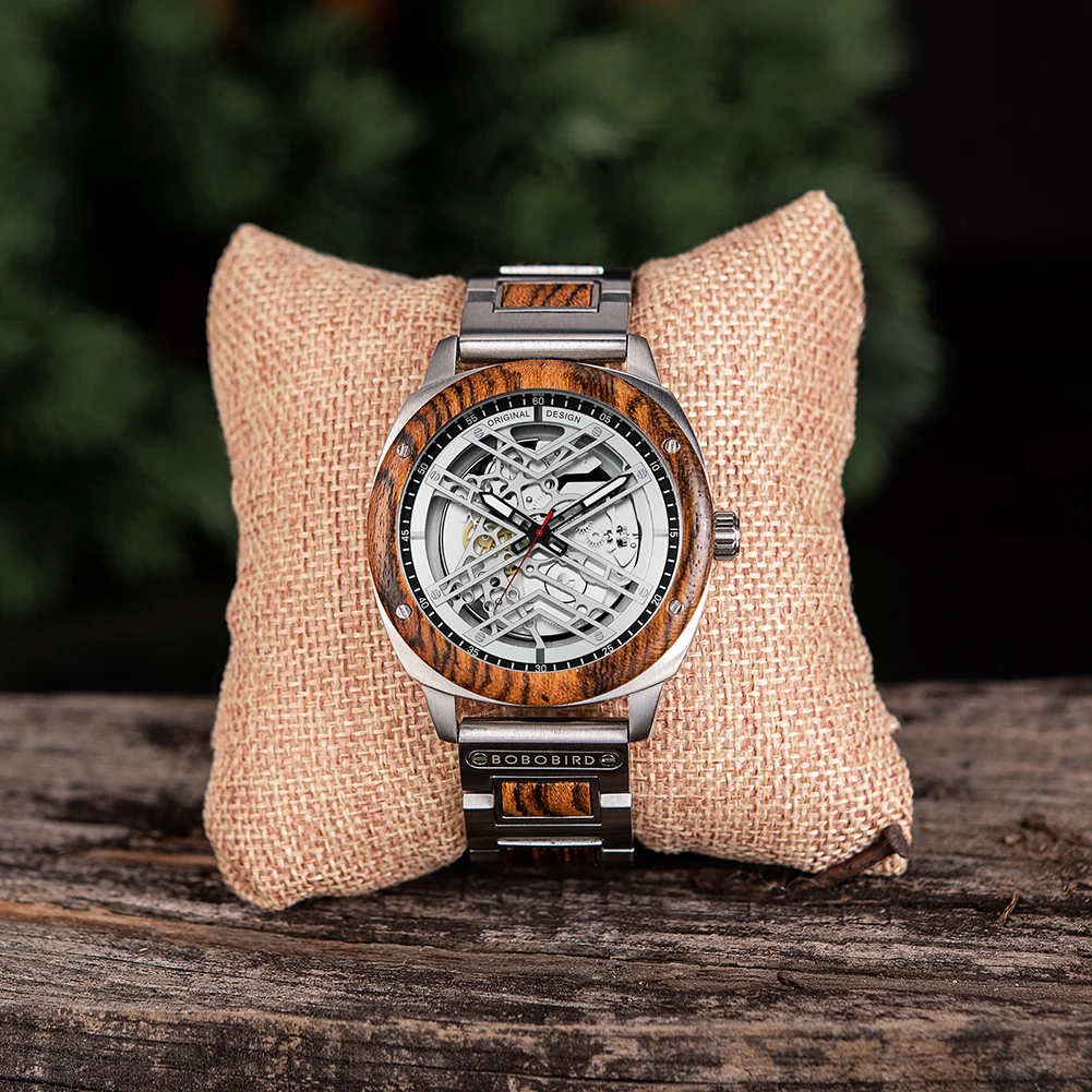 Men Watch BOBO BIRD Wooden Automatic Mechanical Watch Metal Wristwatch Top Fashion Business Clock Custom Gift Box reloj hombre