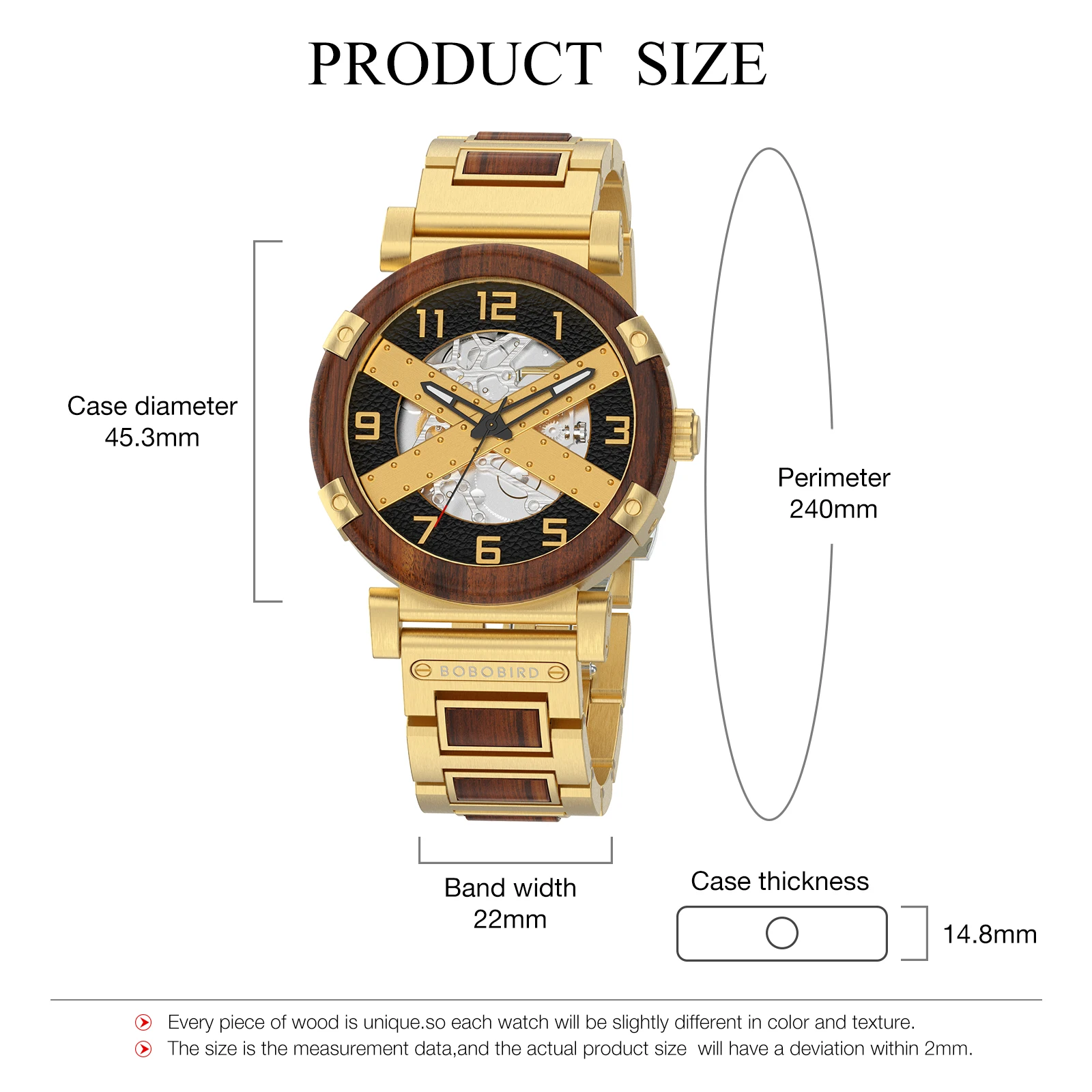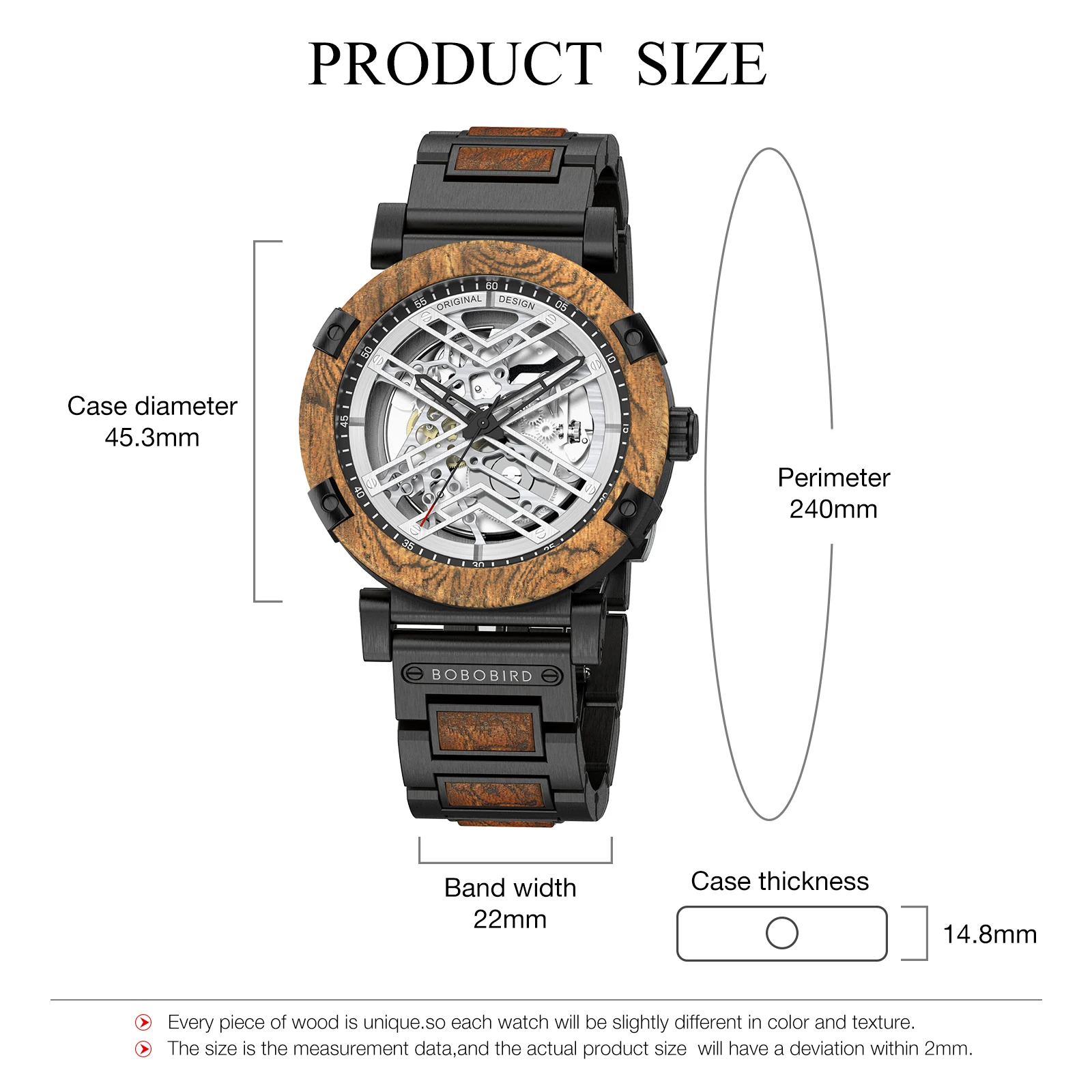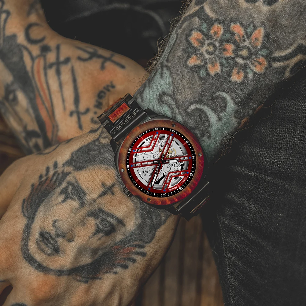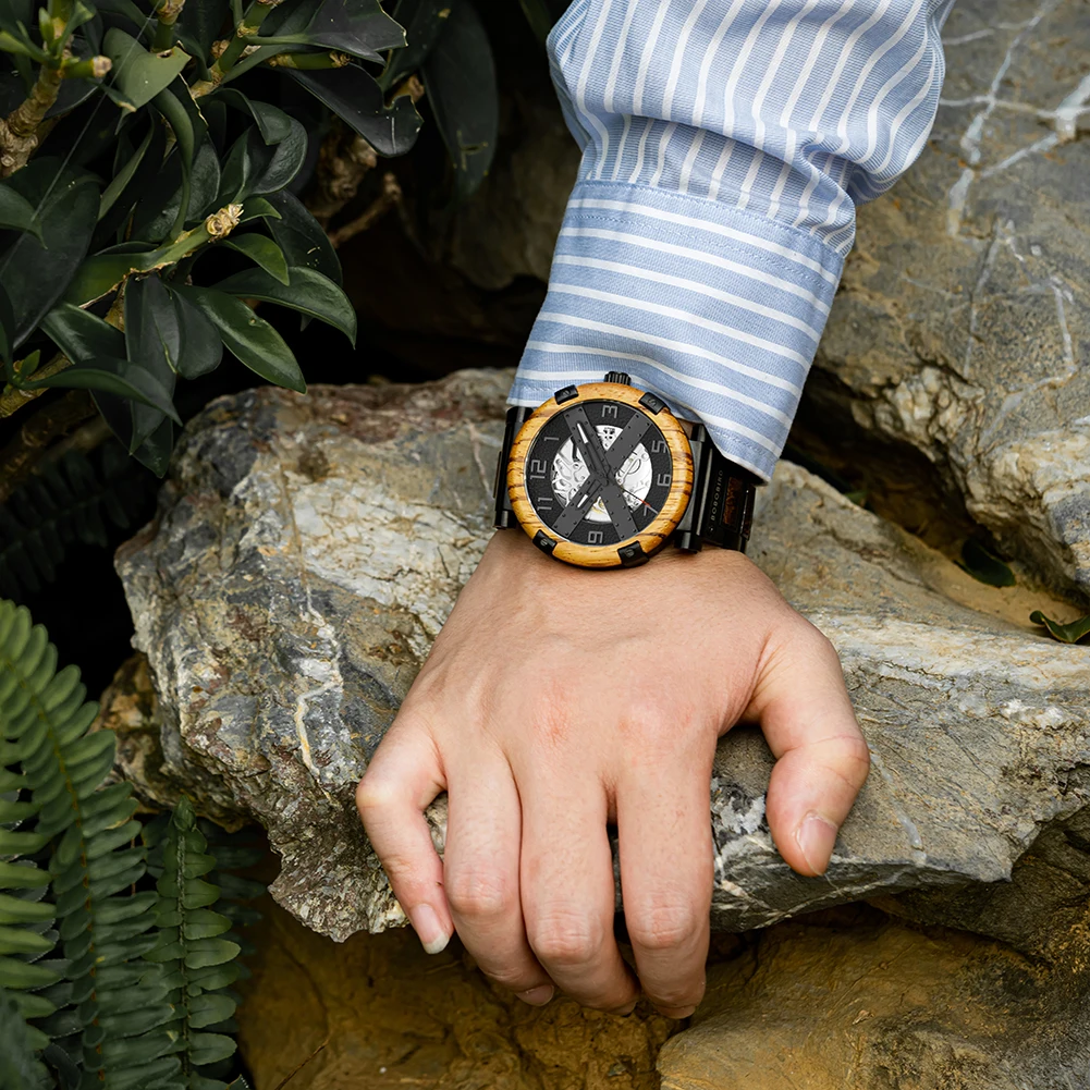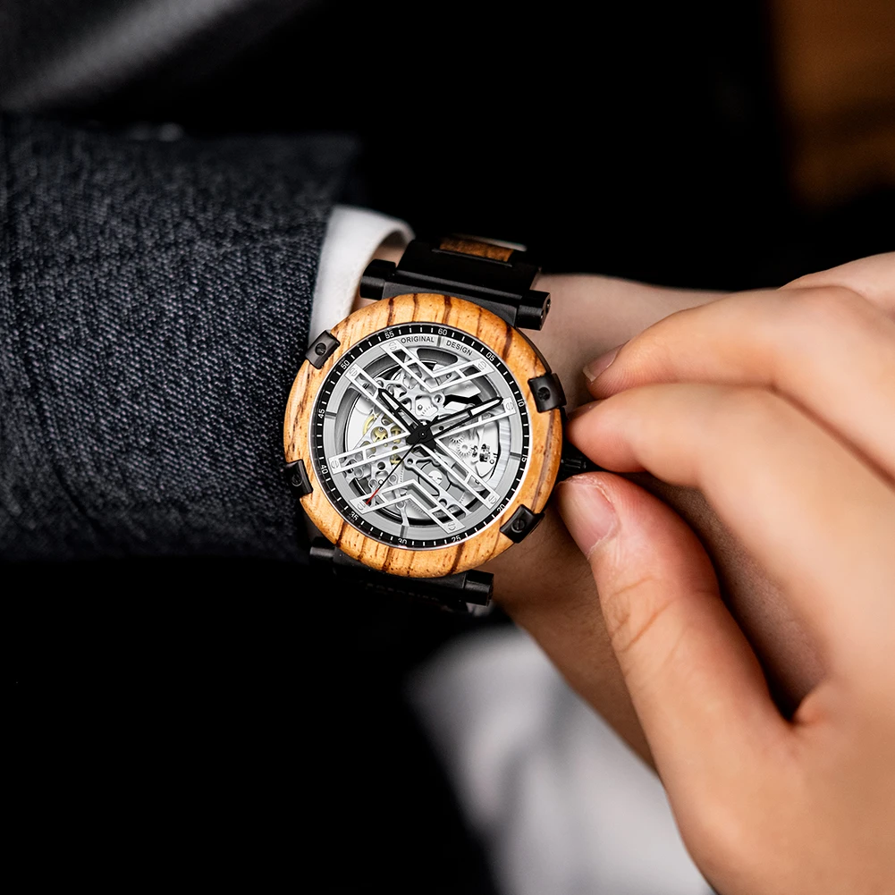 Men Watch BOBO BIRD Wooden Automatic Mechanical Watch Metal Wristwatch Top Fashion Business Clock Custom Gift Box reloj hombre