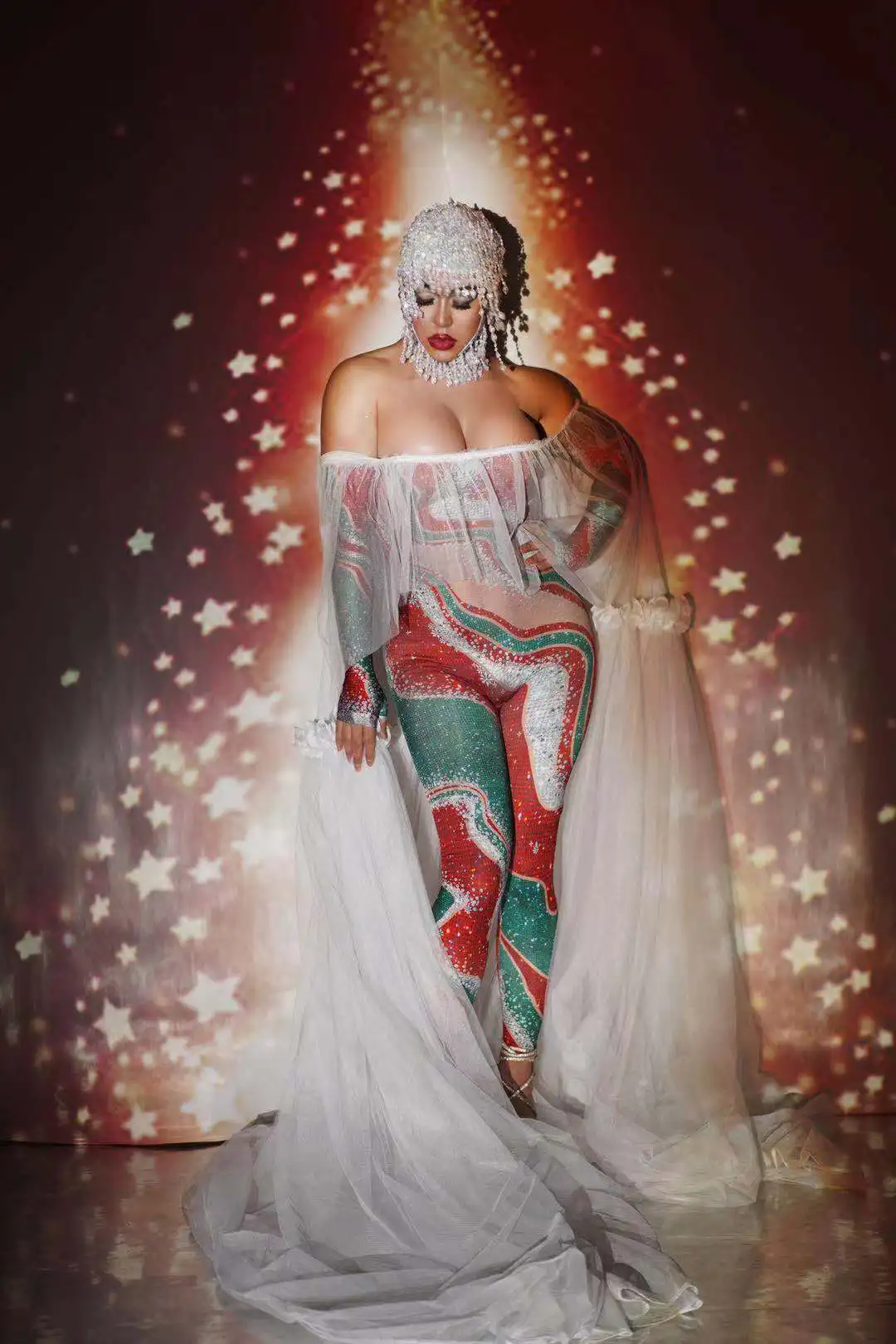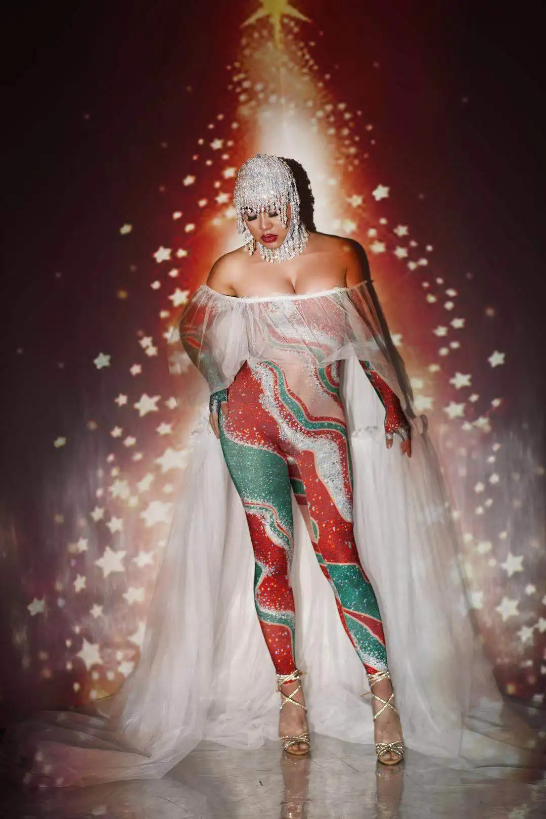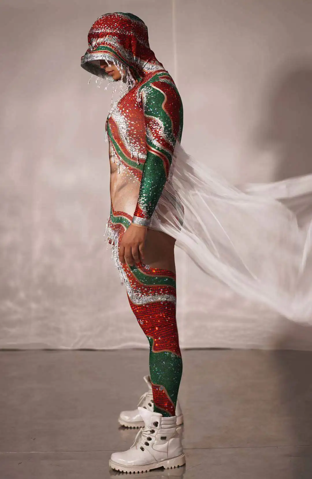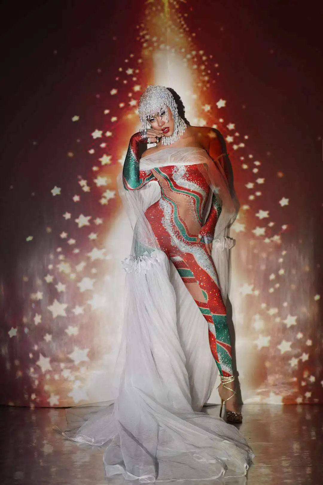 Men/Women Christmas Party Dress Up Jumpsuit Stage Performance Outfit Club Carnival Fancy Jumpsuit Christmas Eve Nightclub Prom