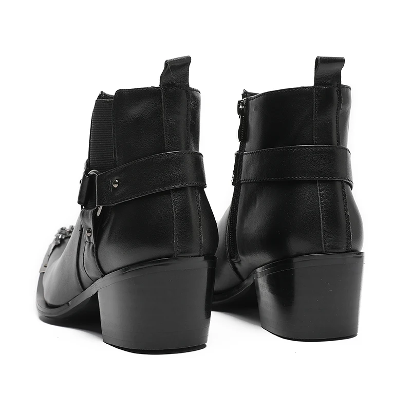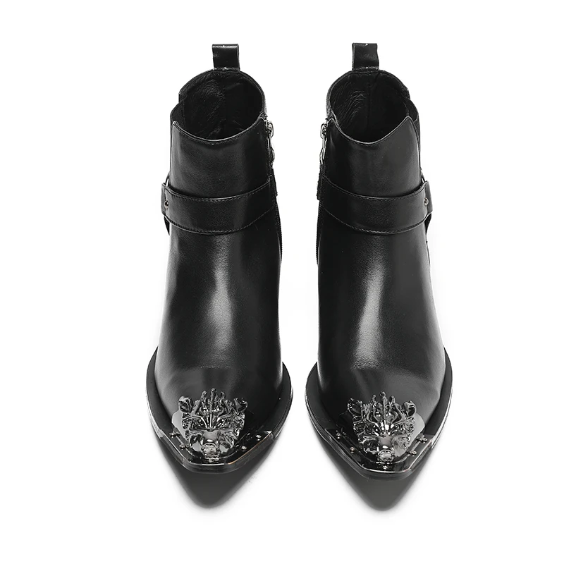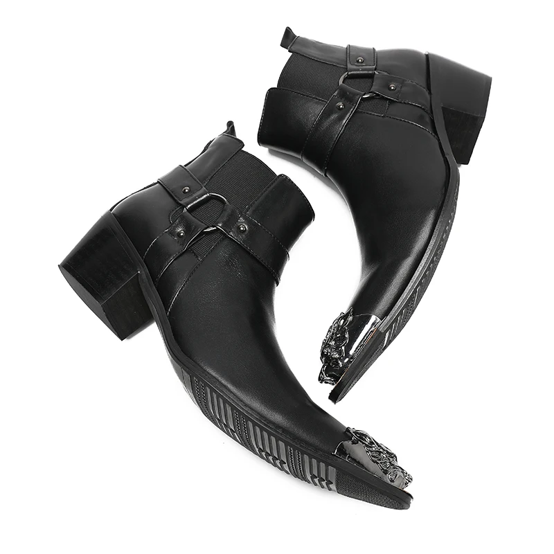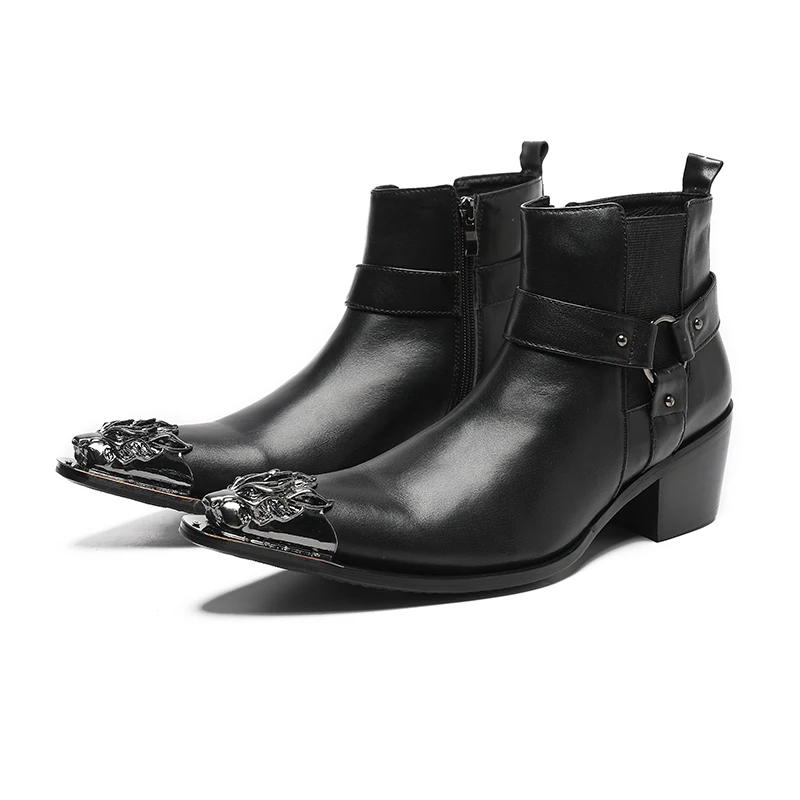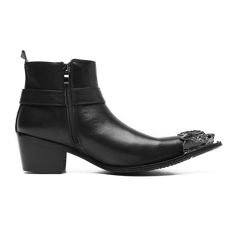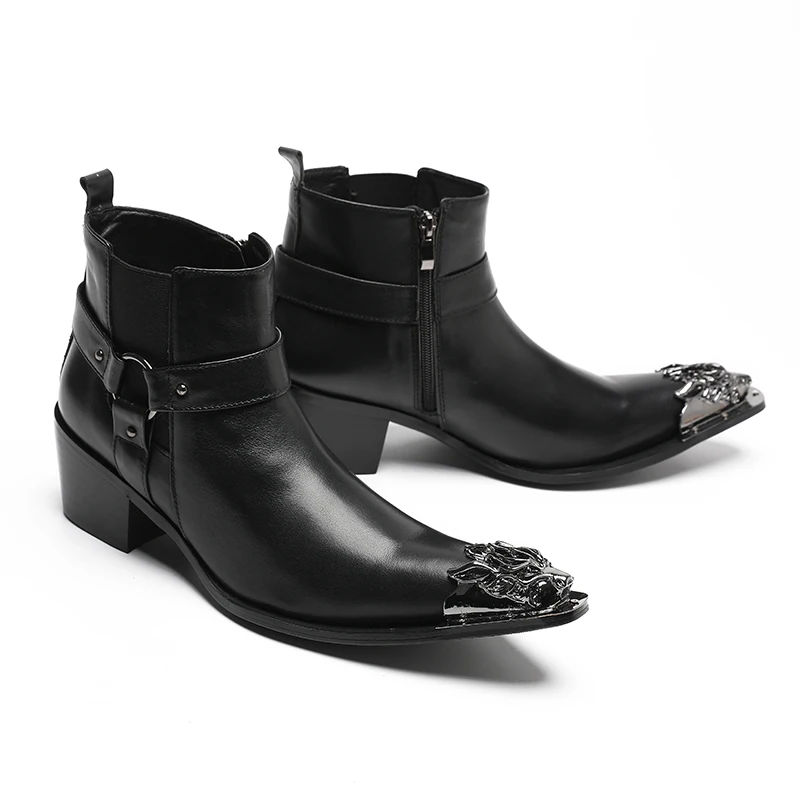 Men's Chelsea Boots with Metal Pointed Zipper Waterproof Shoe Buckle New Ankle Boots Party Leather Shoes