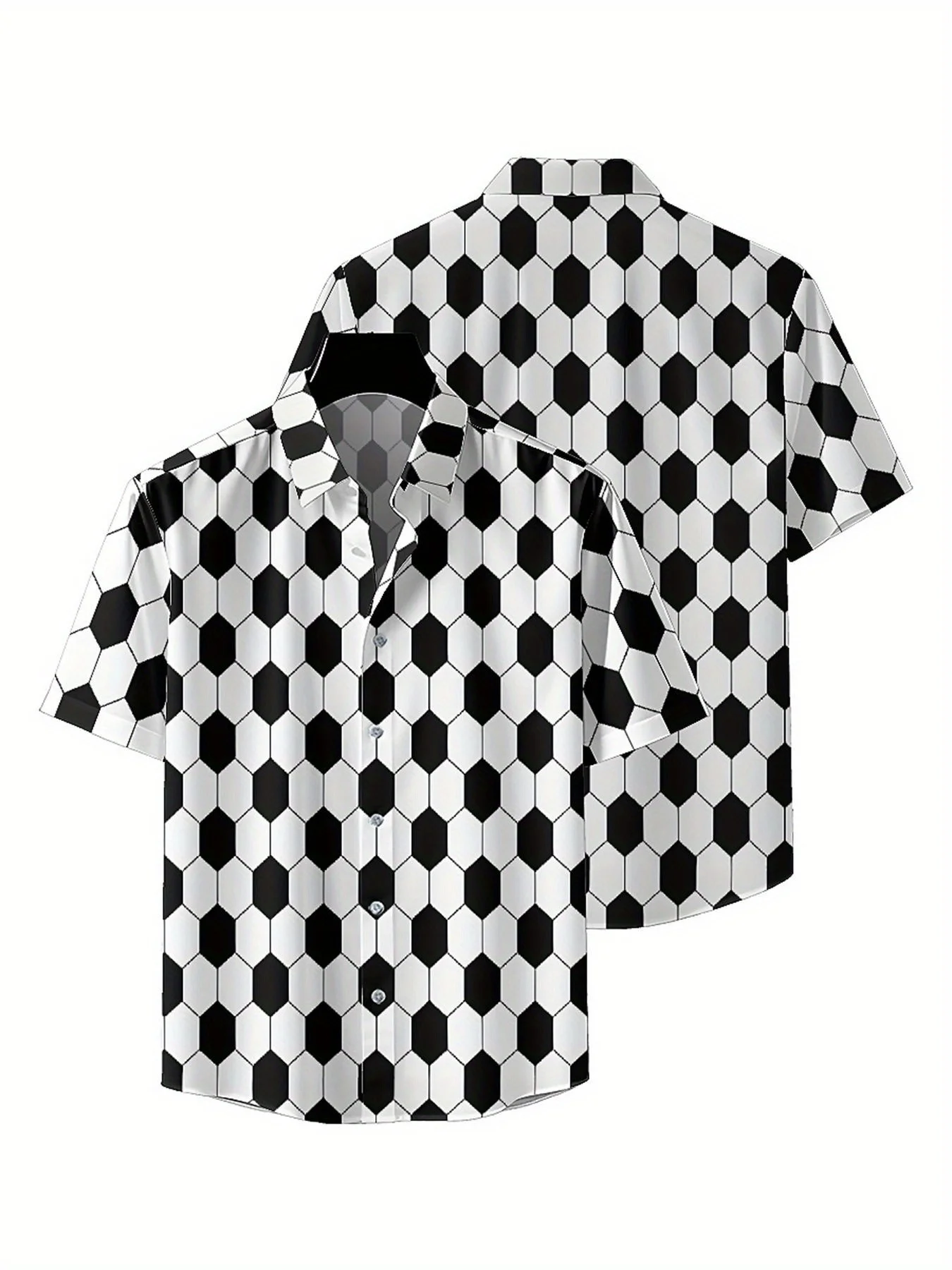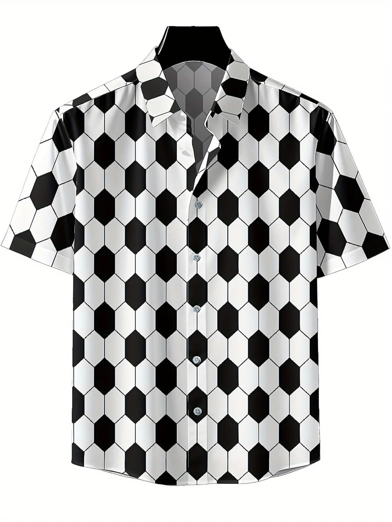 Men's Plus Size Hawaiian Shirts Classic Black and White Hexagons pattern, Unisex Aloha Shirts,New in Summer Tops Tee,streetwear