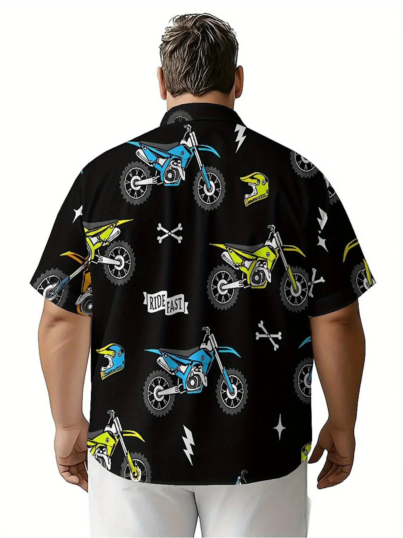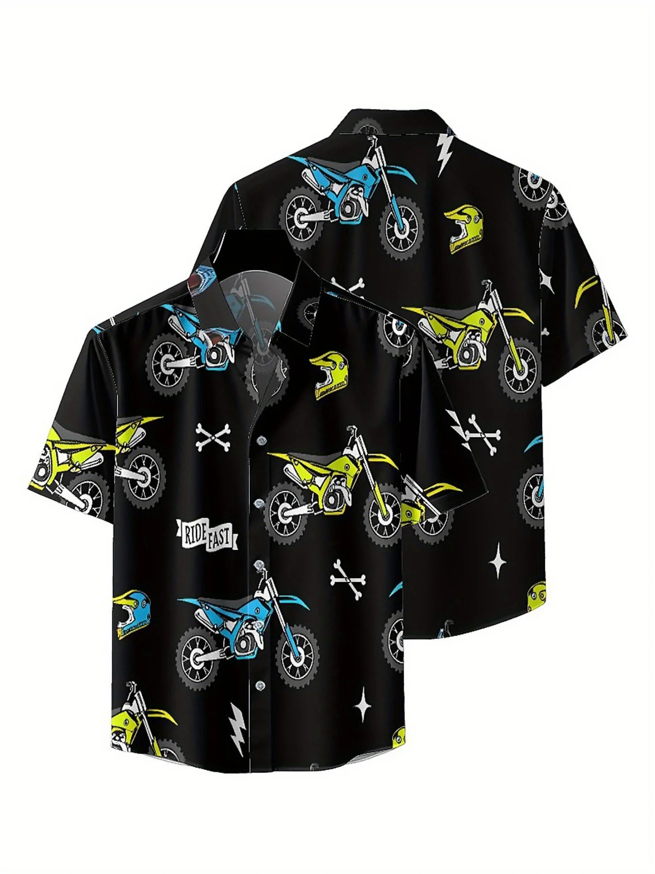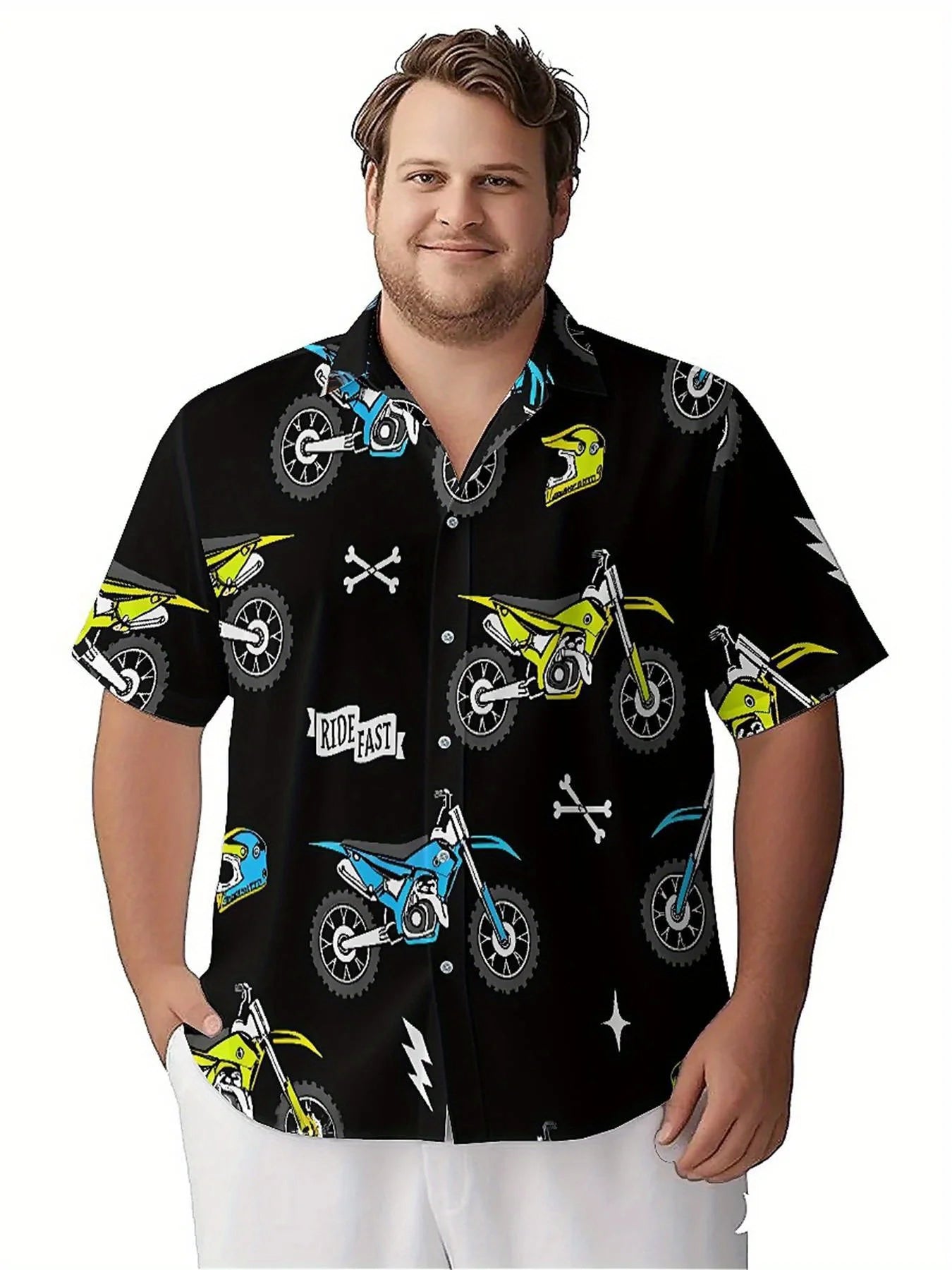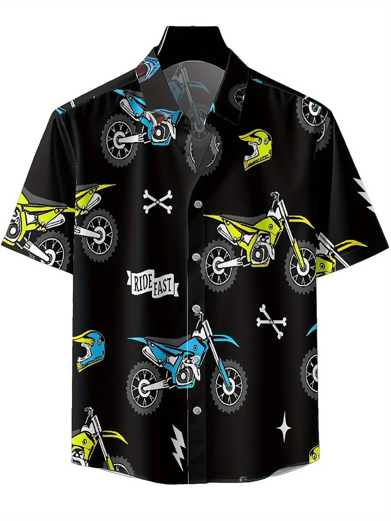 Men's Plus Size Hawaiian Shirts Motocross Theme pattern,New in Summer Fashion Tops,Hip Hop Rock Streetwear