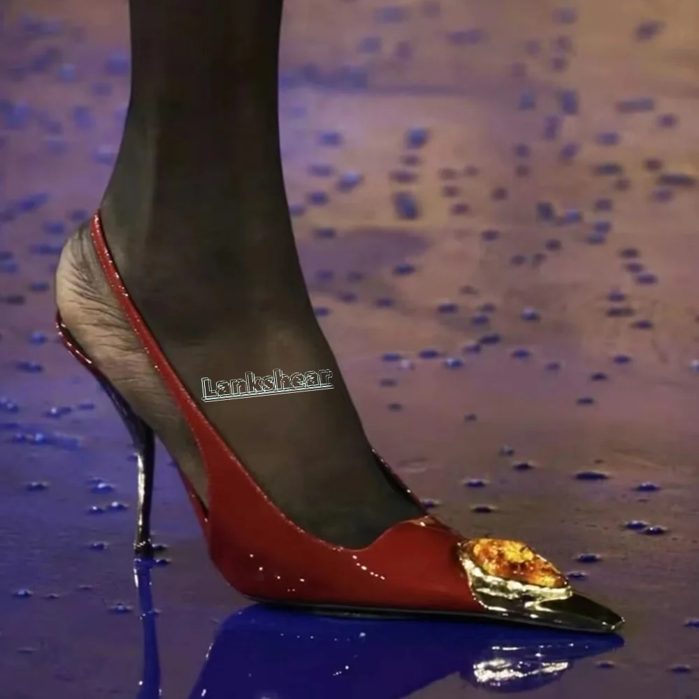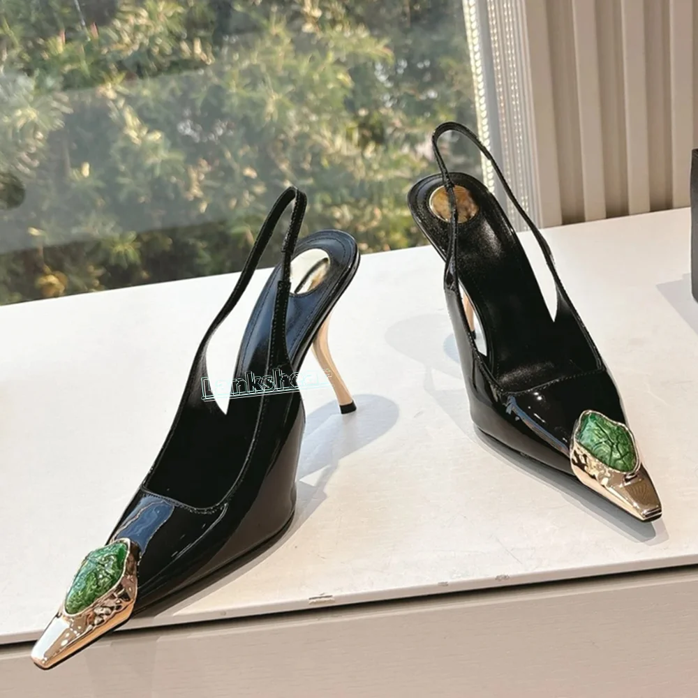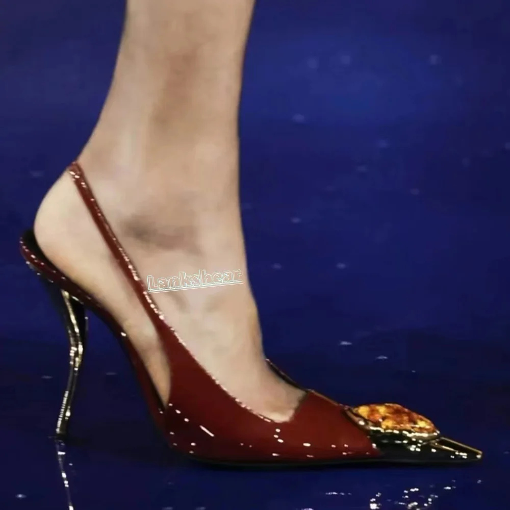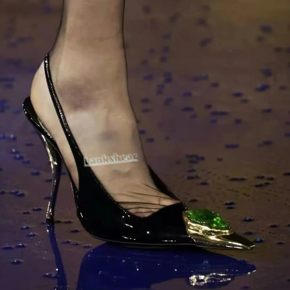 Metal Rhinestone Pointed Toe Women Sandals Gold Strange Heels Stilettos Slingback Sexy Summer Women Shoes Sexy Catwalk Dress
