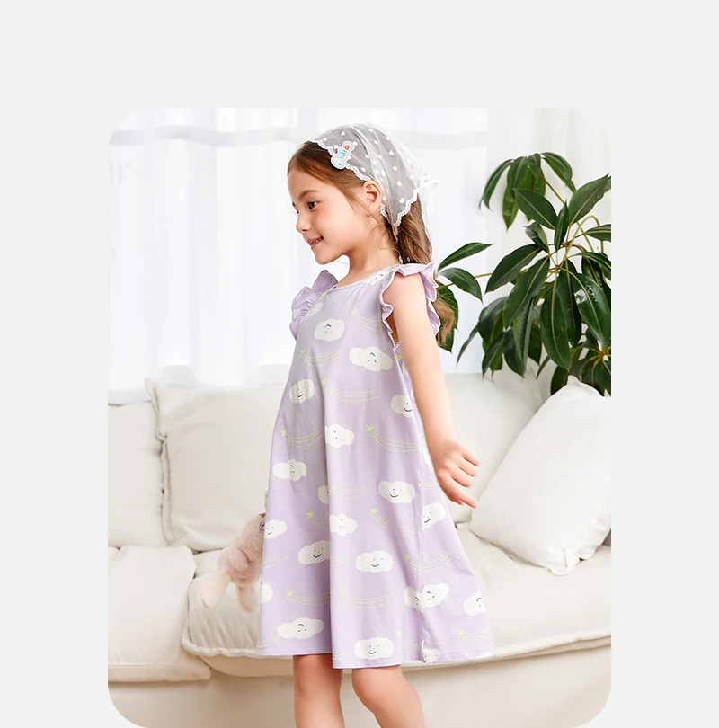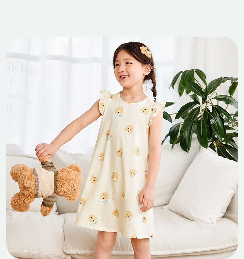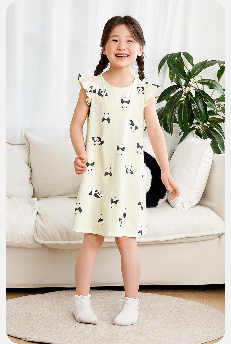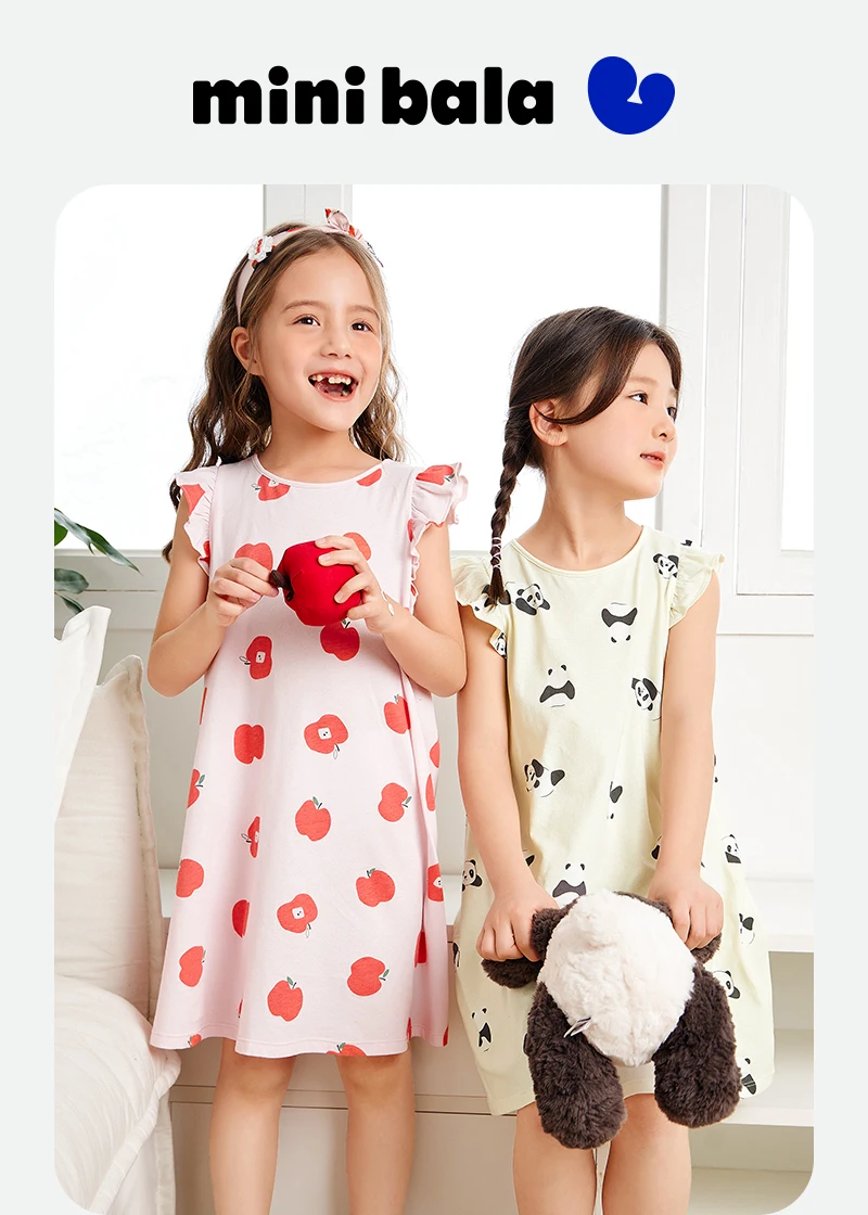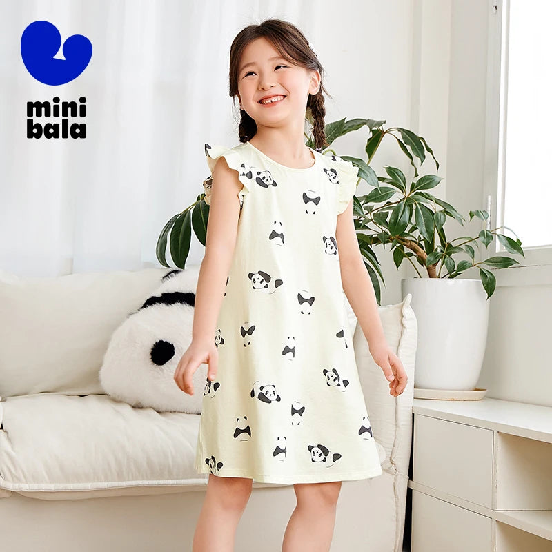 Mini Bala Summer New Kids Sweat-Absorbing Comfortable Nightgown Breathable Pure Cotton Girls Home Dress
