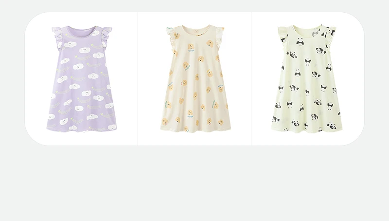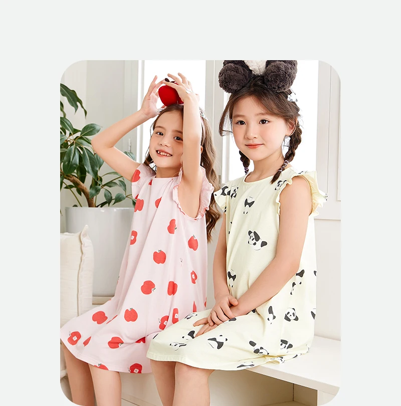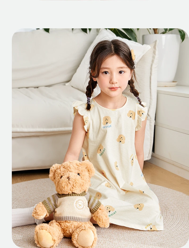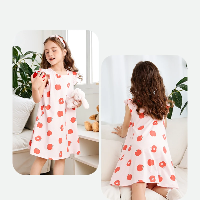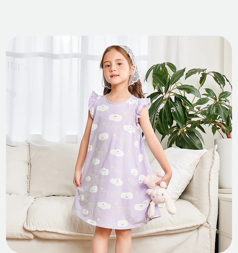 Mini Bala Summer New Kids Sweat-Absorbing Comfortable Nightgown Breathable Pure Cotton Girls Home Dress