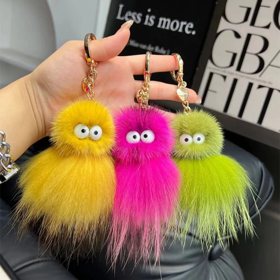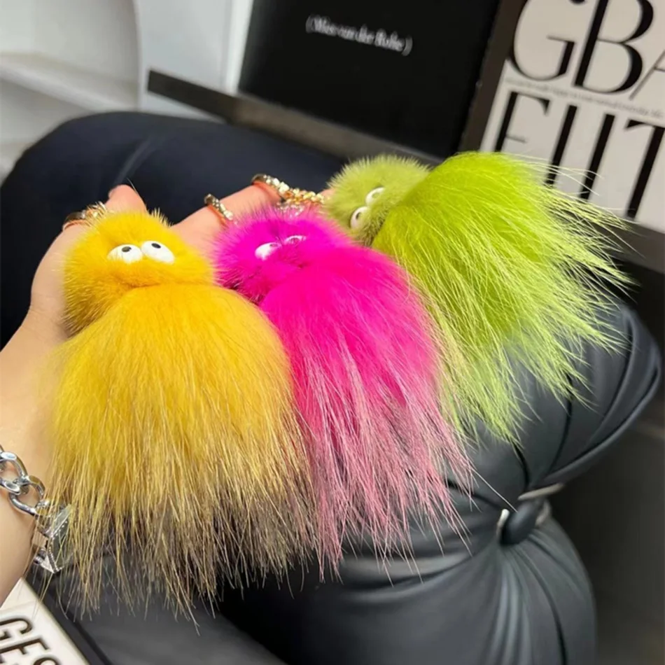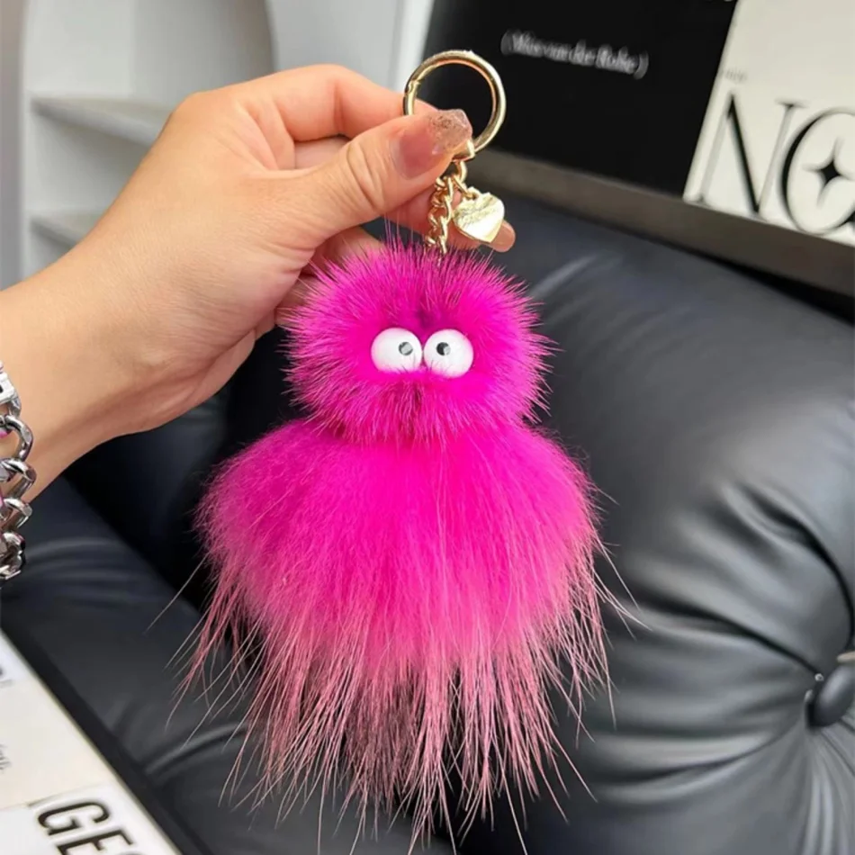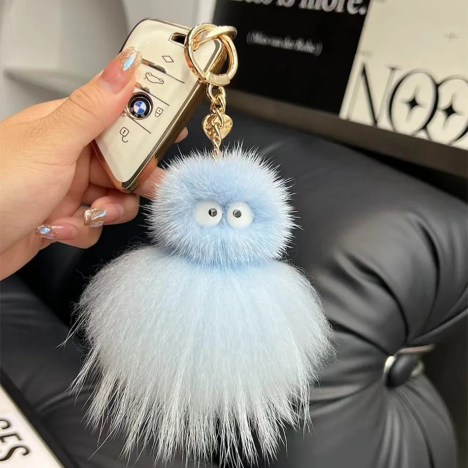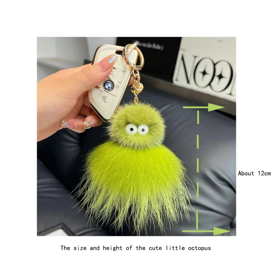 Mink Baby Octopus Keychain Furry Racoon Keyring Bag Charms Keychain For Bags 12CM Key-Pendant Pompoms Keyring Holder Bag Decor