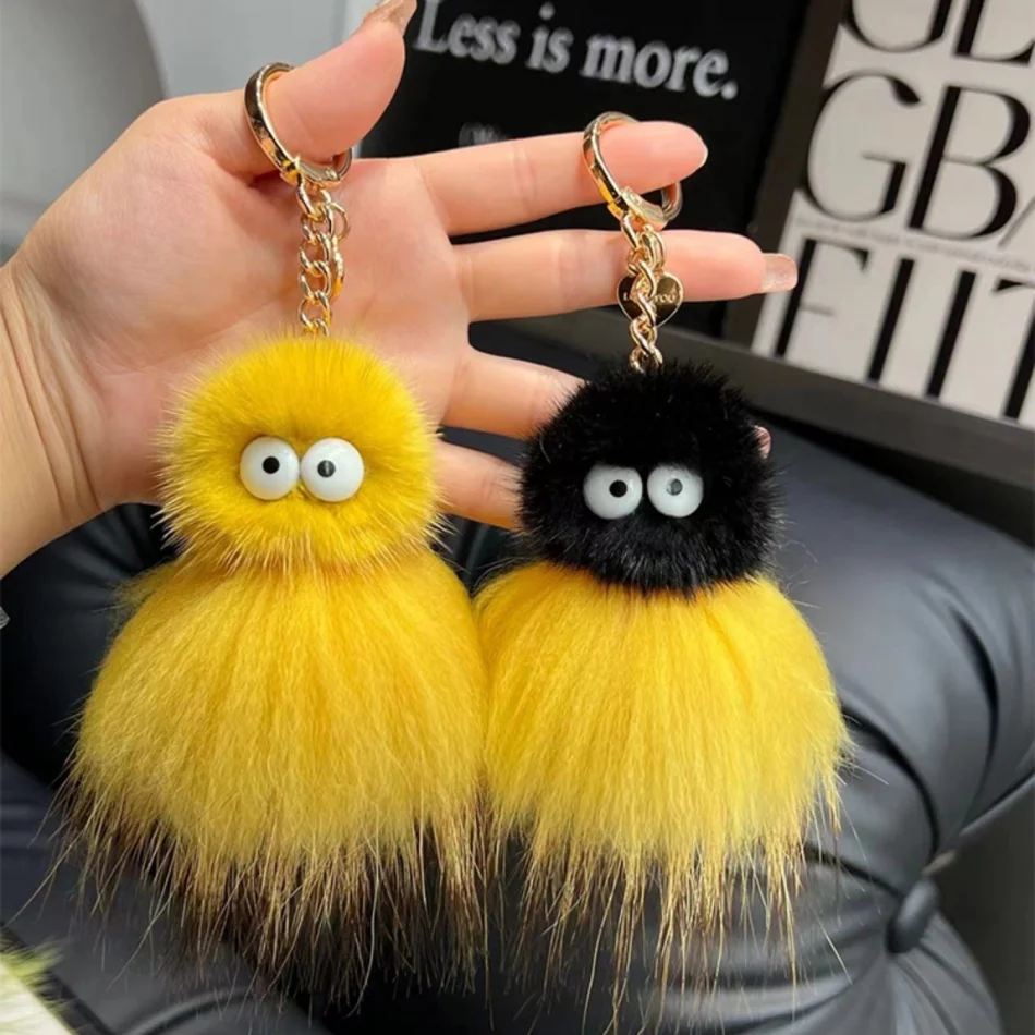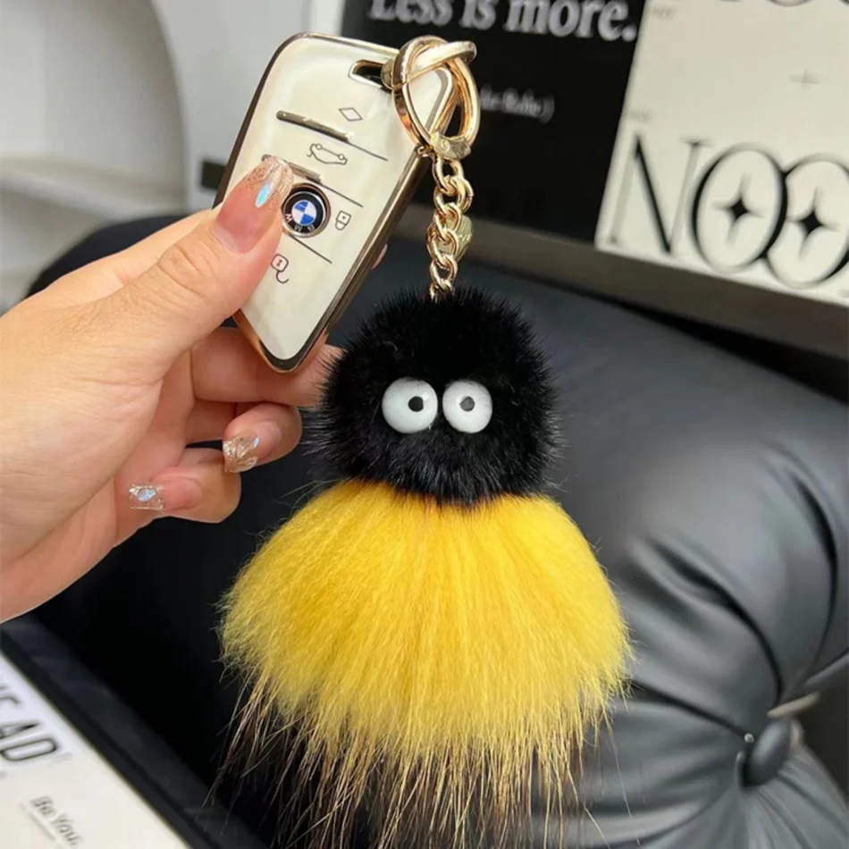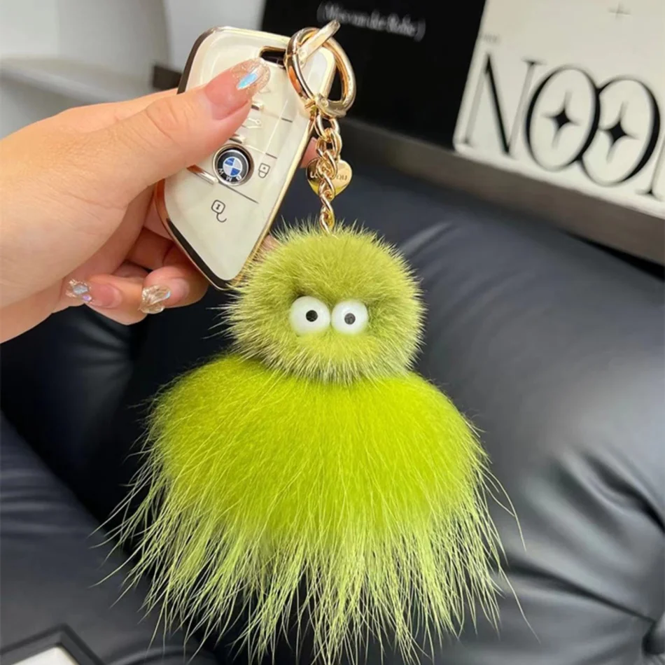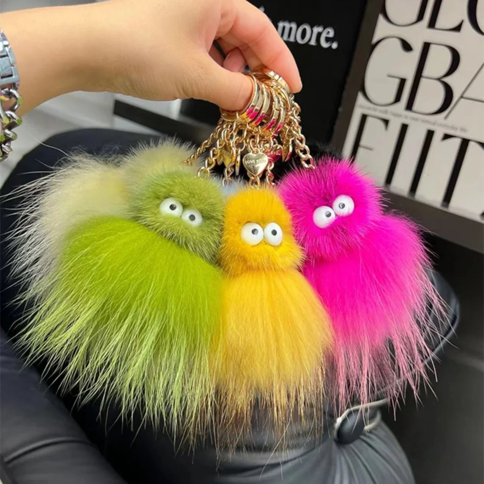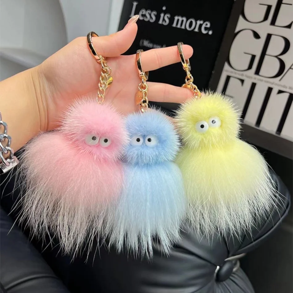 Mink Baby Octopus Keychain Furry Racoon Keyring Bag Charms Keychain For Bags 12CM Key-Pendant Pompoms Keyring Holder Bag Decor
