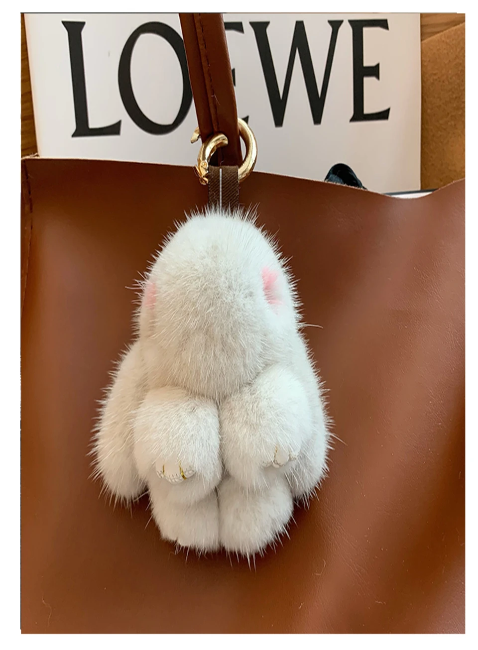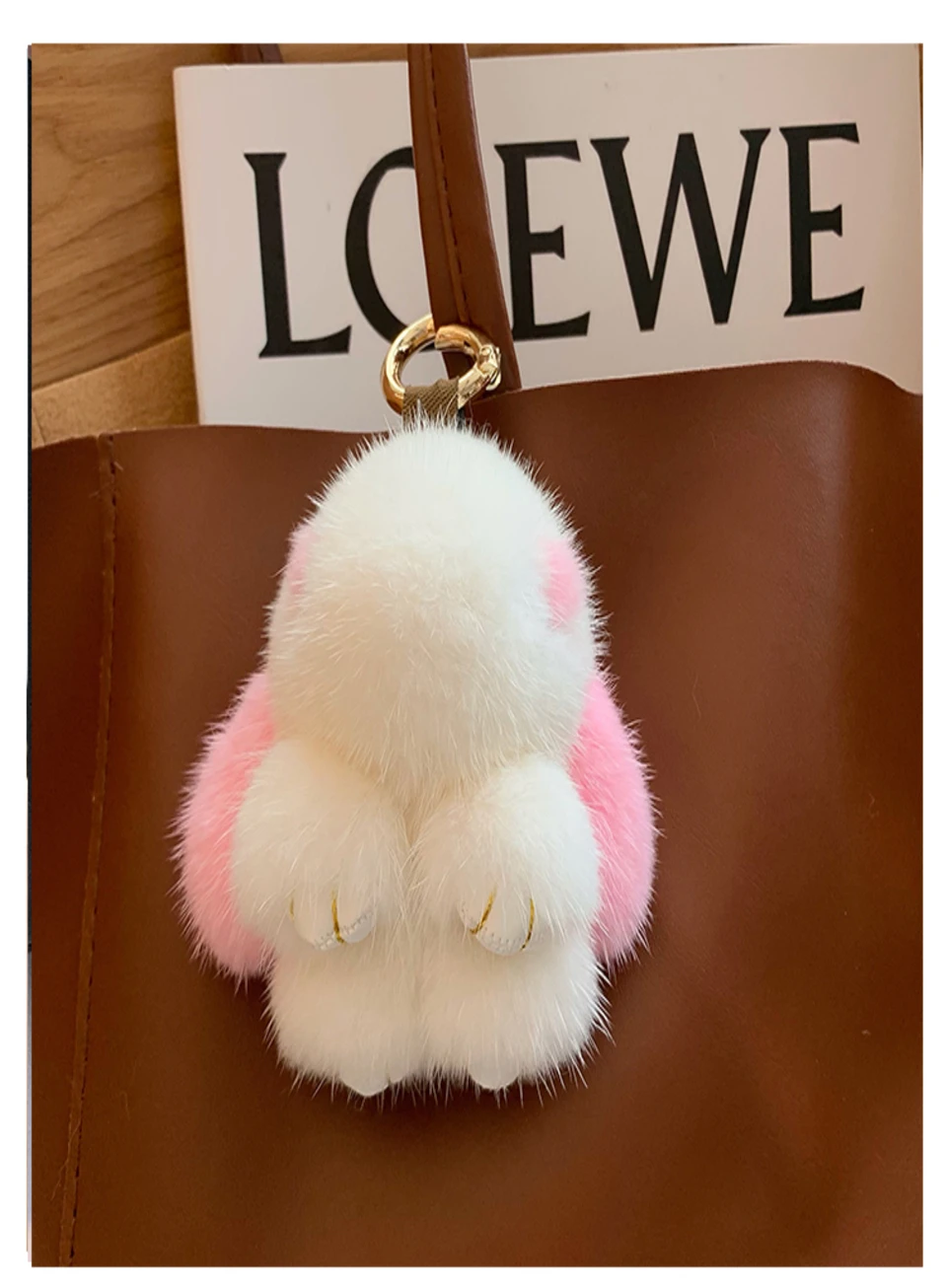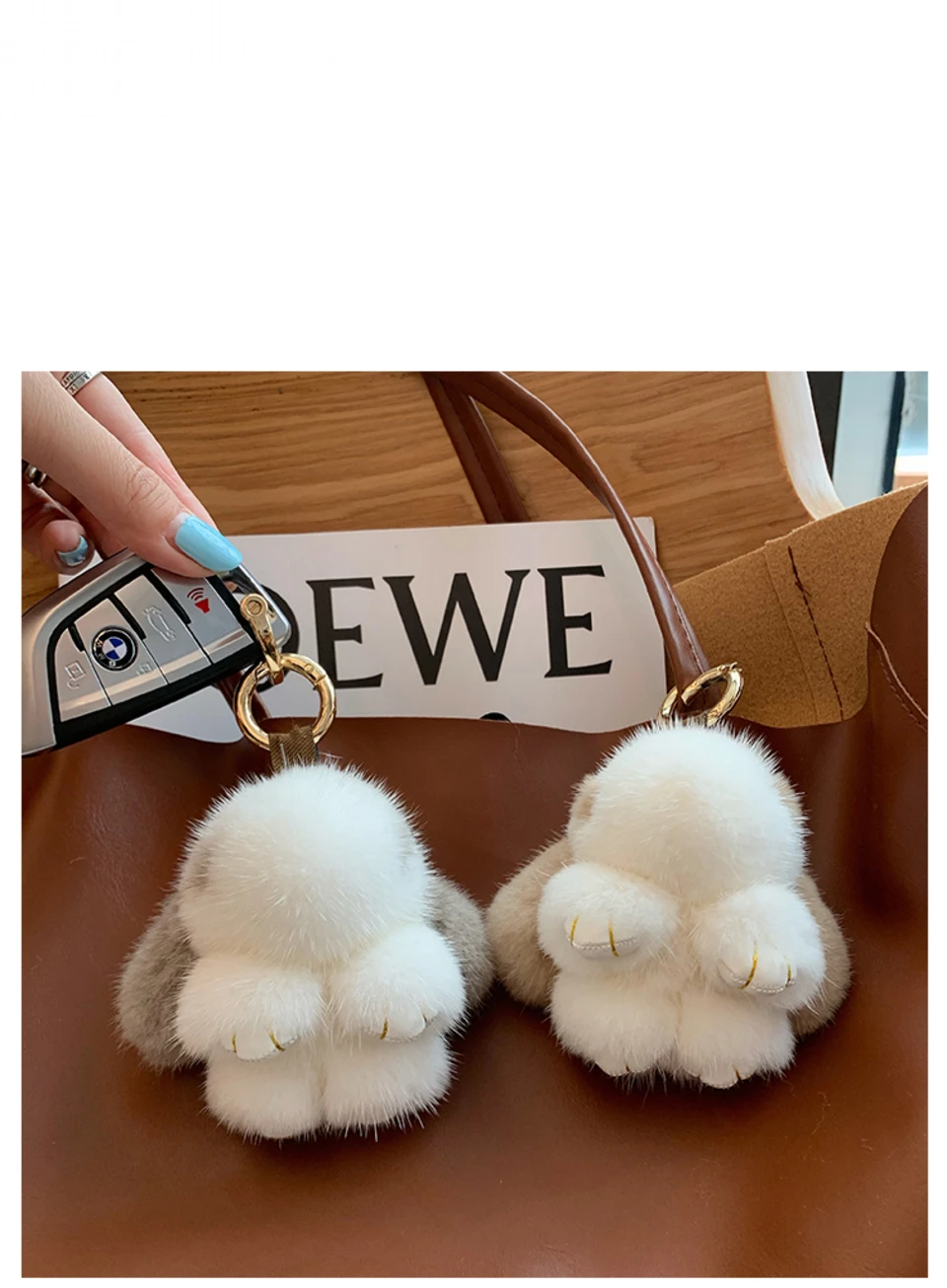 Mink Bunny Keychain Pompon Keyring Bunny For Women Bag Charms Car Key Chain Cute Rabbit Key Ring On Bag Car Trinket Pendant Gift