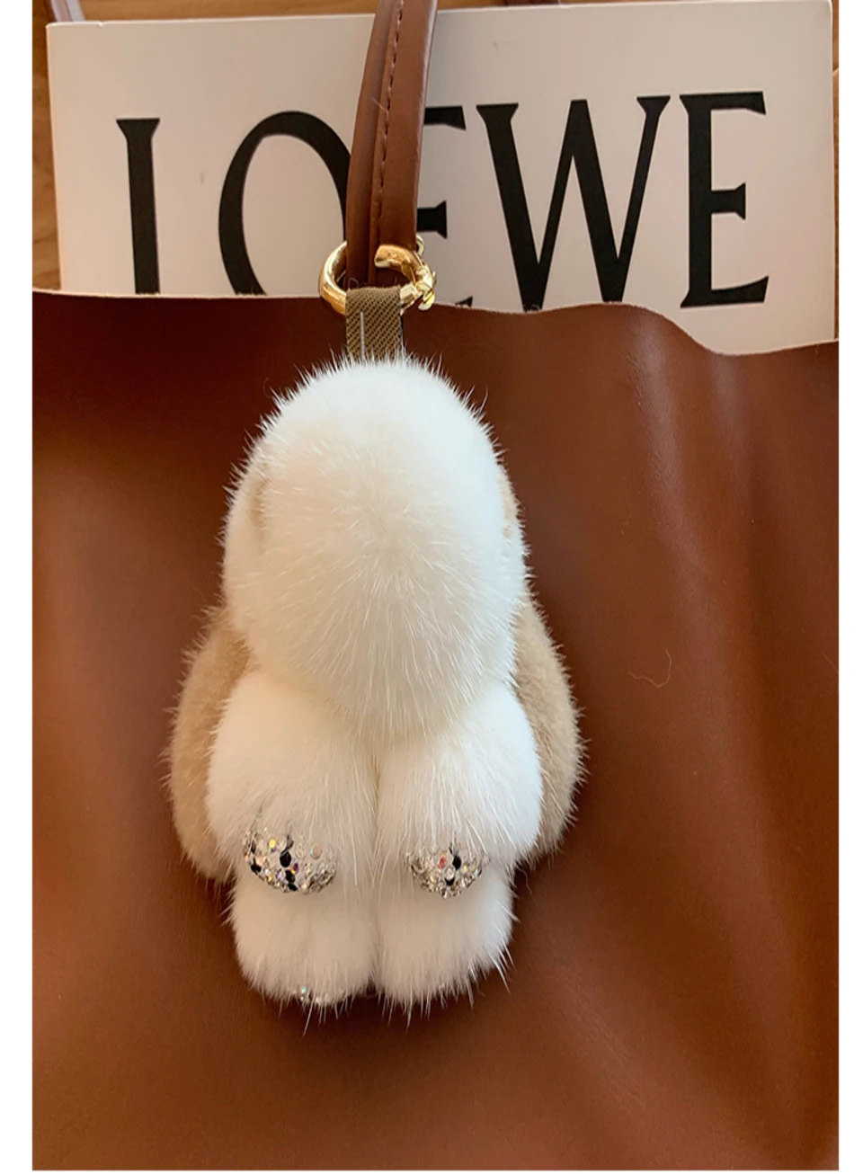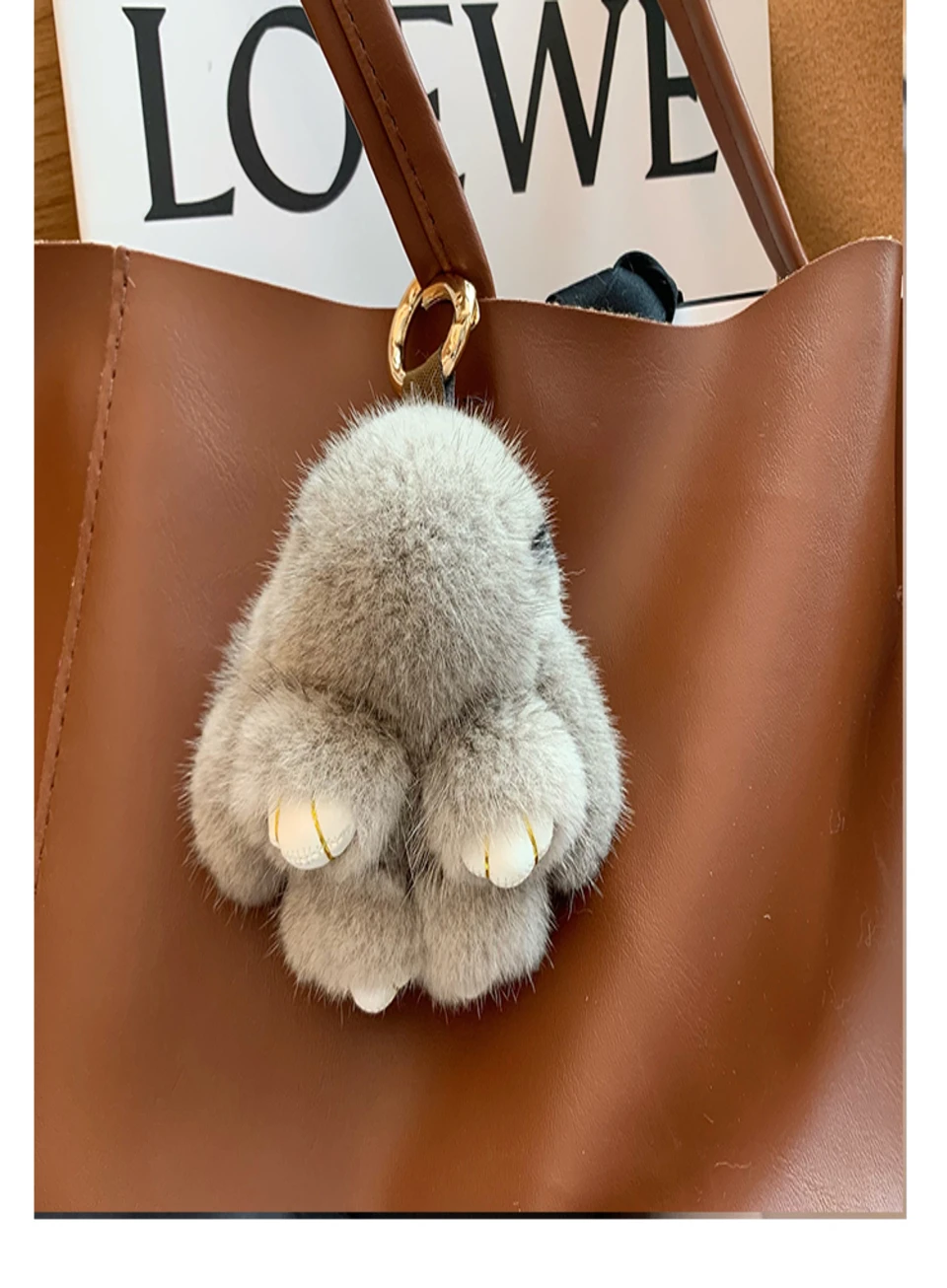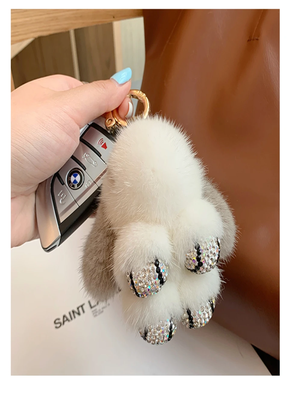 Mink Bunny Keychain Pompon Keyring Bunny For Women Bag Charms Car Key Chain Cute Rabbit Key Ring On Bag Car Trinket Pendant Gift