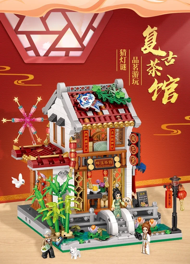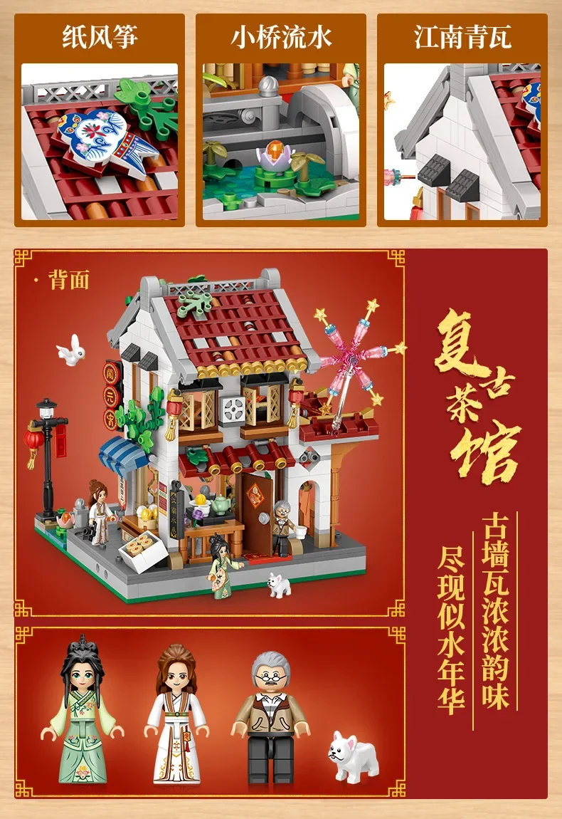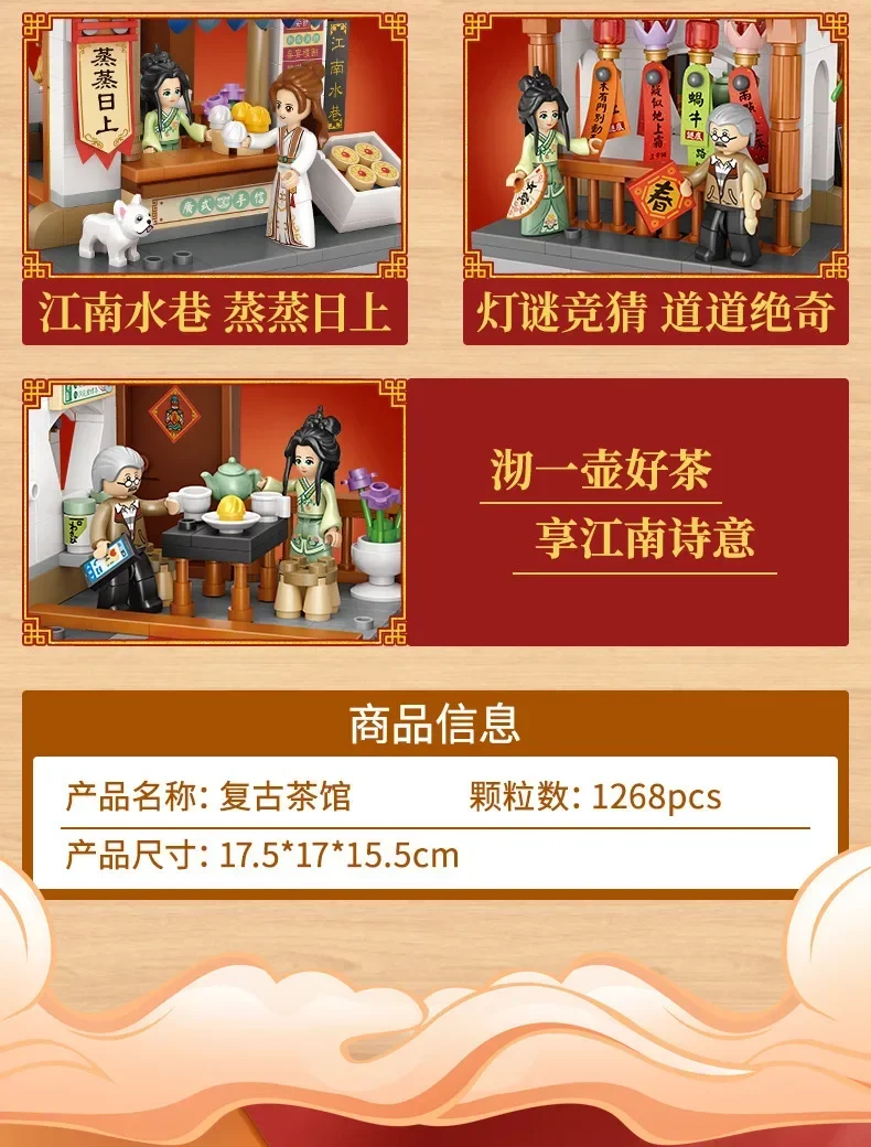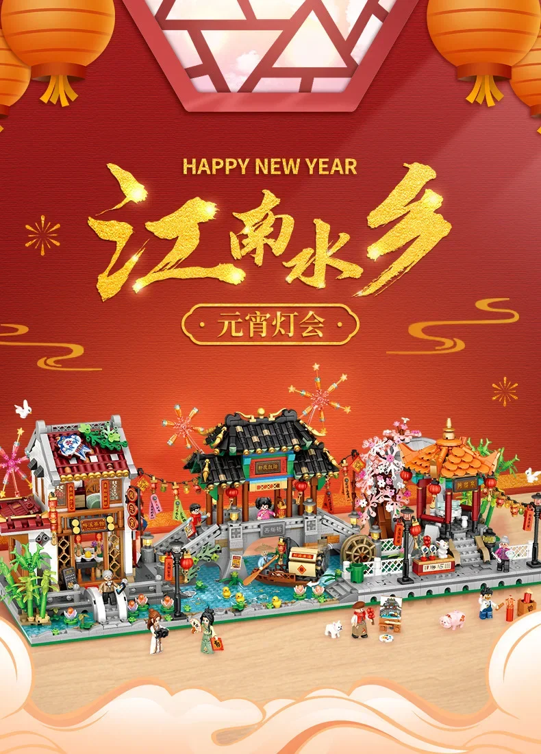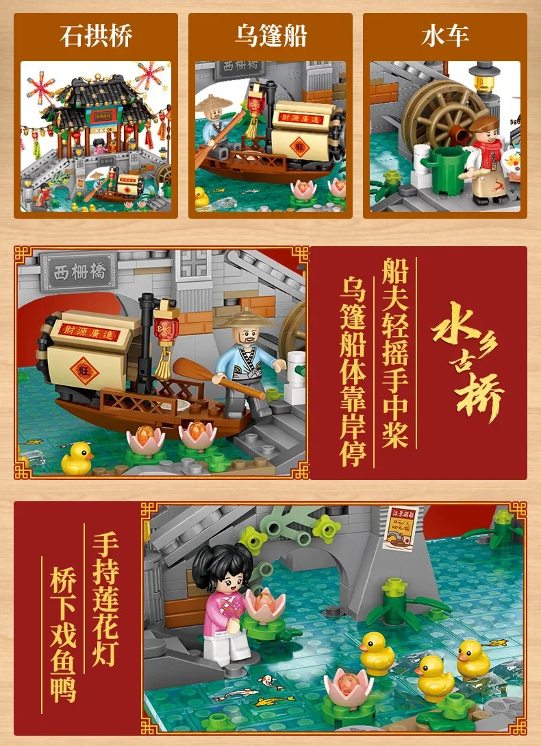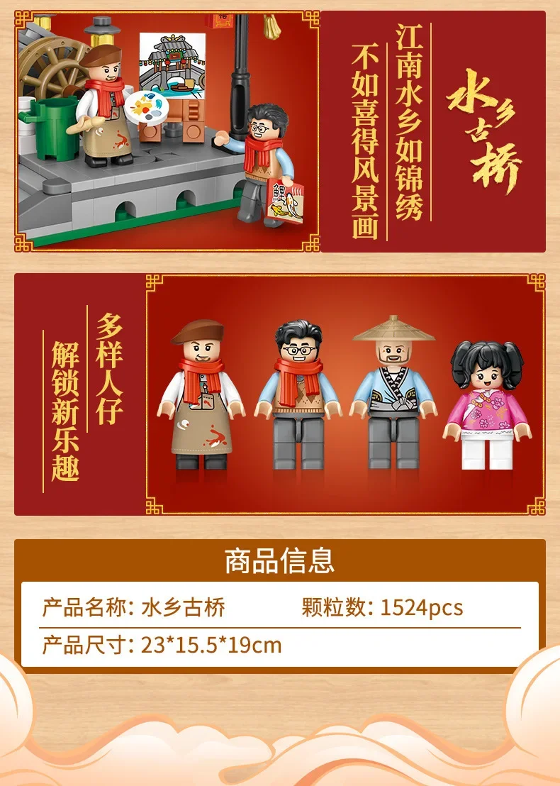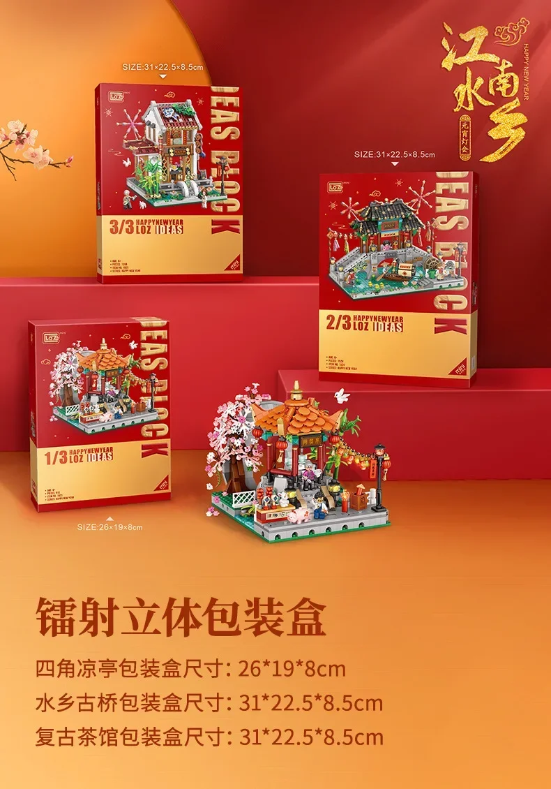 MOC LOZ small particle building blocks Jiangnan water town four corner Pavilion assembled toy gift