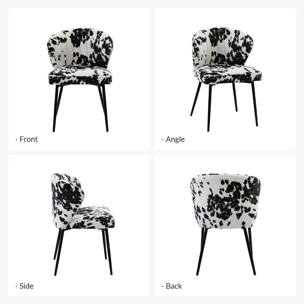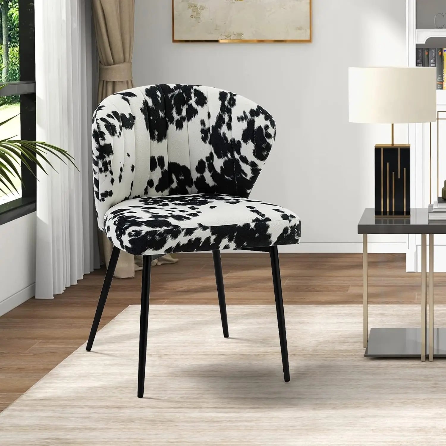 Modern Dining Chairs, Small Cute Armless Accent Chair, Upholstered Side Chair with Black Metal Legs, Tufted Back Vanity Chair fo