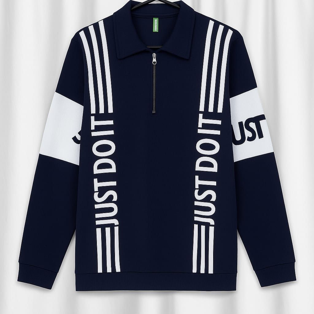 Navy Zip Polo Sweatshirt | "Just Do It" Stripes (Size-S)