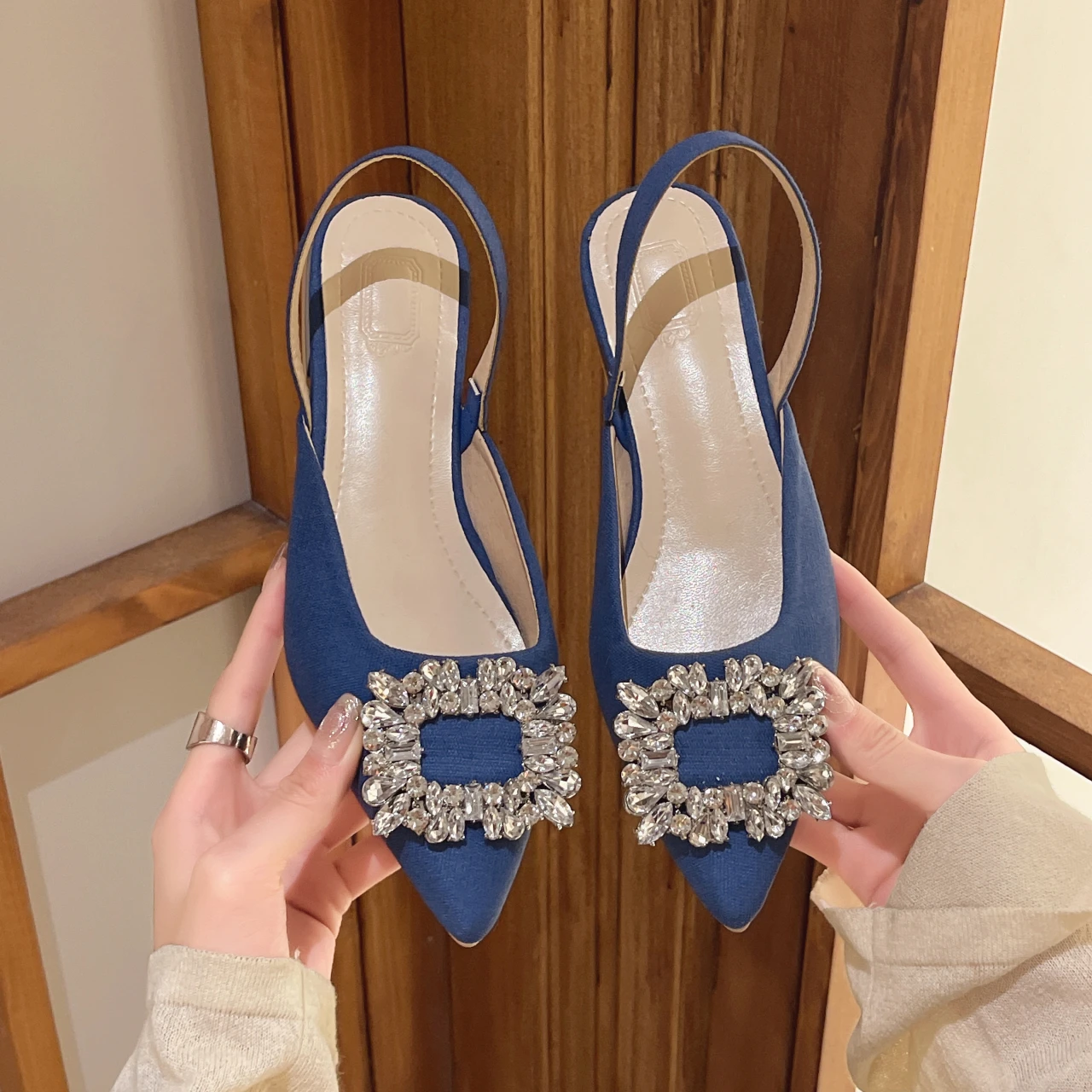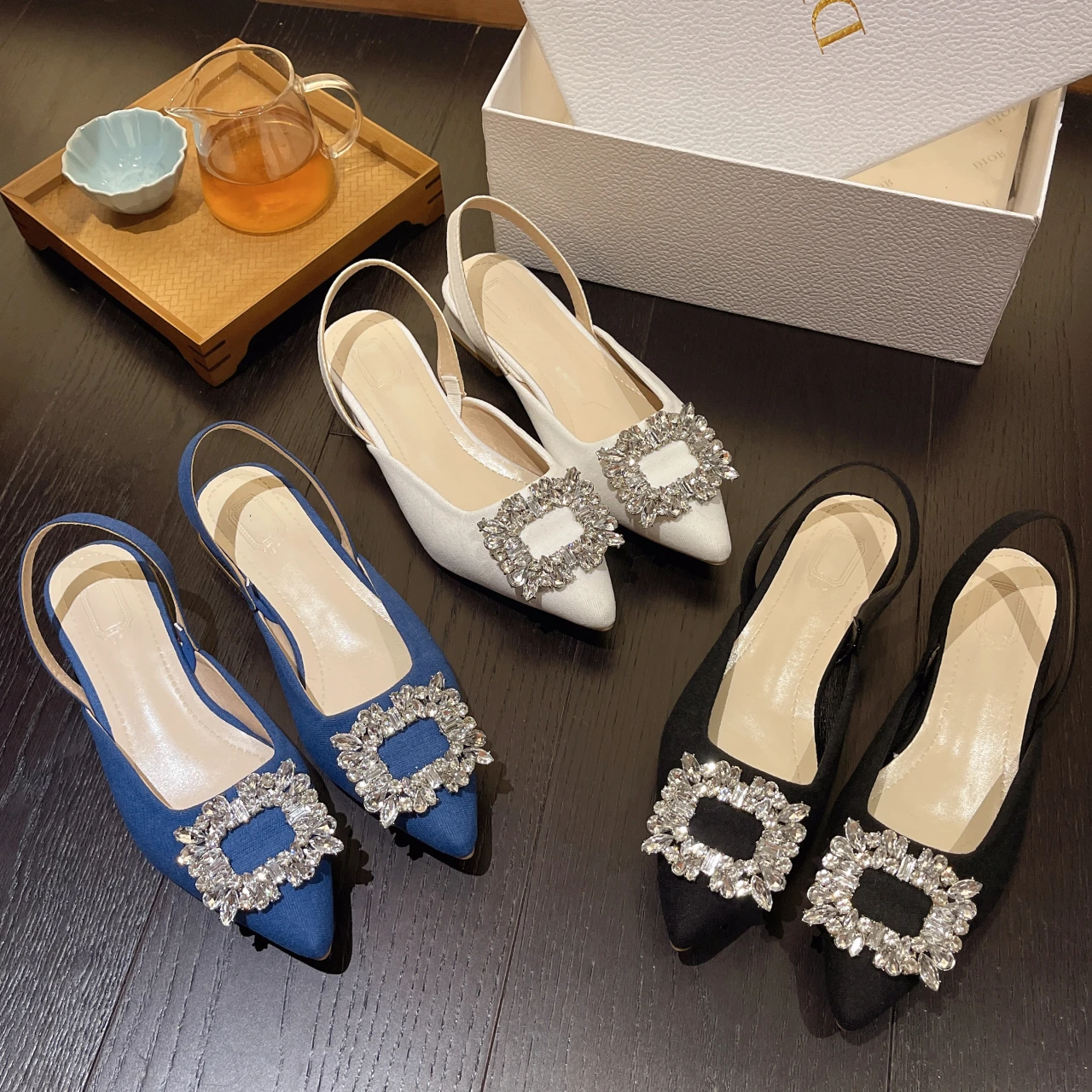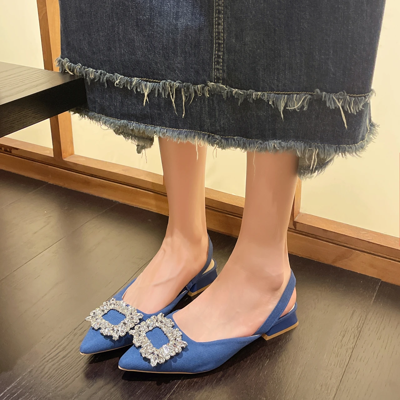 New Style Fashion Women's Sandals Summer Slingback Slippers Female Low Heel Rhinestone Buckle Back Strap Sexy Pumps Sandals