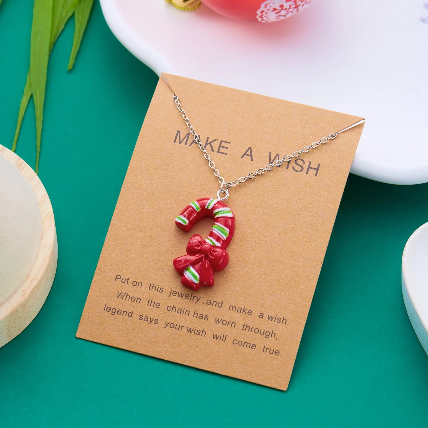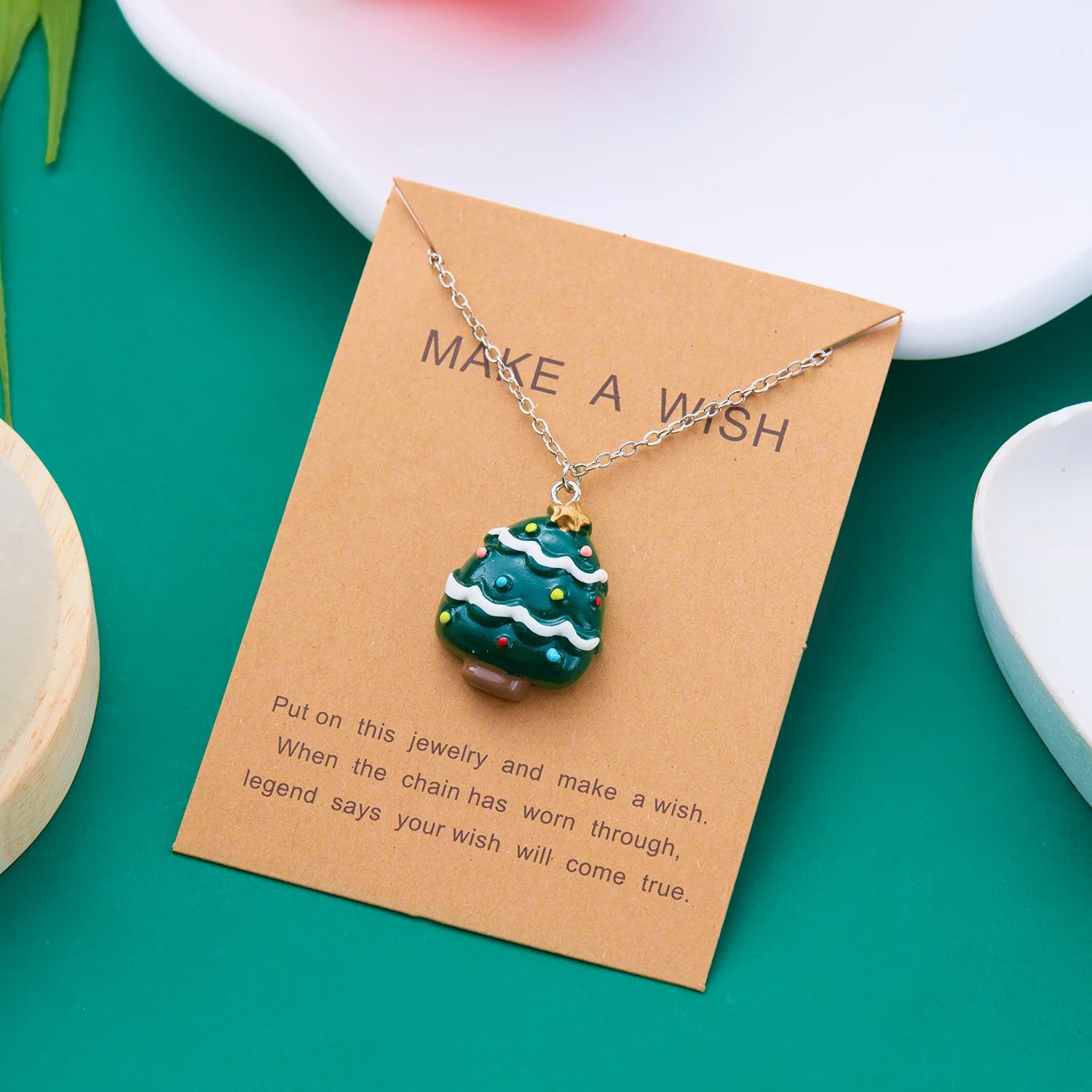 New Trendy Christmas Necklace for Women Girls Resin Cartoon Santa Claus Snowman Xmas Tree Pendant Clavicle Choker Party Gifts