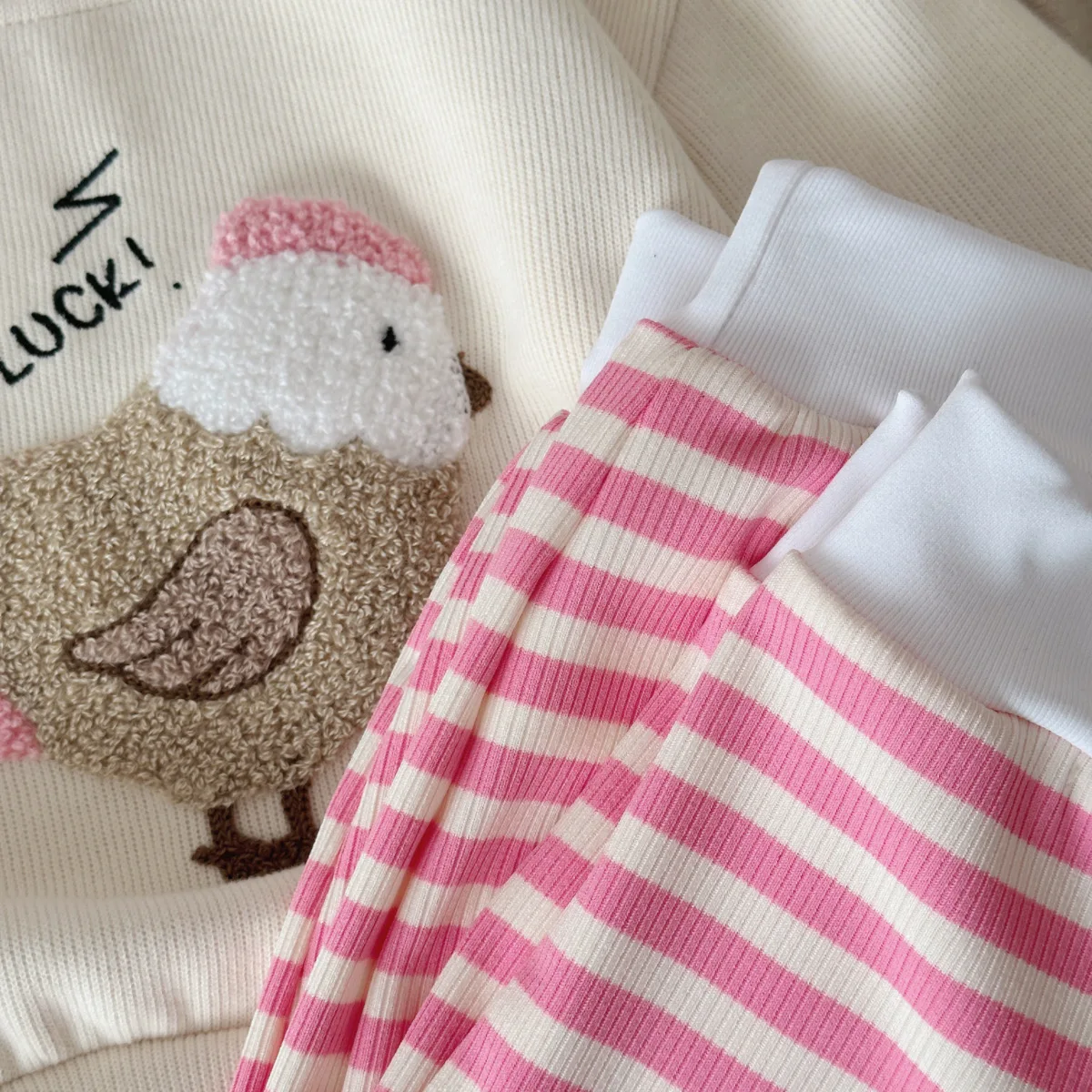 Newborn Baby Girls Clothes Set Cartoon Hen Long Sleeves Top+Pants 2Pcs Outfits Leisure Knitted Pullover Spring&Autumn Costume