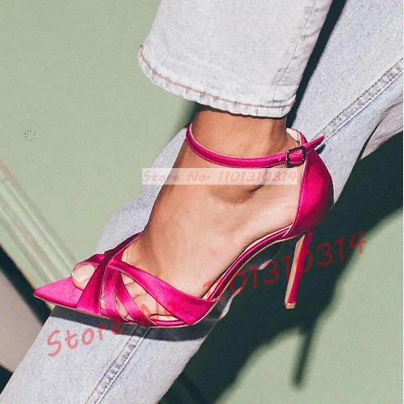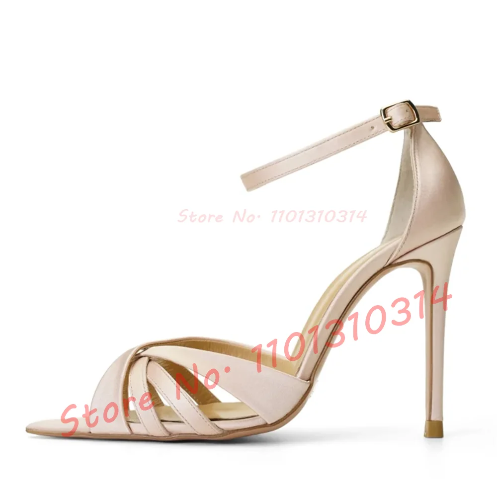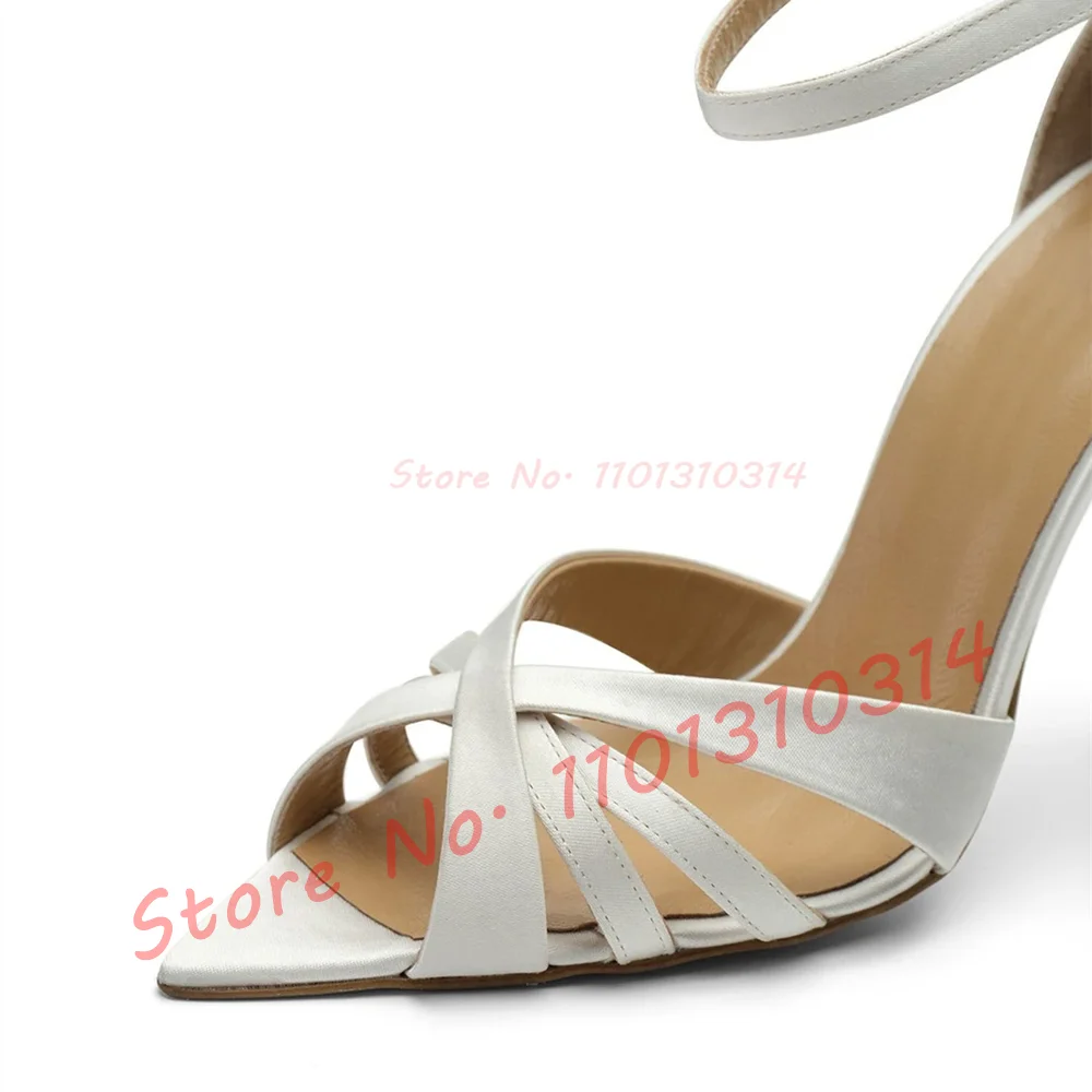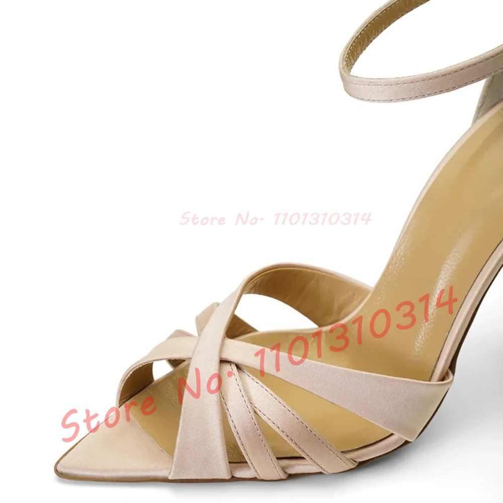 Nude Cross Strap High Heels Sandals Ladies Trendy Open Pointy Toe Classy White Satin Sandal Women Dress Ankle Strap Casual Shoes