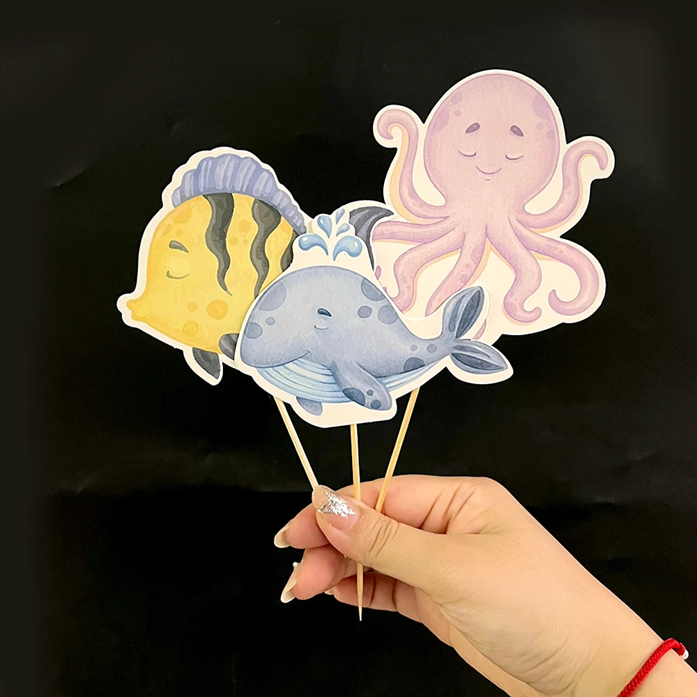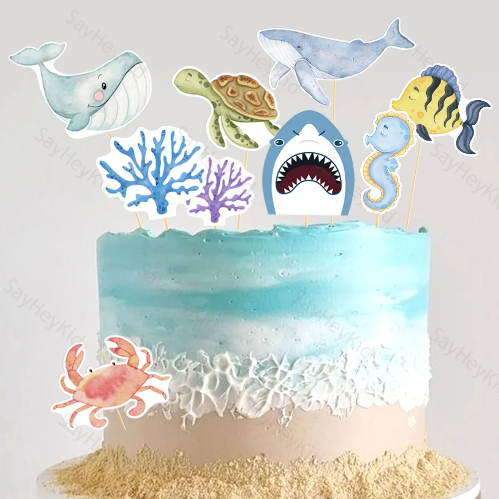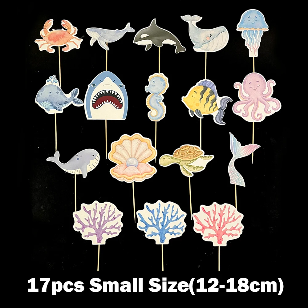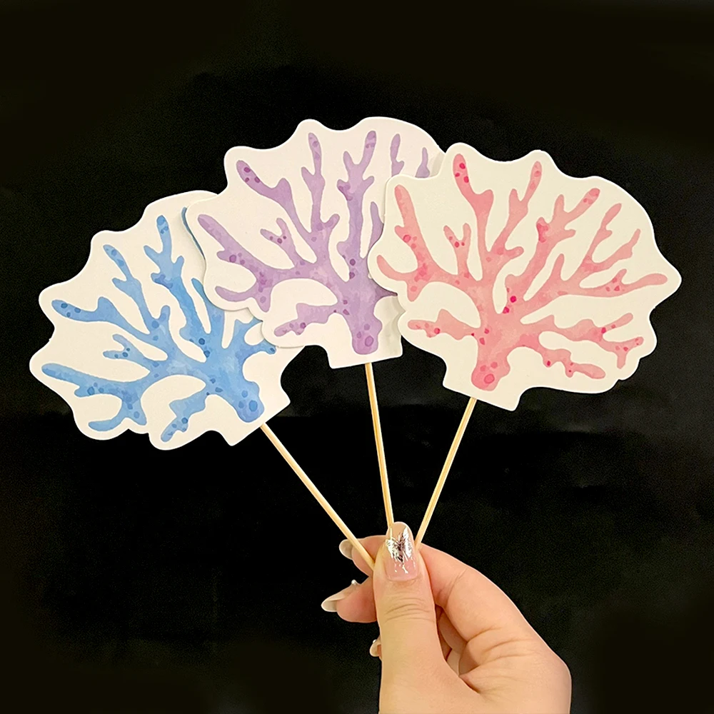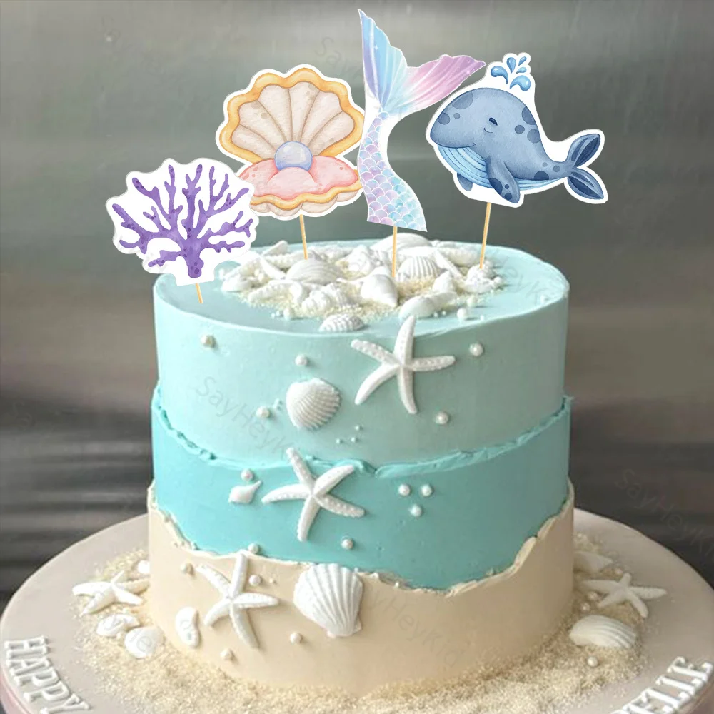 Ocean Cake Decorations Under the Sea Mermaid Cake Toppers Shell Coral Paper Cupcake Topper DIY Birthday Marine Party Cake Suppli